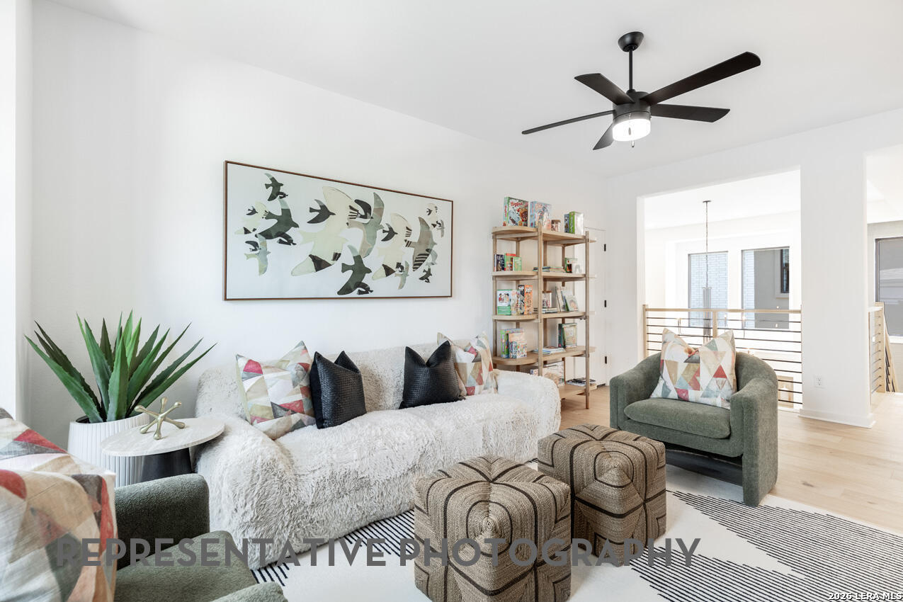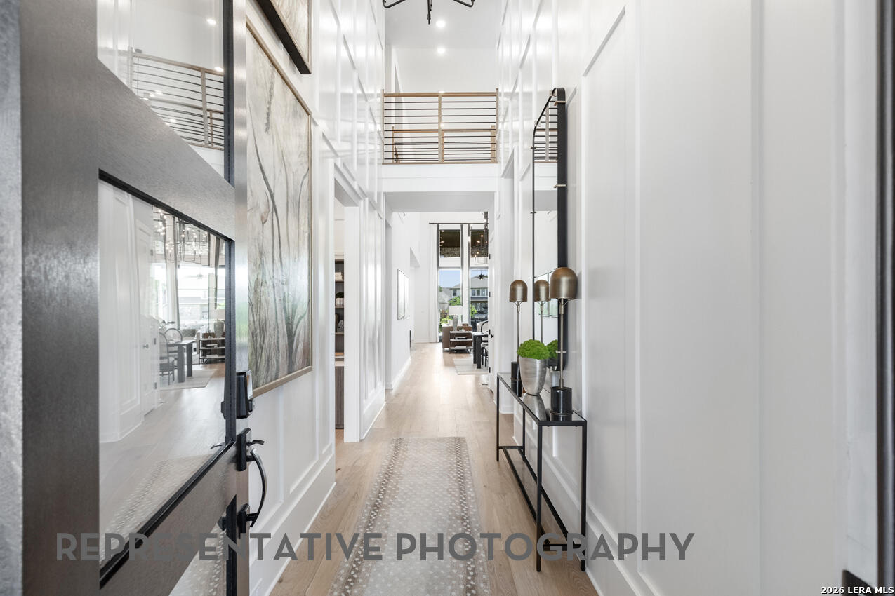 This stunning 4 bedroom, 4 bath home offers the perfect blend of luxury and functionality. Soaring two story ceilings create a dramatic first impression and fill the main living areas with natural light. The open concept design flows seamlessly into a spacious kitchen and family room, ideal for both everyday living and entertaining. A private study provides the perfect work from home space, while the dedicated entertainment room is ready for movie nights or game days. Step outside to a huge covered patio that extends your living space outdoors-perfect for relaxing evenings or weekend gatherings. With no home behind it, you'll enjoy added privacy and peaceful views, making this home as comfortable as it is impressive.