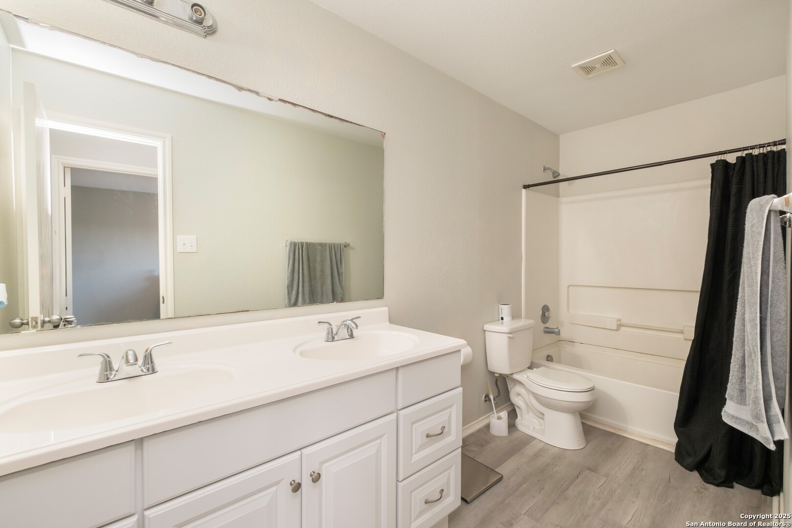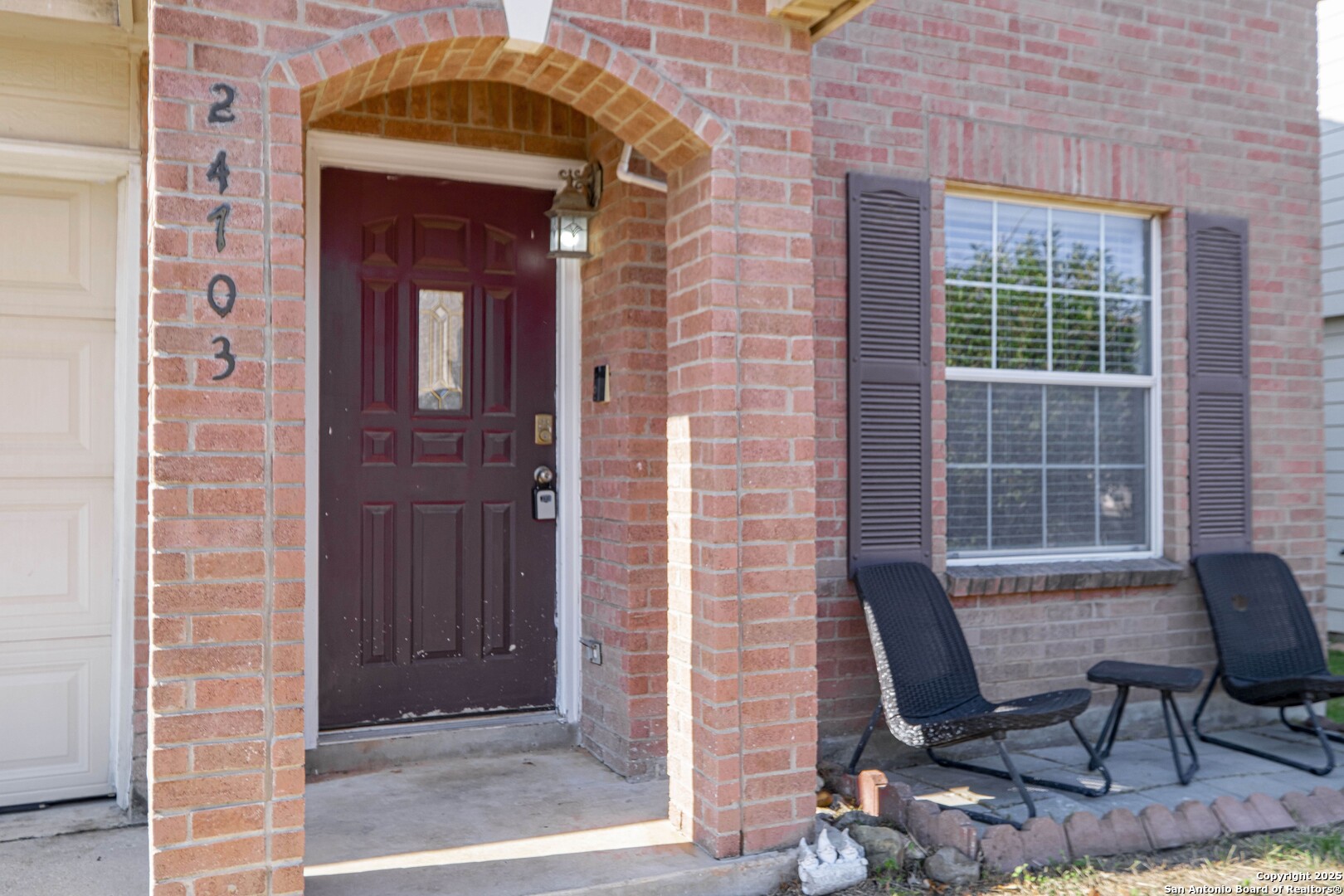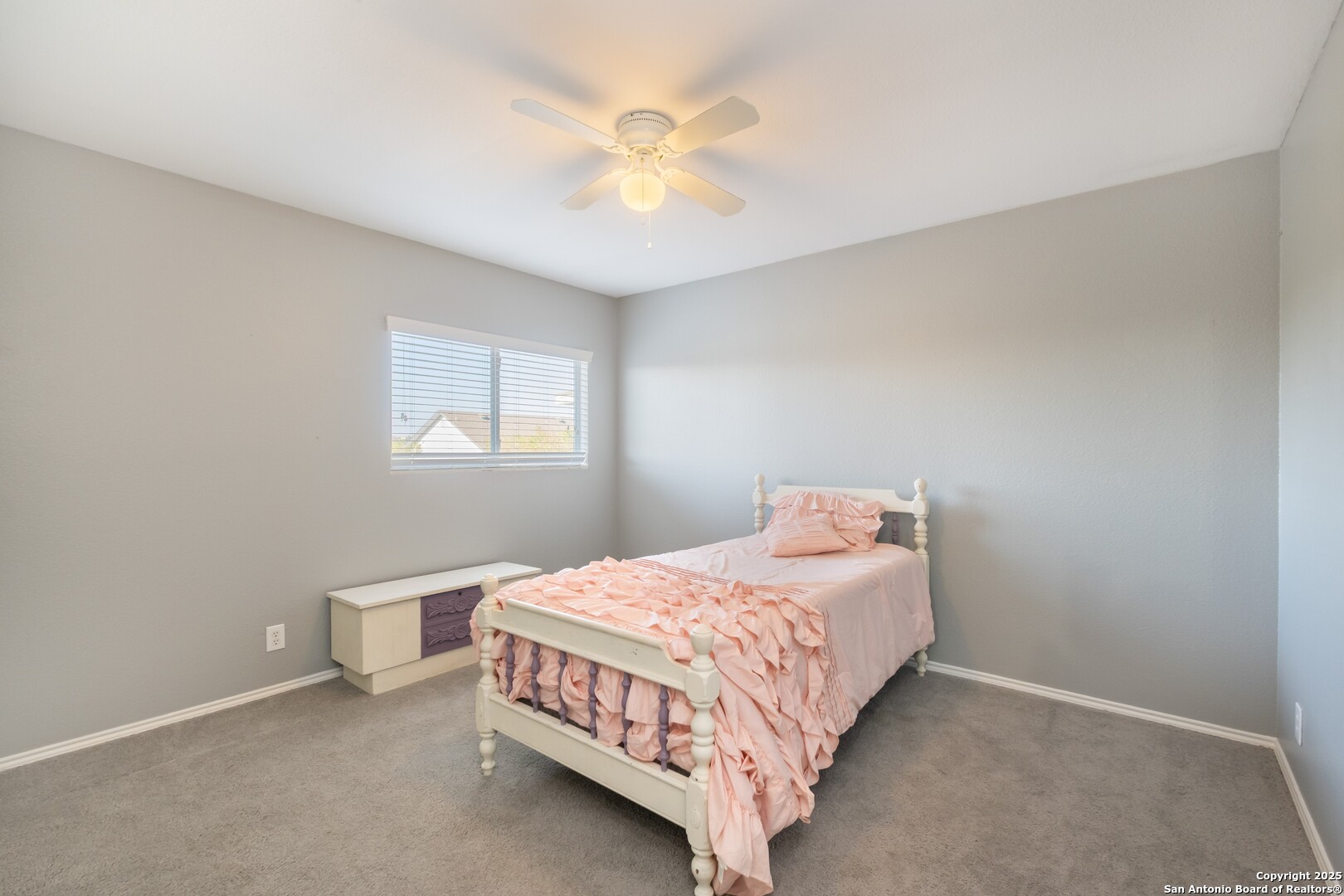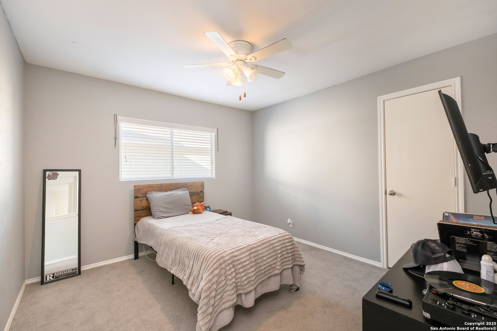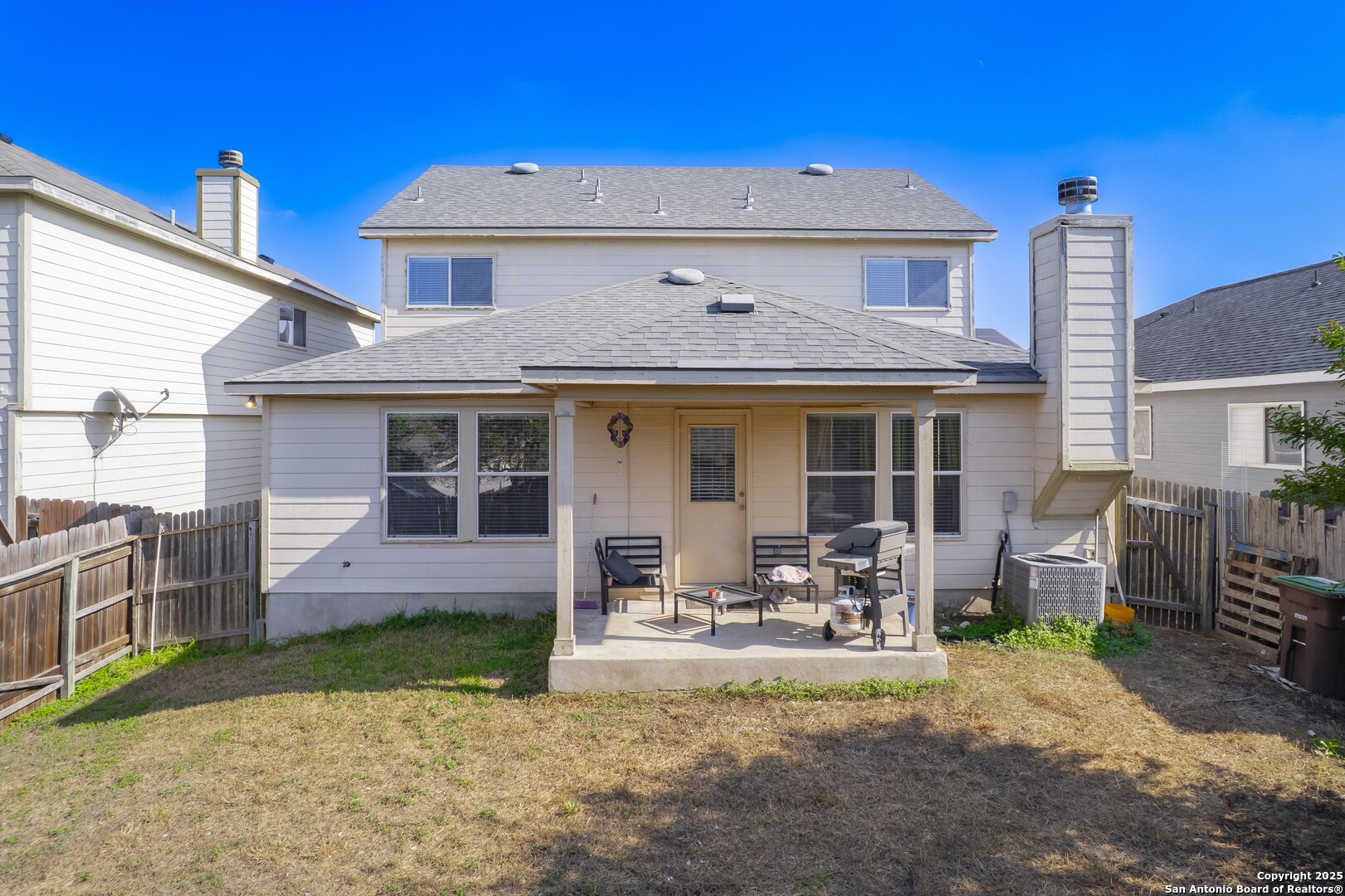 Welcome to this beautifully maintained two-story home boasting 2,556 sq ft of living space in the sought-after Bulverde Village community. You'll find 5 bedrooms, 2.5 bathrooms, giving plenty of room for family, guests, or a home office. The home features a 2-car attached garage, multiple living areas, and a cozy fireplace anchoring the main living room. The open island kitchen flows into one of the living spaces, allowing for effortless entertaining and everyday living. The layout is thoughtfully designed, with the primary bedroom on the main level, offering a private retreat featuring an ensuite bath with a double vanity, a garden tub, a separate walk-in shower, and a walk-in closet. Upstairs, you'll find the remaining carpeted bedrooms, along with a huge family room, giving your family or guests their own comfortable space. Outside, enjoy a fenced yard with a convenient sprinkler system and a covered patio perfect for relaxing or hosting. The community's amenities complete the lifestyle - this home sits in the park-and-playground-focused Creekhaven neighborhood of Bulverde Village and is close to shopping and major thoroughfares.