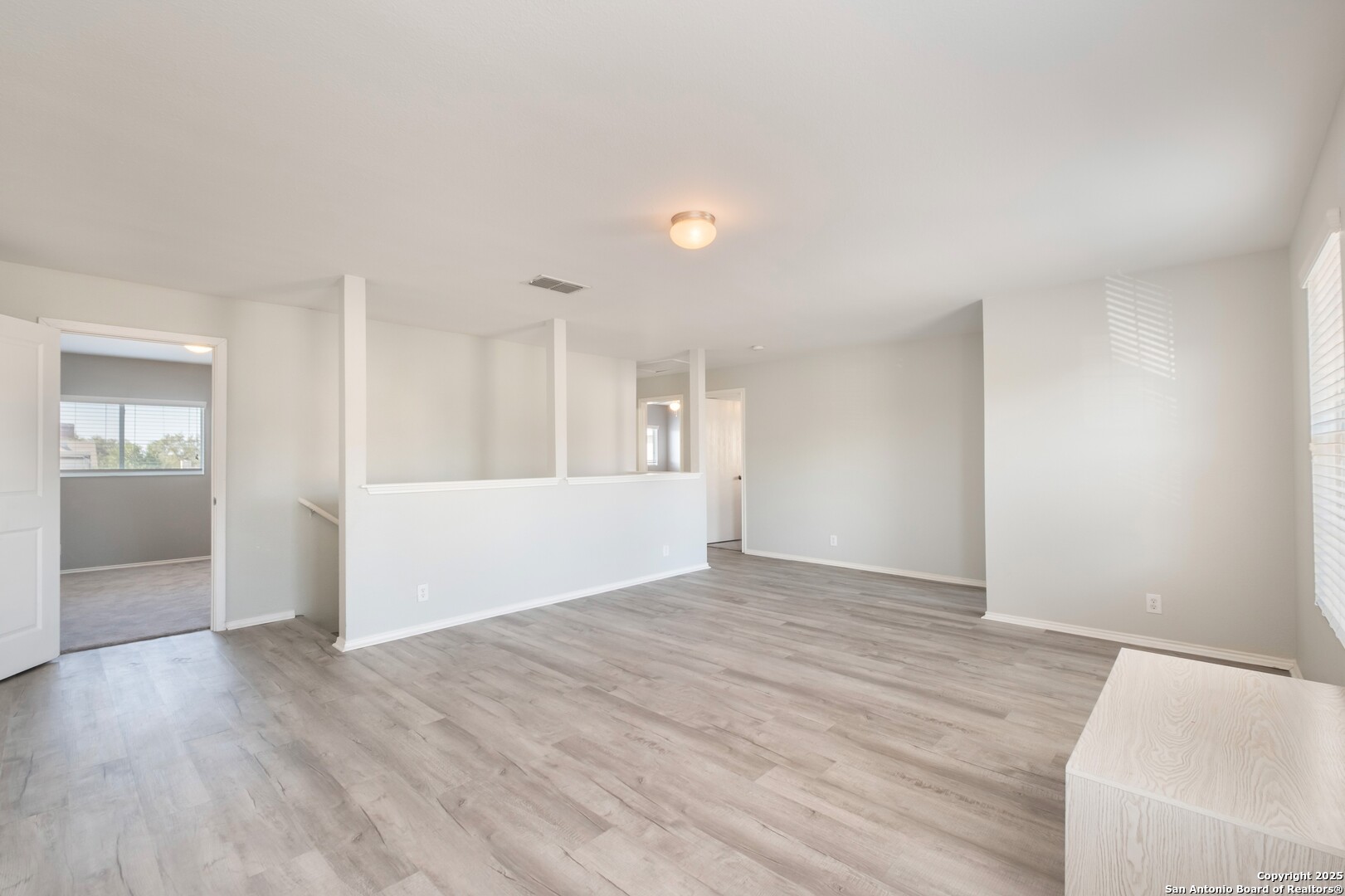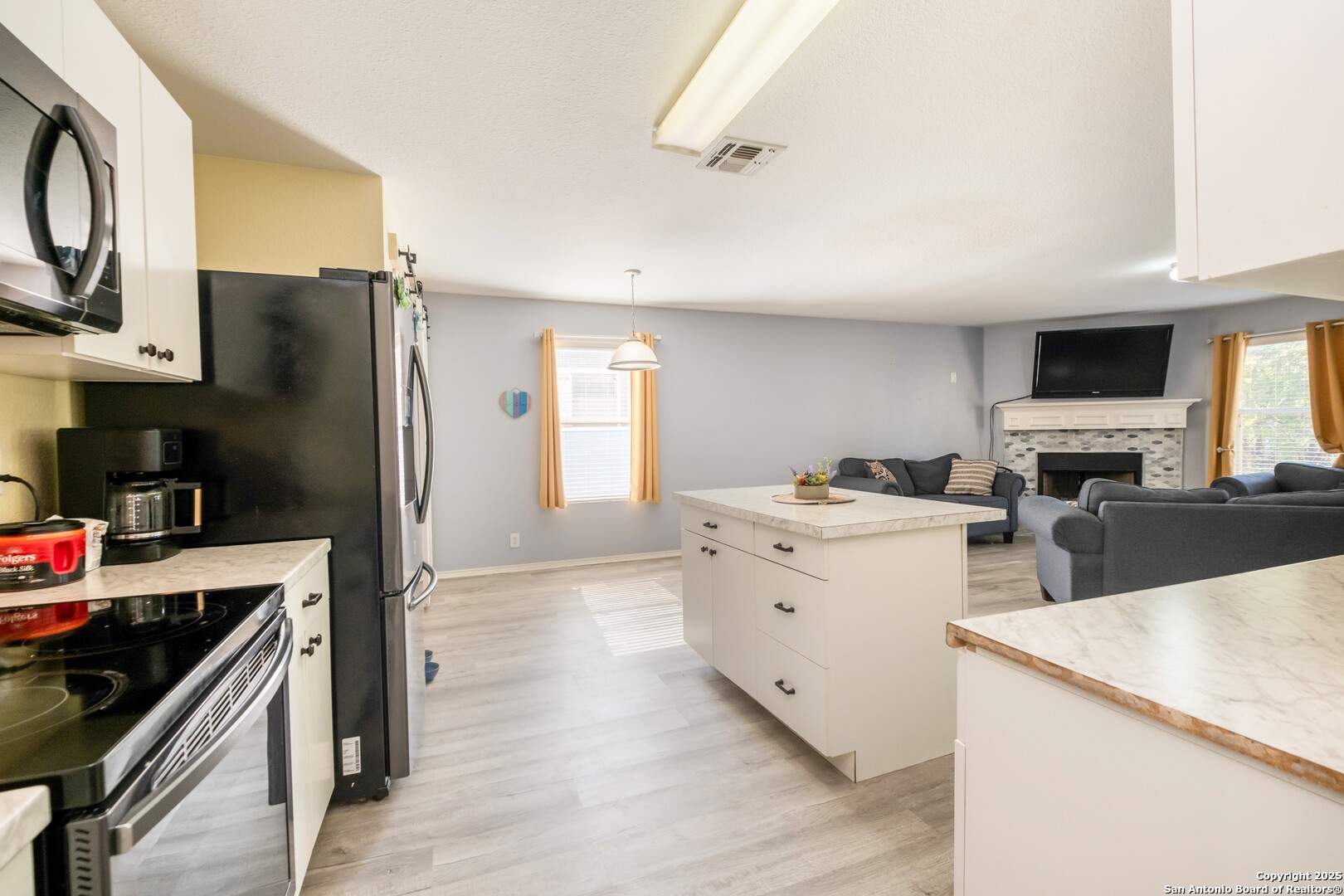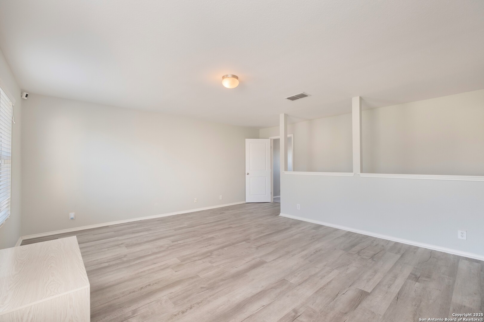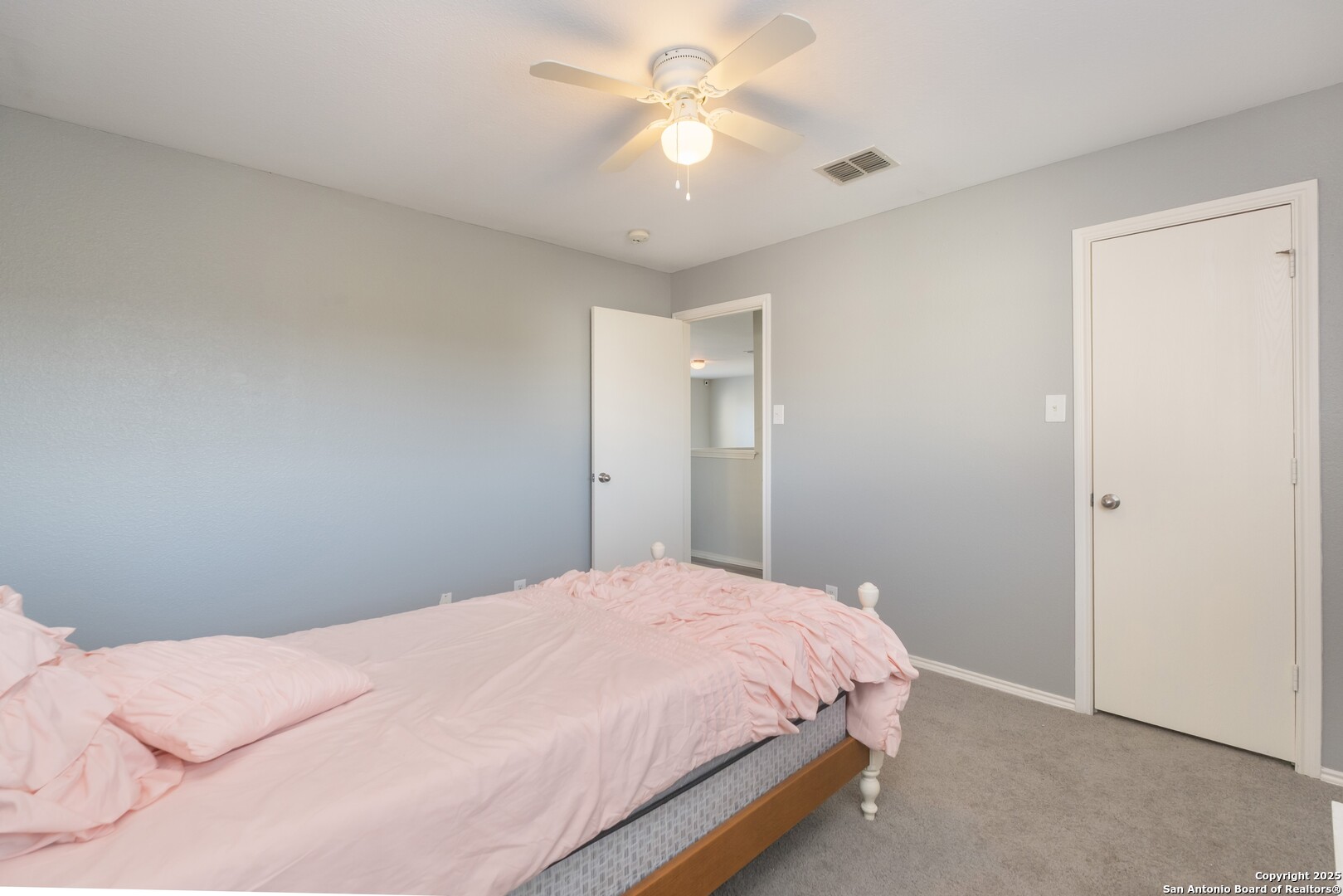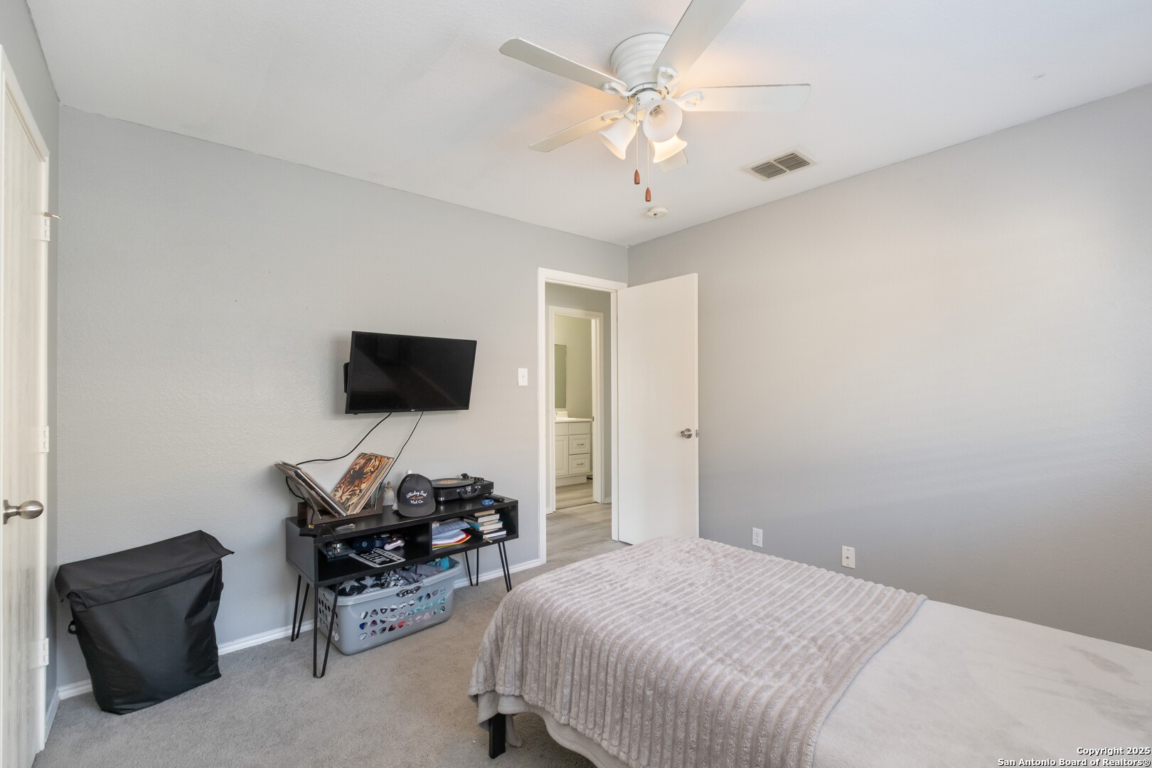 Welcome to this beautifully maintained two-story home boasting 2,556 sq ft of living space in the sought-after Bulverde Village community. You'll find 5 bedrooms, 2.5 bathrooms, giving plenty of room for family, guests, or a home office. The home features a 2-car attached garage, multiple living areas, and a cozy fireplace anchoring the main living room. The open island kitchen flows into one of the living spaces, allowing for effortless entertaining and everyday living. The layout is thoughtfully designed, with the primary bedroom on the main level, offering a private retreat featuring an ensuite bath with a double vanity, a garden tub, a separate walk-in shower, and a walk-in closet. Upstairs, you'll find the remaining carpeted bedrooms, along with a huge family room, giving your family or guests their own comfortable space. Outside, enjoy a fenced yard with a convenient sprinkler system and a covered patio perfect for relaxing or hosting. The community's amenities complete the lifestyle - this home sits in the park-and-playground-focused Creekhaven neighborhood of Bulverde Village and is close to shopping and major thoroughfares.
