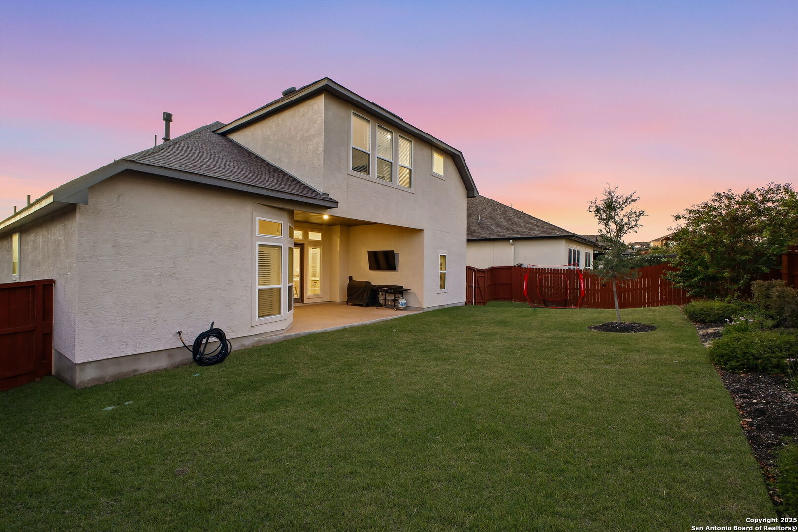Stunning two-story home featuring 4 bedrooms, 3.5 baths, an office, and a game room, offering an open-concept design with soaring ceilings and custom finishes throughout. The eat-in kitchen showcases an impressive stove/range, ample cabinetry, oversized island, and generous storage, opening to a spacious great room featuring a fireplace perfect for relaxing. The primary suite offers a large walk-in closet, a spa-like bath with freestanding tub, and tall ceilings filled with natural light. The main level includes two additional bedrooms, a full bath, office, and half bath, while the upper level is ideal for guests with a game room, full bath, and fourth bedroom. All bedrooms include walk-in closets. The backyard is an entertainer's dream with a large covered patio perfect for gatherings. Enjoy the incredible Cibolo Canyons lifestyle, featuring multiple pools, a kiddie splash area, playscapes, fitness centers, clubhouses, and scenic trails. Ideally located near TPC San Antonio, the JW Marriott Hill Country Resort, and top-rated NEISD schools including Johnson High School. Convenient access to Loop 1604, Hwy 281, shopping, dining, and the airport makes everyday living a breeze.