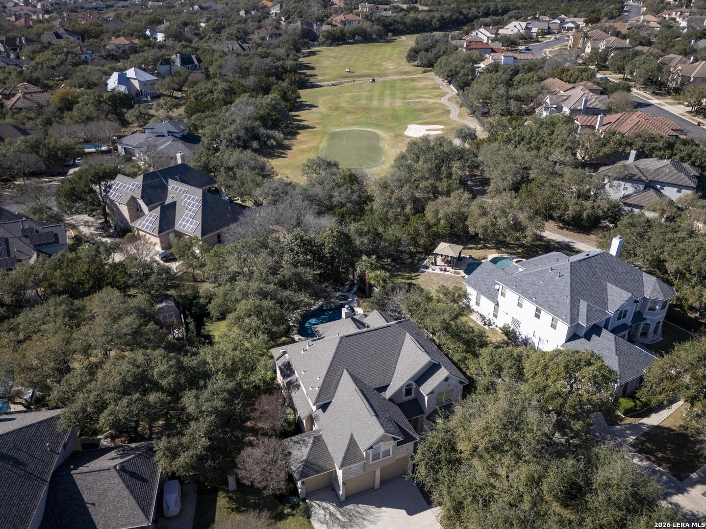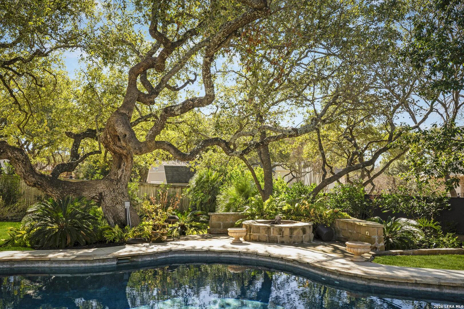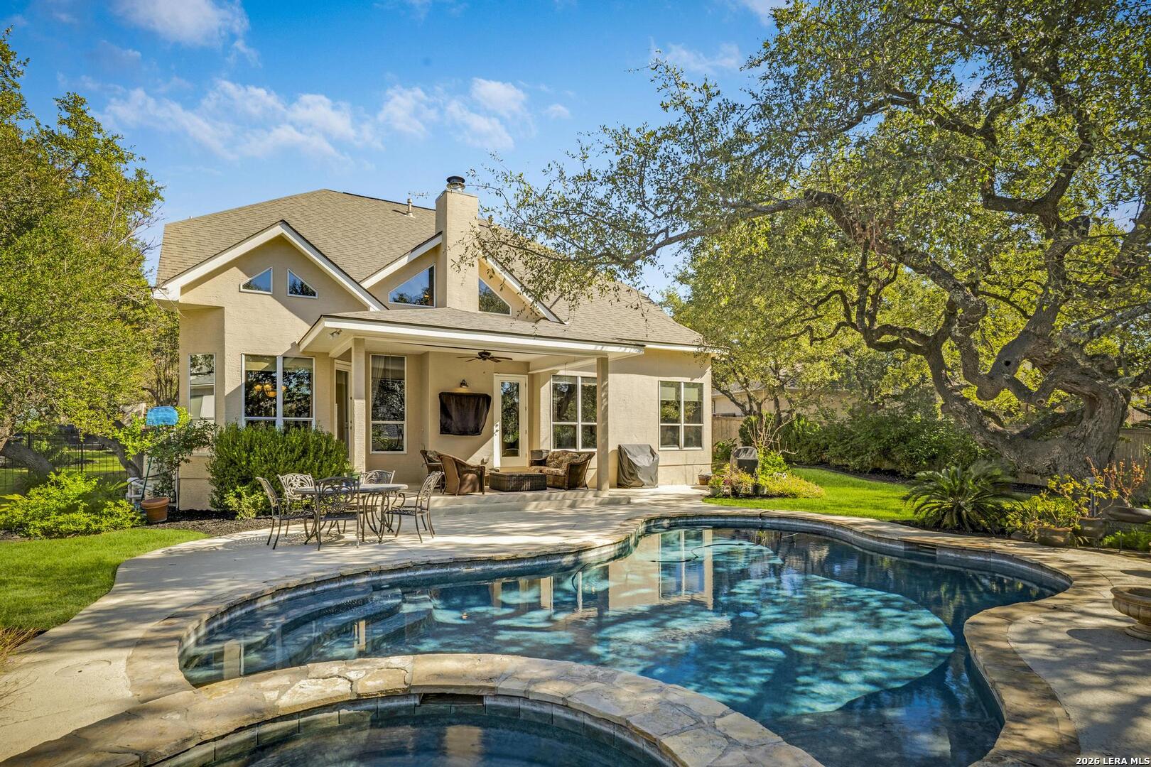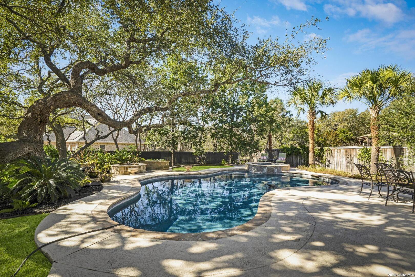 Welcome to a rare opportunity in Fairway Springs - where spacious living meets resort-style outdoor living with direct golf-course access on the green of Hole #8 at Canyon Springs Golf Club. Situated on an oversized .35-acre lot, this impressive 3,474 sq ft, 4-bedroom, 3-bath home offers space, privacy, and a backyard experience few homes can match. Inside, generous living areas and abundant natural light create a warm and inviting atmosphere for everyday living and entertaining. The flexible floor plan features multiple gathering spaces, well-sized bedrooms, and thoughtful separation of living areas - ideal for families or hosting guests. Step outside to the true showstopper - a private backyard oasis framed by mature oak trees and lush vegetation. Enjoy year-round relaxation in the resort-style pool and spa, gather around the custom fire pit, or unwind in total privacy - all while overlooking the manicured fairways of Canyon Springs Golf Club. A rear gate provides direct access to Hole #8, offering morning walks, sunset views, and a lifestyle rarely found in neighborhood living. Located in one of North San Antonio's most desirable communities with convenient access to top schools, shopping, dining, and major highways - this home delivers the perfect blend of comfort, convenience, and outdoor luxury.