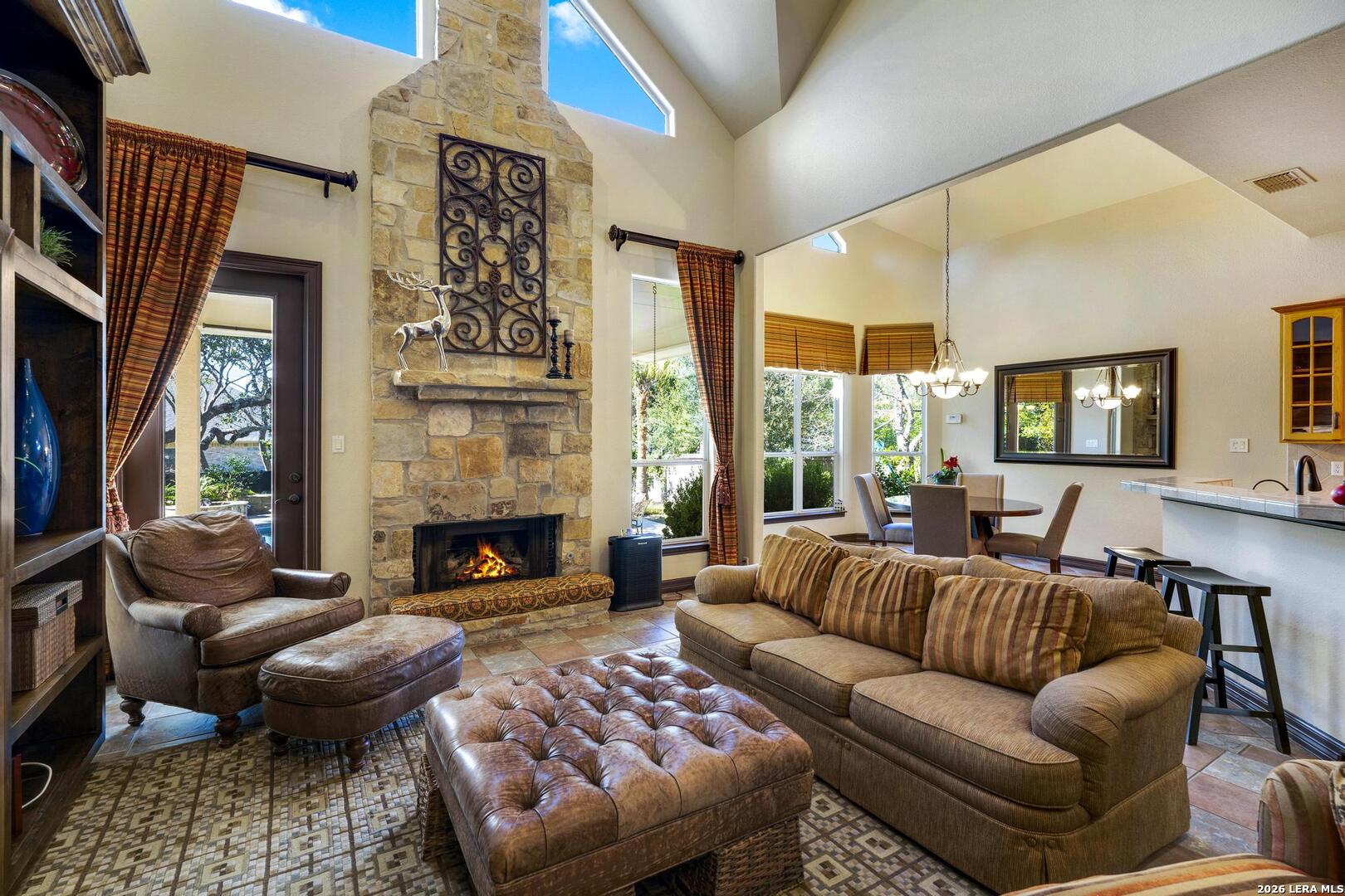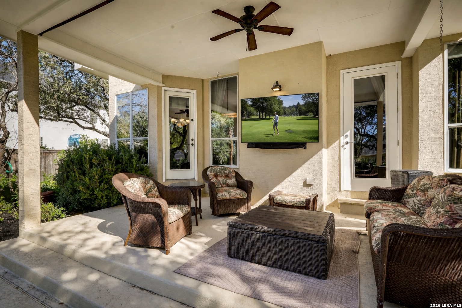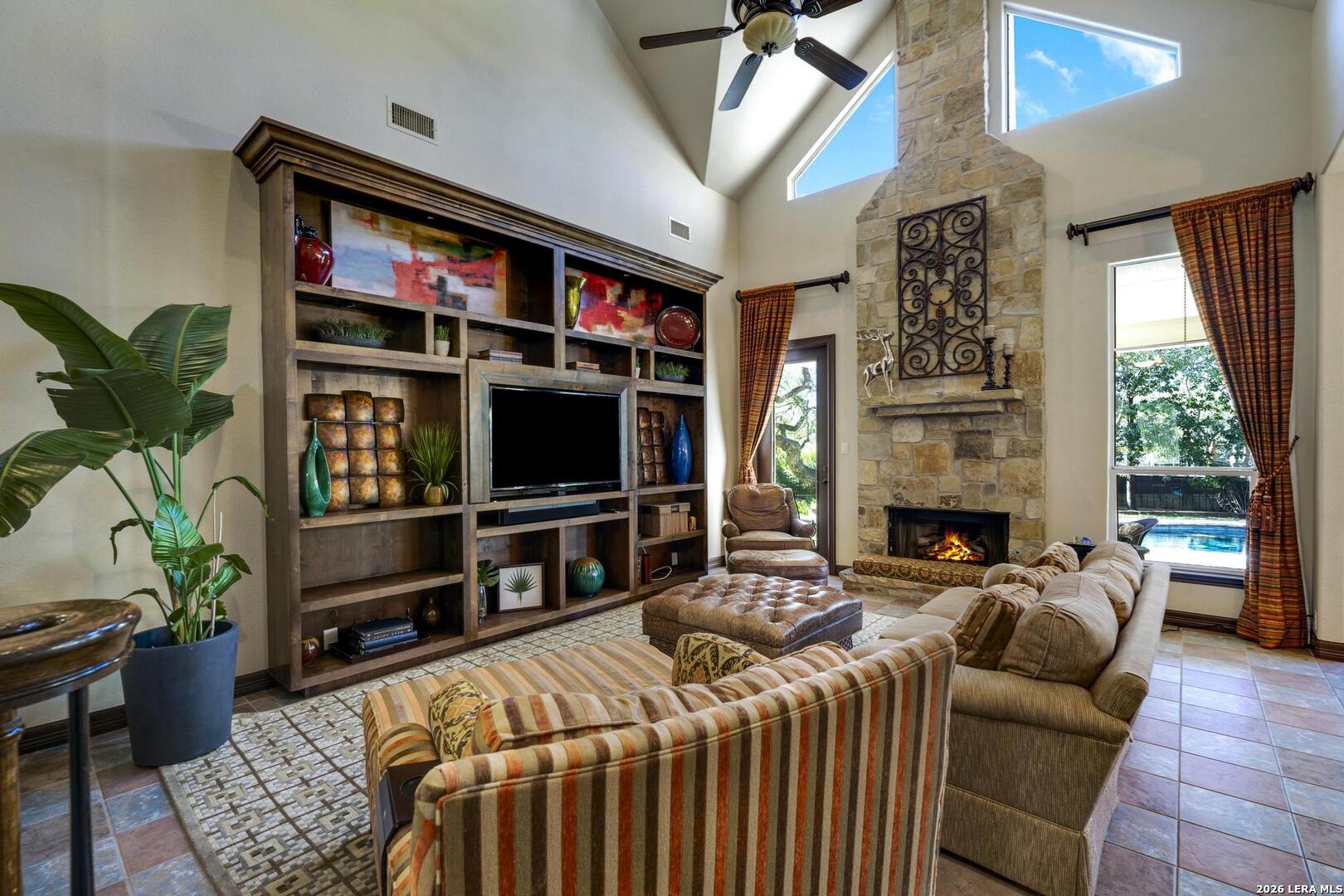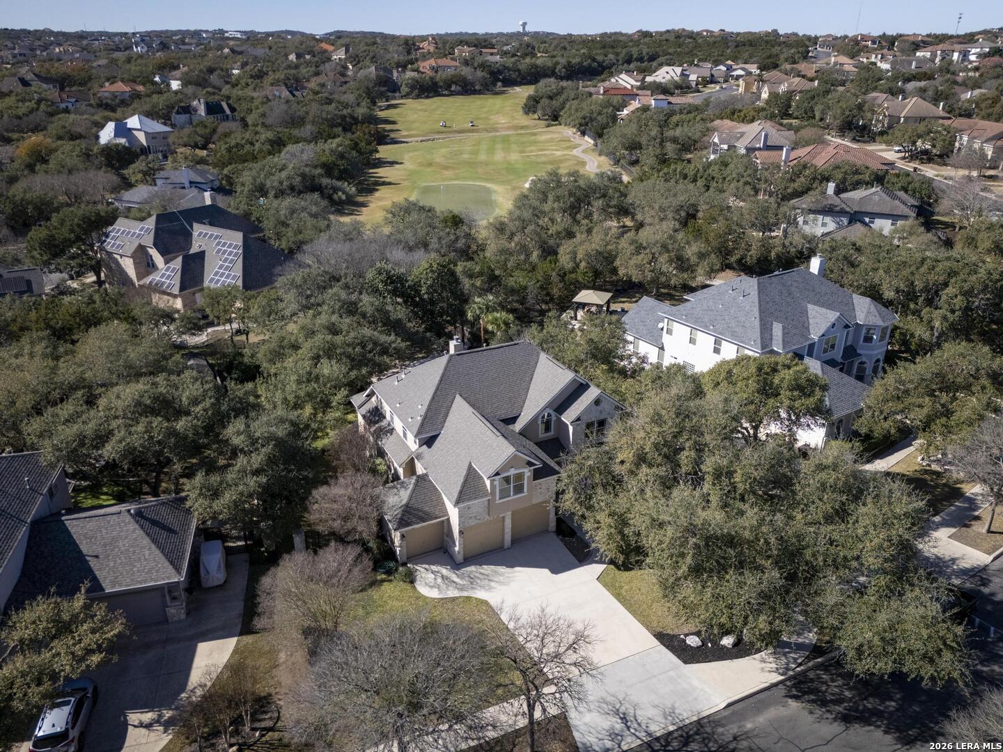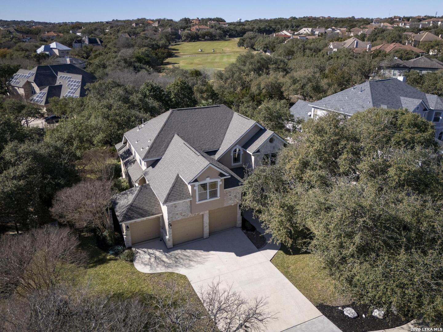 Welcome to a rare opportunity in Fairway Springs - where spacious living meets resort-style outdoor living with direct golf-course access on the green of Hole #8 at Canyon Springs Golf Club. Situated on an oversized .35-acre lot, this impressive 3,474 sq ft, 4-bedroom, 3-bath home offers space, privacy, and a backyard experience few homes can match. Inside, generous living areas and abundant natural light create a warm and inviting atmosphere for everyday living and entertaining. The flexible floor plan features multiple gathering spaces, well-sized bedrooms, and thoughtful separation of living areas - ideal for families or hosting guests. Step outside to the true showstopper - a private backyard oasis framed by mature oak trees and lush vegetation. Enjoy year-round relaxation in the resort-style pool and spa, gather around the custom fire pit, or unwind in total privacy - all while overlooking the manicured fairways of Canyon Springs Golf Club. A rear gate provides direct access to Hole #8, offering morning walks, sunset views, and a lifestyle rarely found in neighborhood living. Located in one of North San Antonio's most desirable communities with convenient access to top schools, shopping, dining, and major highways - this home delivers the perfect blend of comfort, convenience, and outdoor luxury.