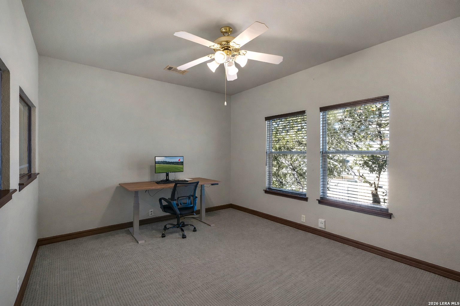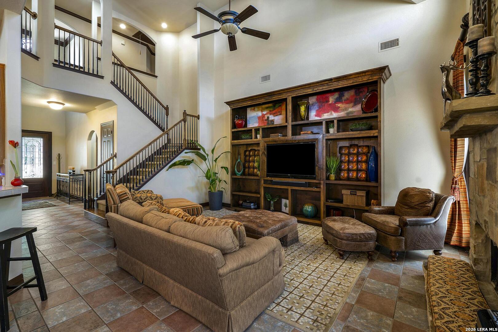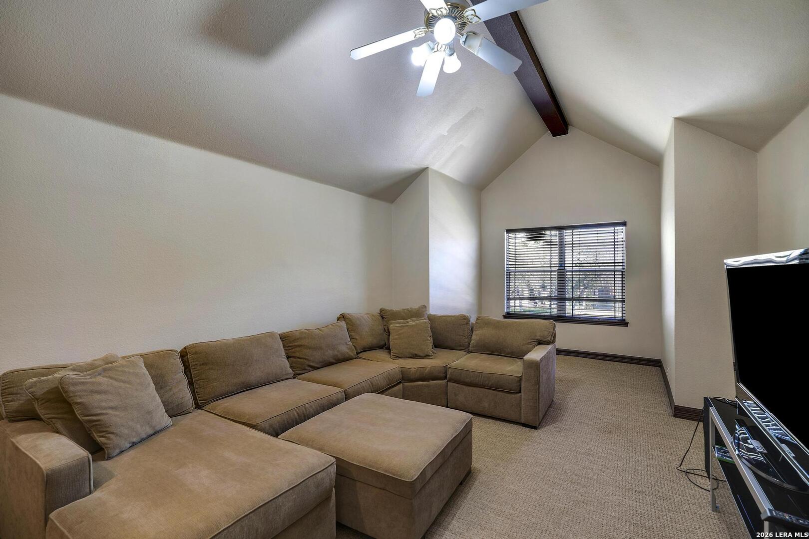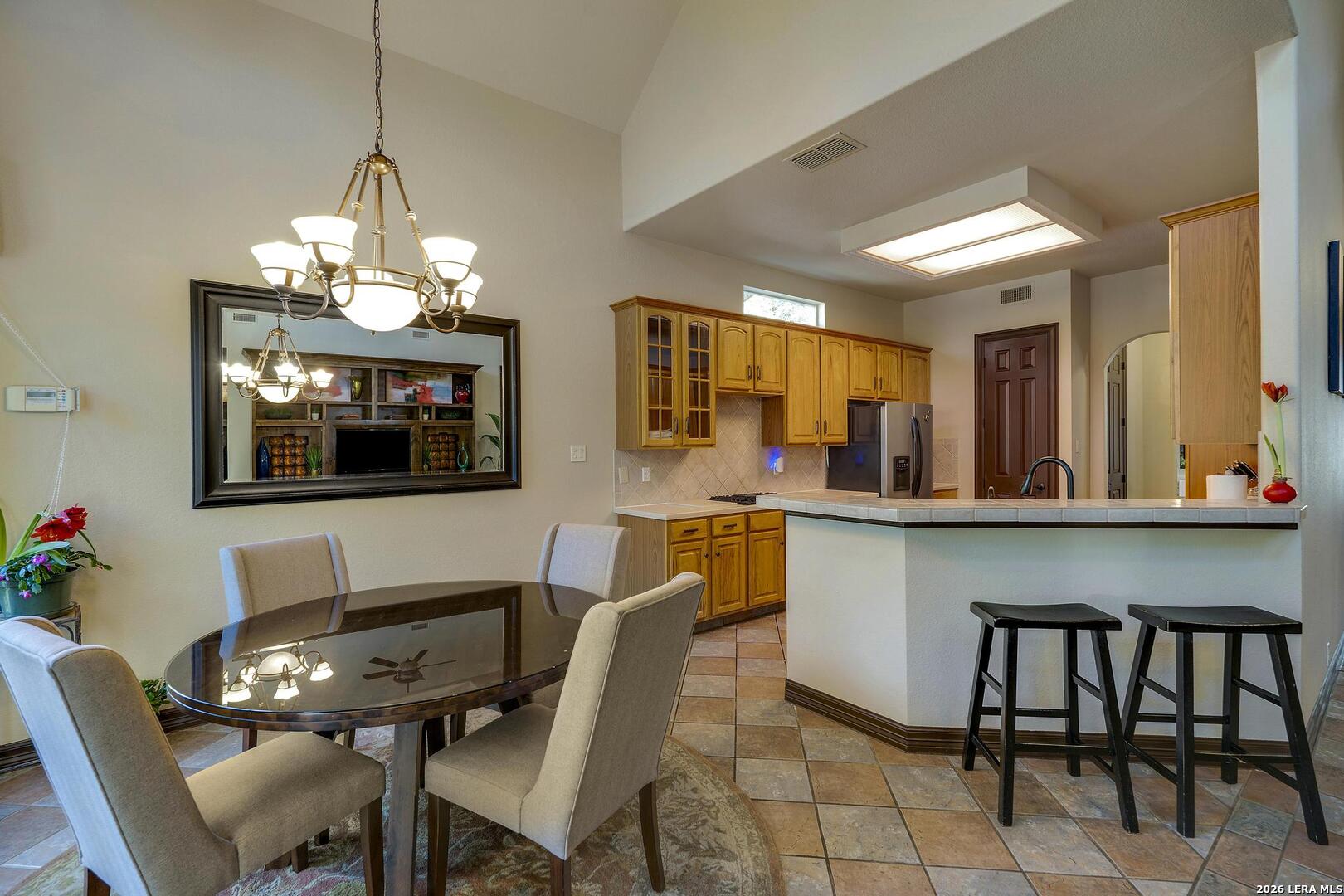 Welcome to a rare opportunity in Fairway Springs - where spacious living meets resort-style outdoor living with direct golf-course access on the green of Hole #8 at Canyon Springs Golf Club. Situated on an oversized .35-acre lot, this impressive 3,474 sq ft, 4-bedroom, 3-bath home offers space, privacy, and a backyard experience few homes can match. Inside, generous living areas and abundant natural light create a warm and inviting atmosphere for everyday living and entertaining. The flexible floor plan features multiple gathering spaces, well-sized bedrooms, and thoughtful separation of living areas - ideal for families or hosting guests. Step outside to the true showstopper - a private backyard oasis framed by mature oak trees and lush vegetation. Enjoy year-round relaxation in the resort-style pool and spa, gather around the custom fire pit, or unwind in total privacy - all while overlooking the manicured fairways of Canyon Springs Golf Club. A rear gate provides direct access to Hole #8, offering morning walks, sunset views, and a lifestyle rarely found in neighborhood living. Located in one of North San Antonio's most desirable communities with convenient access to top schools, shopping, dining, and major highways - this home delivers the perfect blend of comfort, convenience, and outdoor luxury.