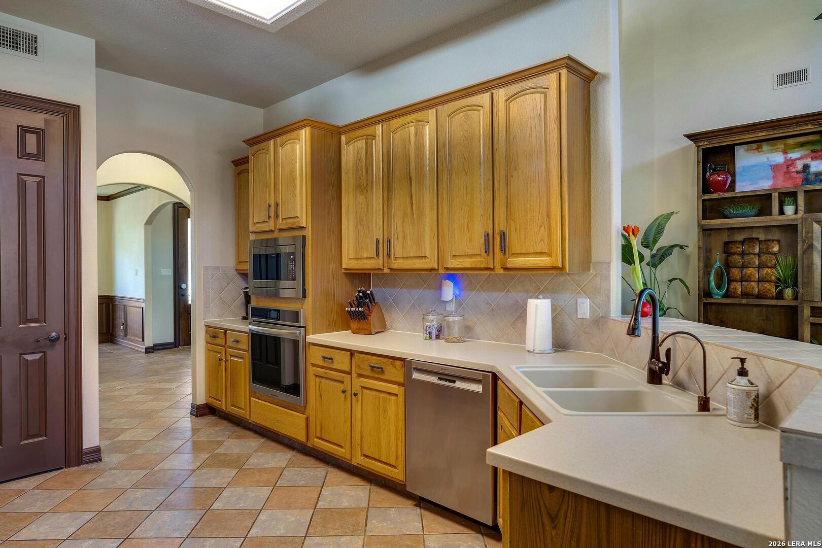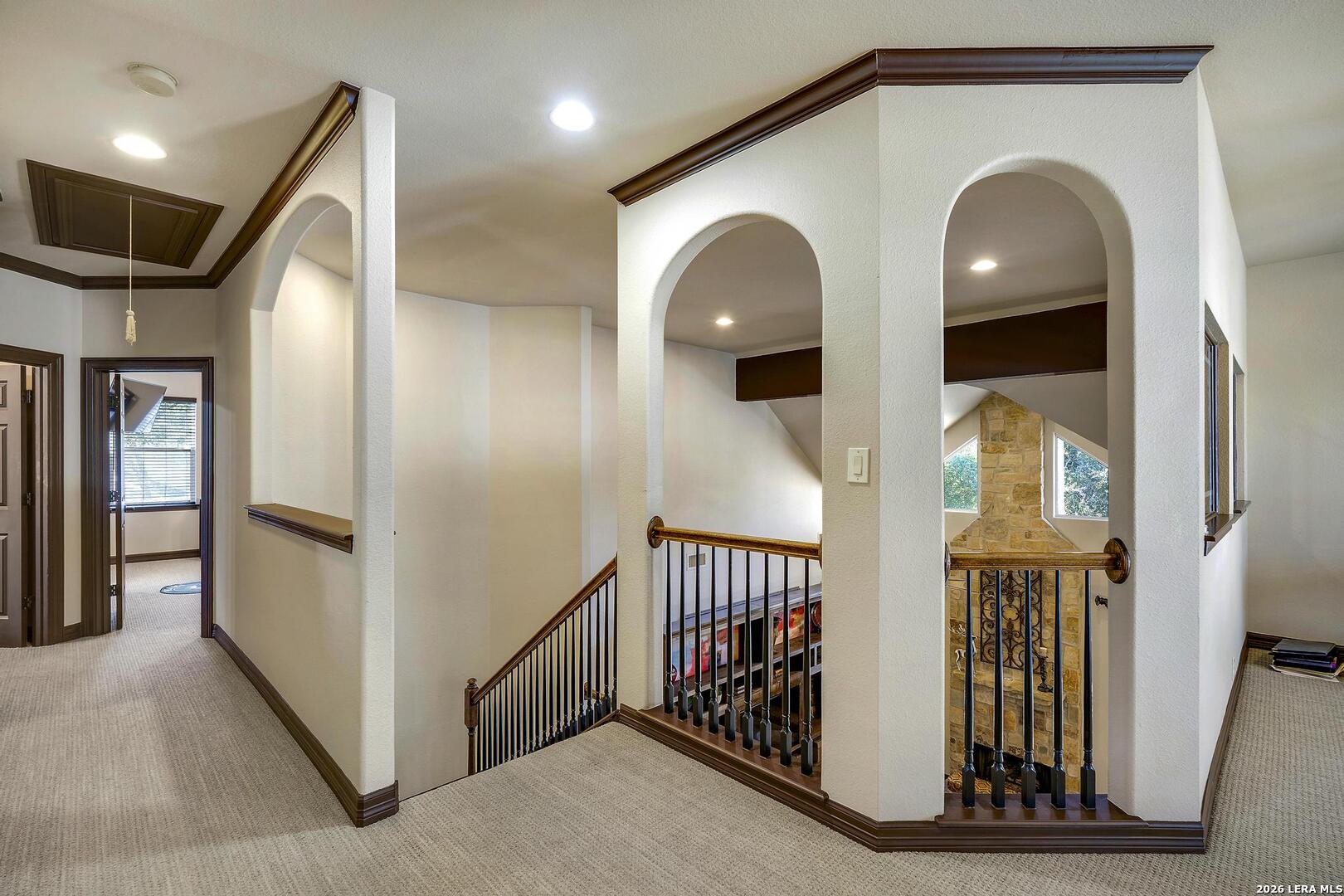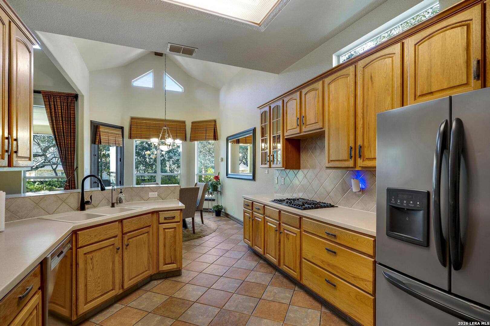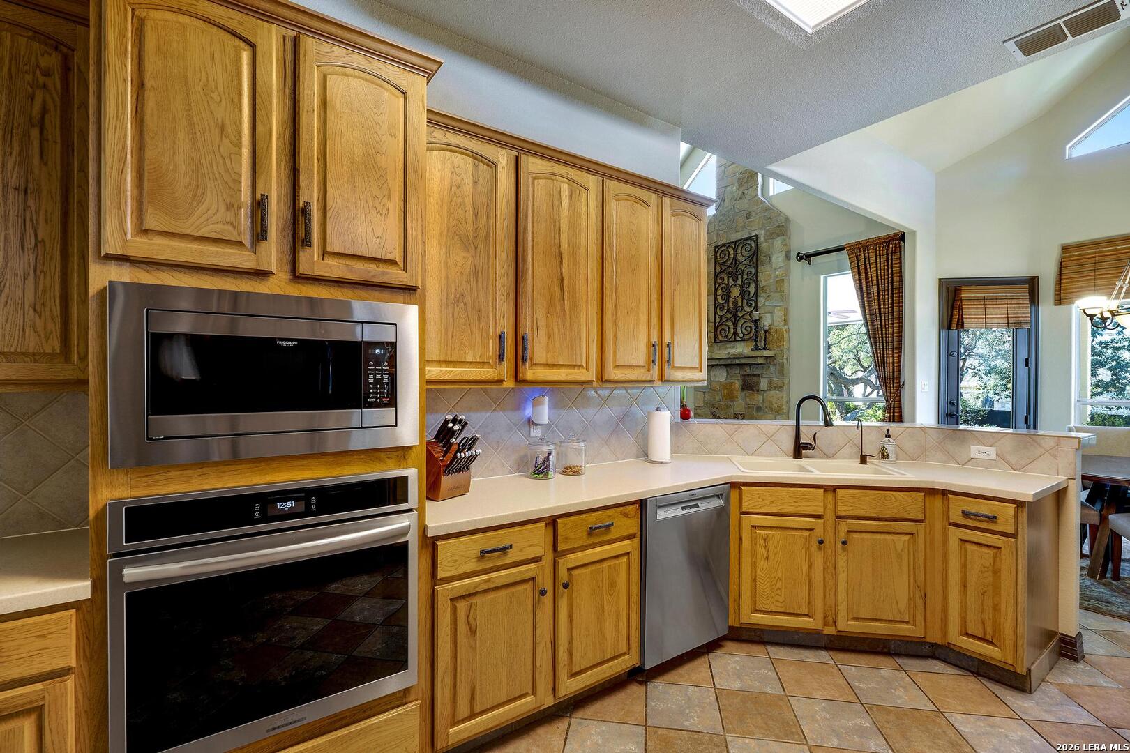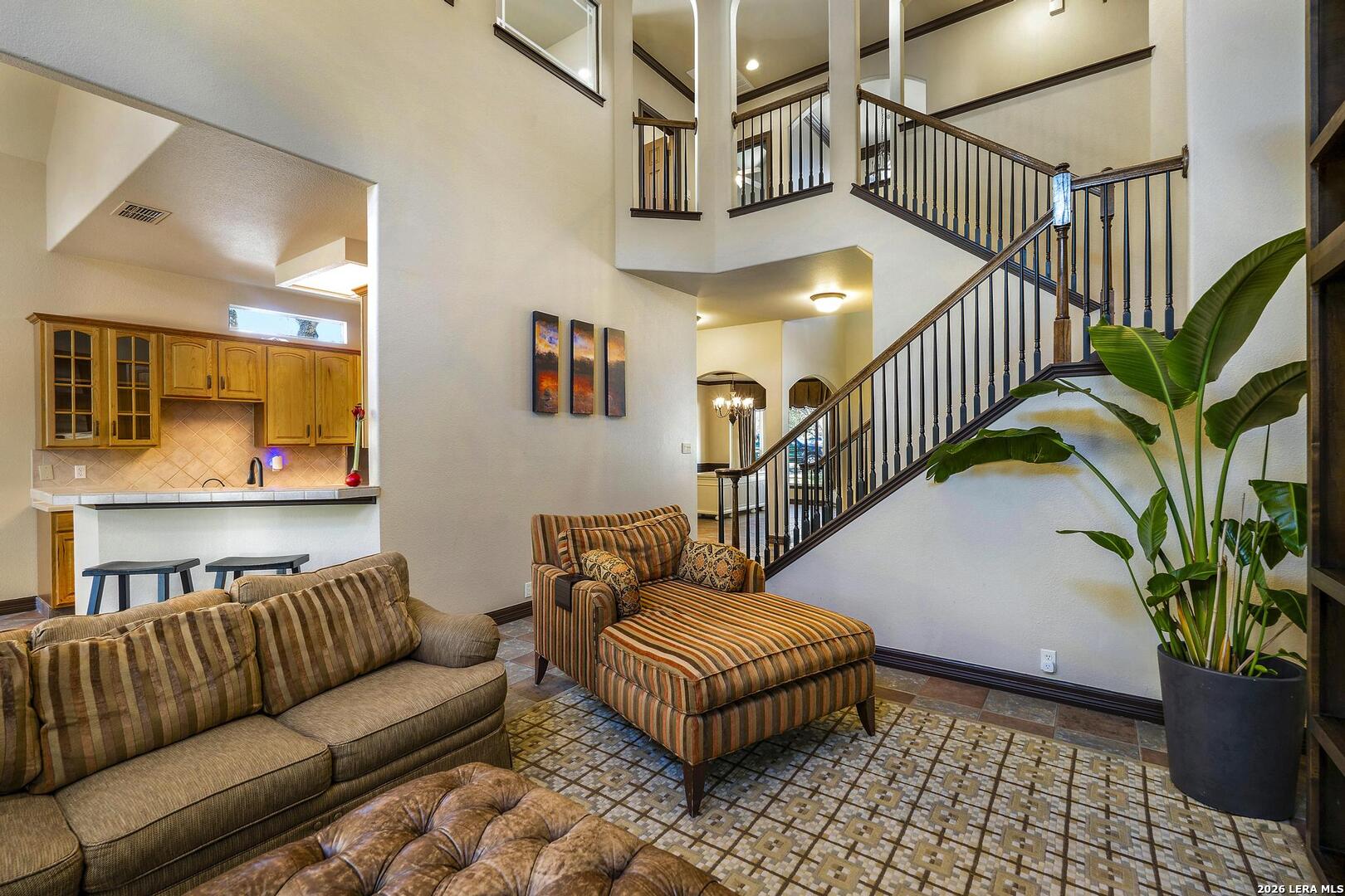 Welcome to a rare opportunity in Fairway Springs - where spacious living meets resort-style outdoor living with direct golf-course access on the green of Hole #8 at Canyon Springs Golf Club. Situated on an oversized .35-acre lot, this impressive 3,474 sq ft, 4-bedroom, 3-bath home offers space, privacy, and a backyard experience few homes can match. Inside, generous living areas and abundant natural light create a warm and inviting atmosphere for everyday living and entertaining. The flexible floor plan features multiple gathering spaces, well-sized bedrooms, and thoughtful separation of living areas - ideal for families or hosting guests. Step outside to the true showstopper - a private backyard oasis framed by mature oak trees and lush vegetation. Enjoy year-round relaxation in the resort-style pool and spa, gather around the custom fire pit, or unwind in total privacy - all while overlooking the manicured fairways of Canyon Springs Golf Club. A rear gate provides direct access to Hole #8, offering morning walks, sunset views, and a lifestyle rarely found in neighborhood living. Located in one of North San Antonio's most desirable communities with convenient access to top schools, shopping, dining, and major highways - this home delivers the perfect blend of comfort, convenience, and outdoor luxury.