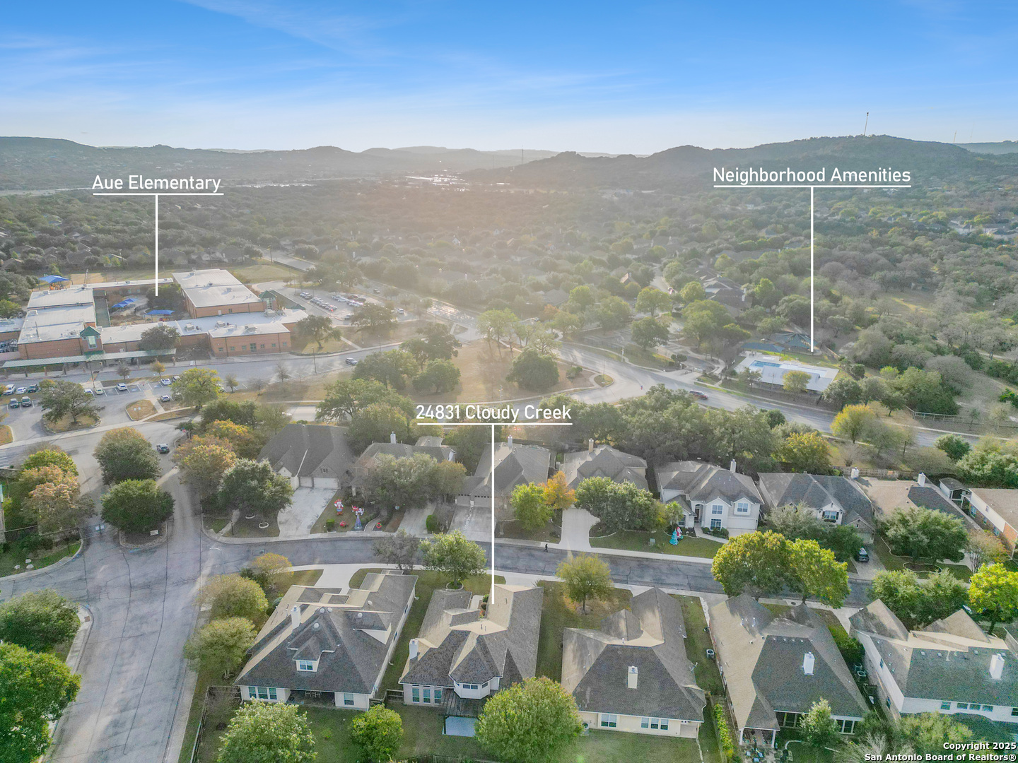 Welcome to 24831 Cloudy Creek, a beautifully maintained home in the gated community of The Bluffs at Two Creeks. This spacious residence offers the perfect blend of comfort, style, and functionality with four bedrooms and three full baths, all thoughtfully arranged on the main level. The open-concept design features high ceilings, abundant natural light, and elegant architectural details that create a warm, inviting atmosphere. The gourmet island kitchen showcases granite countertops, custom cabinetry, and a walk-in pantry-perfect for both daily living and entertaining. The owner's retreat provides a relaxing escape with a private sitting area, dual vanities, a soaking tub, separate shower, and an oversized walk-in closet. Upstairs, a versatile loft area adds flexibility for a game room, home office, or media space. Step outside to a serene backyard with a pergola-covered patio ideal for enjoying quiet mornings or weekend gatherings. Residents of Two Creeks enjoy access to gated security, a neighborhood pool, playground, and walking trails-all within the highly regarded Northside ISD, across from Aue Elementary, and minutes from La Cantera, The Rim, UTSA, and major employers. This home embodies the best of North San Antonio living-comfortable, refined, and ready for its next chapter.