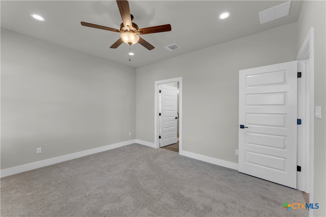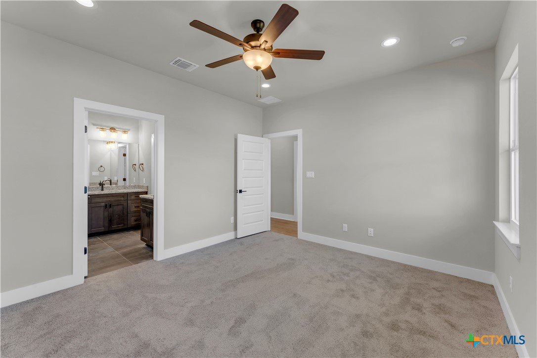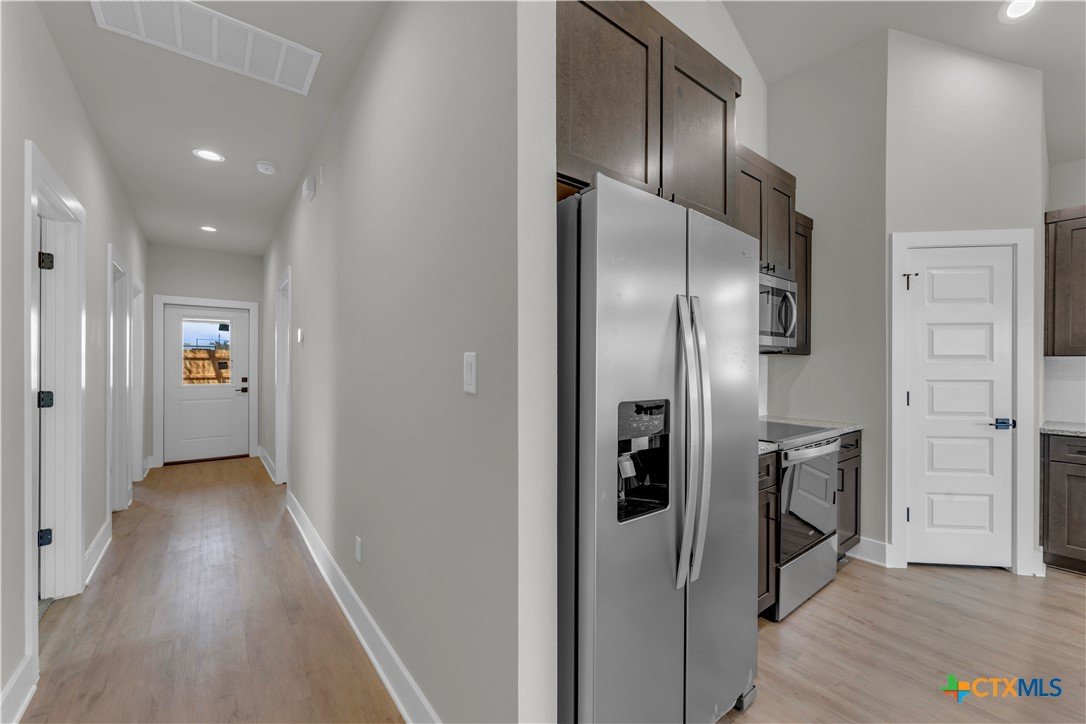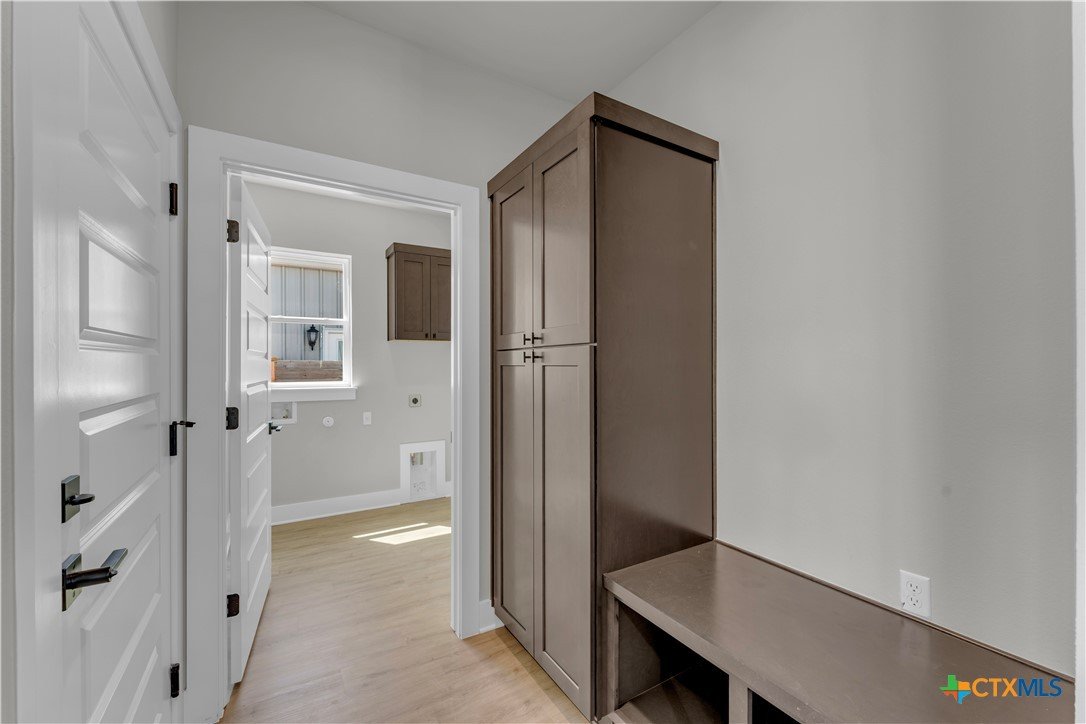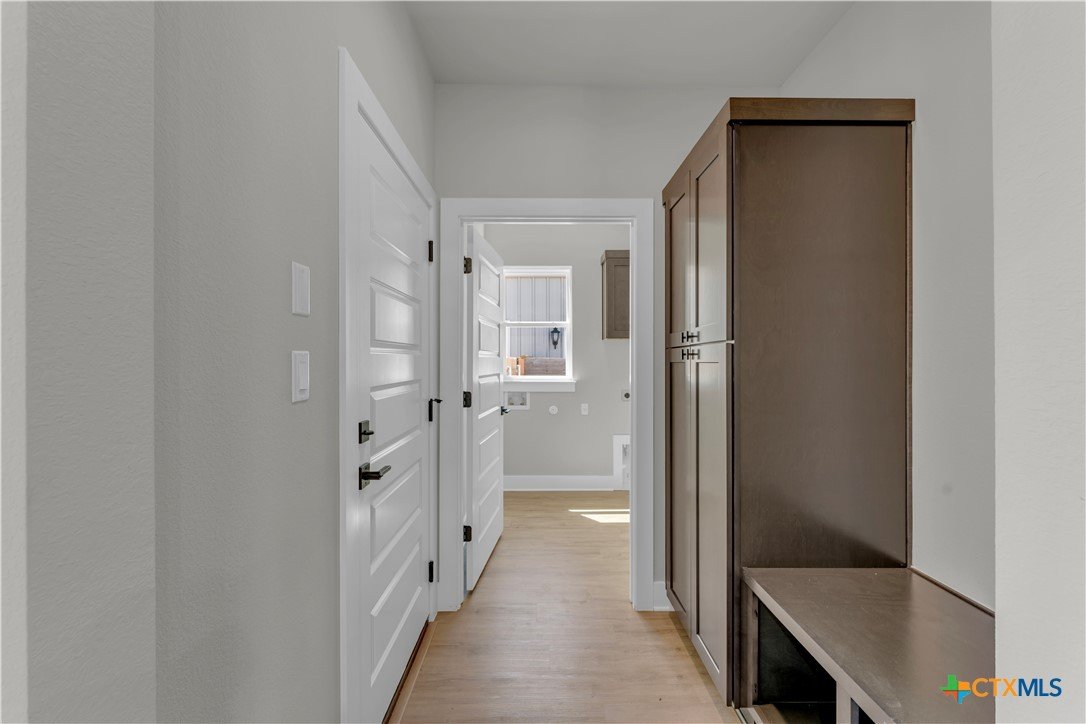 Welcome to this new construction barndominium-style home located in the heart of Bertram. This 3 bedroom, 2 bathroom home offers 1,336 sq ft of living space with a functional layout and modern finishes throughout. The home features an open floor plan with high ceilings and recessed lighting throughout, creating a bright and spacious living area. The interior includes vinyl plank flooring throughout the main living spaces with carpet in the bedrooms. A mudroom space and conveniently located laundry room add everyday practicality to the layout. The kitchen includes granite countertops throughout, modern stainless steel appliances, a center granite kitchen island, subway tile backsplash, and opens directly to the main living area for easy flow between spaces. The primary suite offers a spacious layout and connects to the primary bathroom featuring dual granite vanities, a separate walk-in tiled shower, and a walk-in closet. Additional features include an attached 1-car garage and covered front and back porches overlooking the private backyard, providing space to enjoy the outdoors. Located in a central Bertram location with easy access to the main highway, the builder will provide the final survey and a home warranty.