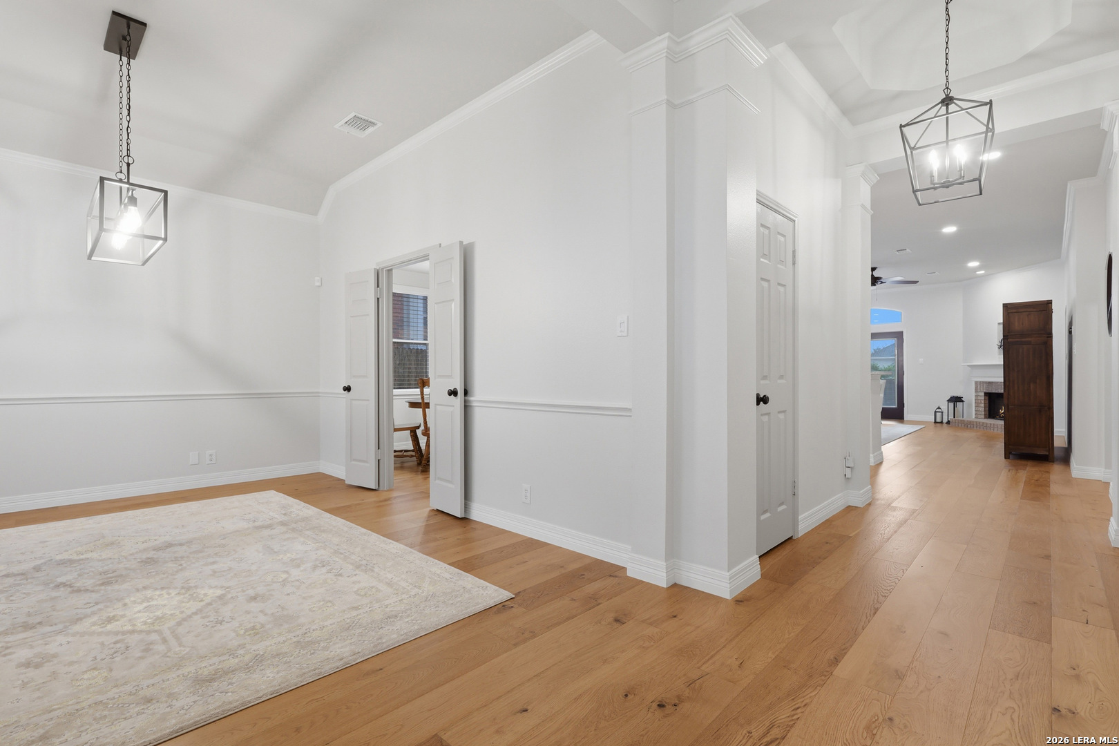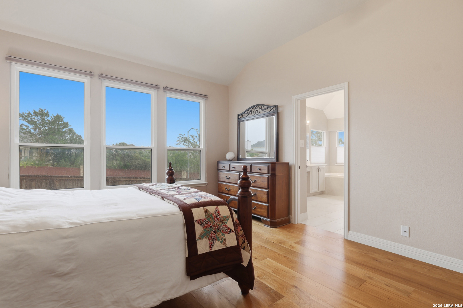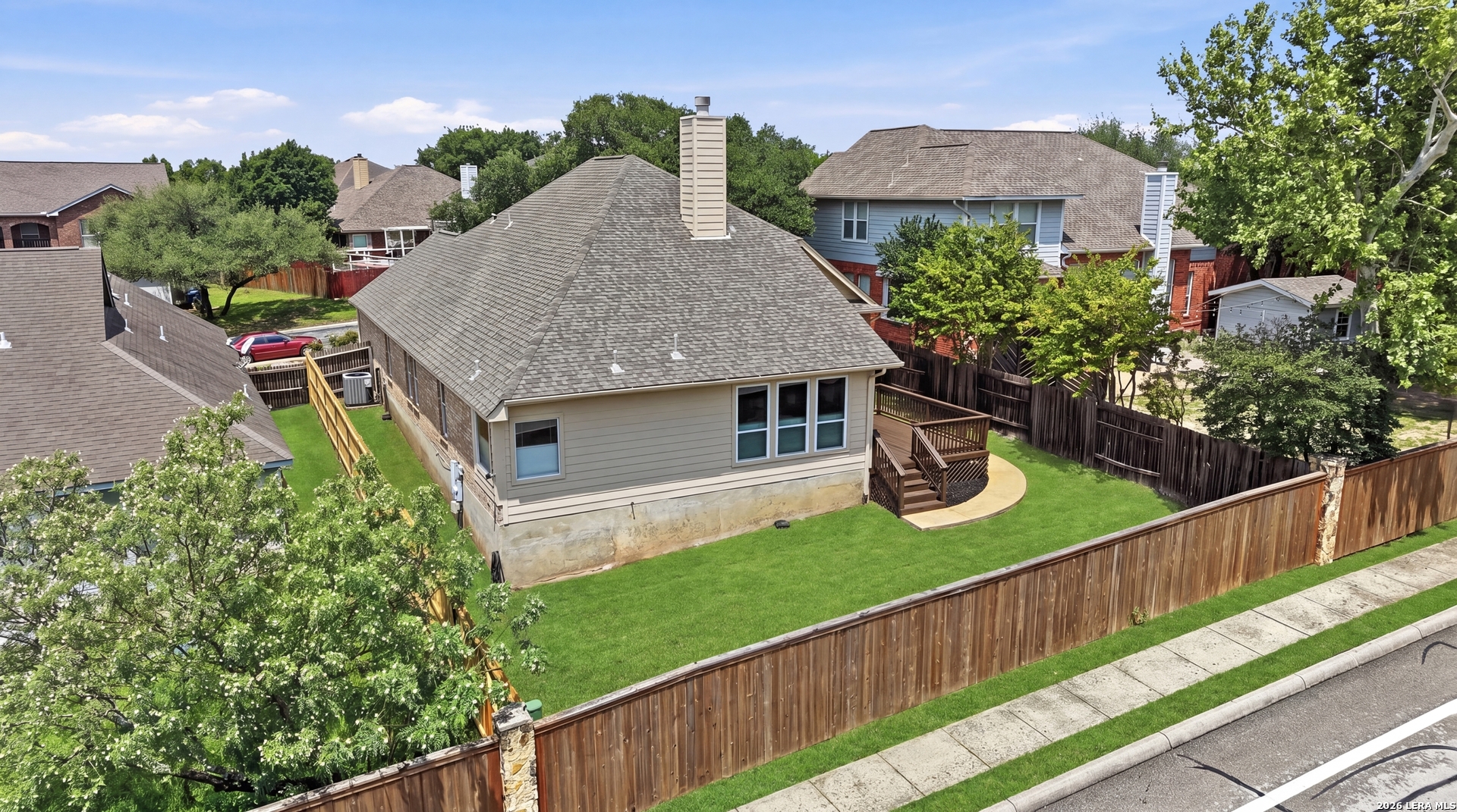 Welcome to this beautifully upgraded single-story David Weekley home located in one of Stone oak's most desirable, established neighborhoods. This light-filled residence features high ceilings and wood flooring throughout. The bright, inviting dining room offers large windows and elegant lighting, making it ideal for entertaining. The open-concept kitchen and living area create a comfortable, connected space with granite countertops, stainless steel appliances, a center island, and a cozy fireplace as the focal point of the living room. The spacious primary suite provides a relaxing retreat with dual vanities, a soaking tub, a separate shower, and a large walk-in closet with abundant storage. Step outside to enjoy the raised deck and a manageable outdoor space designed for low-maintenance living-perfect for morning coffee or evening unwinding. Conveniently located near shopping, dining, and top-rated schools in highly sought-after Stone Oak area.