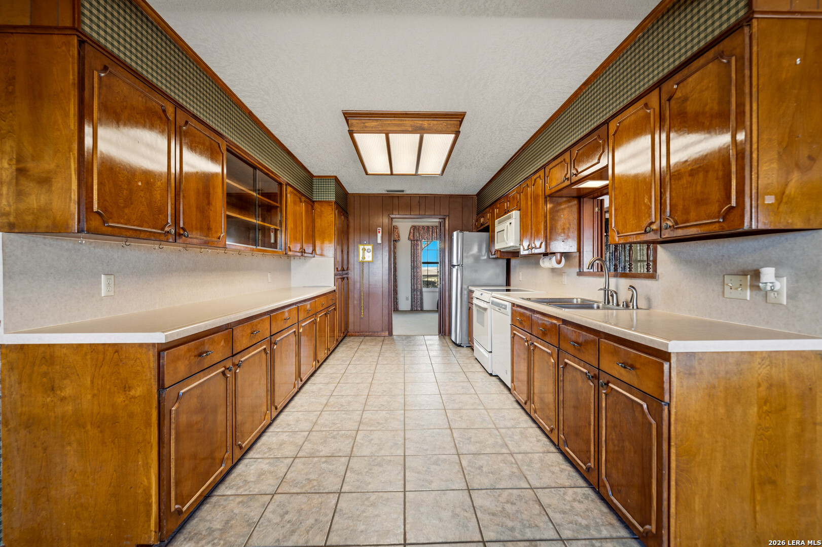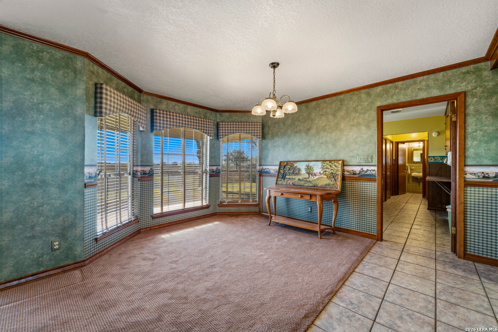 Step into timeless charm with this classic 1969 single-story ranch-style home on 1.11+/- acres, where enduring design meets exceptional care. Known for its effortless layout and lasting appeal, this home offers a rare opportunity to own a piece of architectural tradition that never goes out of style. Meticulously maintained, the home showcases a blend of original character and functional living. Beautiful vintage elements such as rich wood-paneled walls, original bathroom tile, flat wood interior doors, and solid wood kitchen cabinetry add warmth and authenticity-perfect for those who appreciate classic craftsmanship or want a canvas for modern updates. The spacious main living room is filled with natural light from expansive windows and features a custom built-in wood entertainment center, complete with a central media space and flanking bookshelves. Just beyond, a secondary living area is thoughtfully separated by a charming wood half wall with decorative spindles, offering flexibility for entertaining, relaxing, or creating a cozy retreat. The generously sized galley kitchen boasts abundant counter space and storage, highlighted by its original wood cabinets that have stood the test of time. Adjacent to the kitchen, the dining area is beautifully positioned beside a set of bay windows, creating a bright and inviting space for everyday meals or special gatherings. This home includes three bedrooms and THREE full bathrooms, including a private ensuite in the primary bedroom. Set on 1.11 acres, the exterior is equally impressive. The classic brick facade is surrounded by mature trees that provide shade and tranquility, while the established lawn offers ample space to enjoy the outdoors. With its distinctive vintage features, and serene setting, this property presents a unique opportunity to embrace the charm of the past while making it your own for the future. This is a MUST SEE!