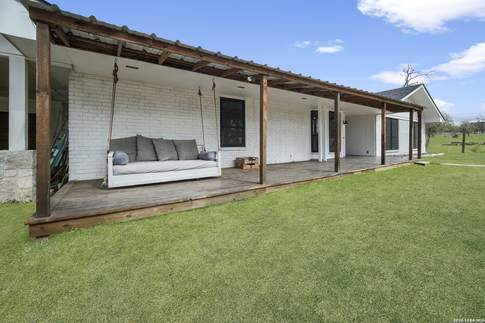 Nestled amidst the scenic Texas Hill Country, this home is a harmonious blend of farmhouse charm and a Hill Country dream. Capturing the classic Texas aesthetic, with rich wood beams, and new large windows invite natural light and countryside views into every corner. The 13 foot wide sliding doors will bring the outside in so you can enjoy the beautiful Texas Hill Country days or sit on the large front porch to enjoy the nights. This 4 bedroom 3 full bath home is on 3 UNRESTRICTED fully gated acres. It also has a spacious living room, office, walk in pantry and double fireplace. Home has been renovated to its finest with a new roof, hardwood flooring, and new carpet in 2 bedrooms. There is room for a future pool or grow your own private enclosed garden next to the large 2 car garage with attached carport. Just a short 15 minute drive to Boerne's historic Main Street, this home offers a quiet lifestyle without sacrificing easy access to shopping, dining, and vibrant local culture.. Horses are welcome, with no HOA! *Outdoor swing does not convey & some photo's are virtually enhanced.