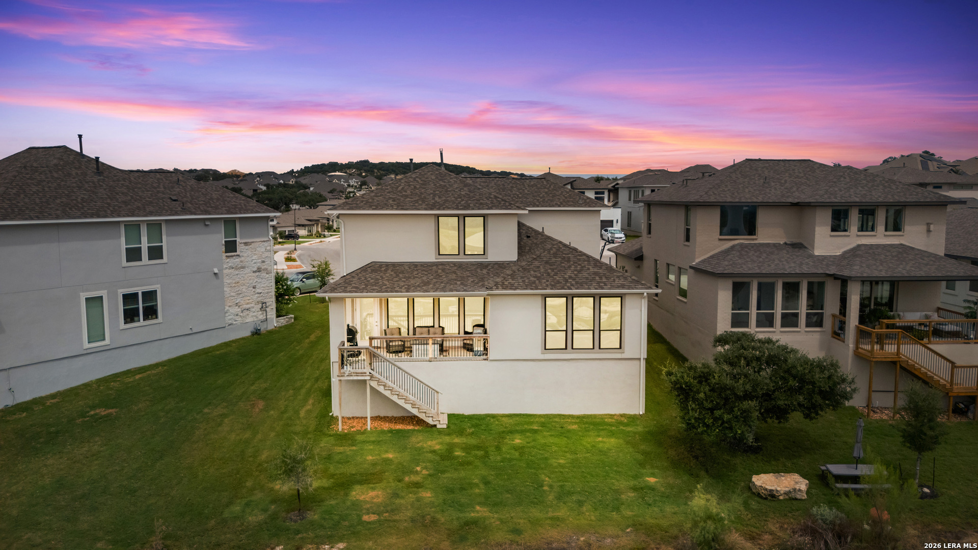 This exceptional 4-bedroom, 3-bath Perry Home features high-end upgrades and a thoughtfully designed open-concept layout perfect for both everyday living and effortless entertaining. A grand entry with soaring 19-foot ceilings makes a striking first impression, leading into a spacious family room accented by a dramatic wall of windows and abundant natural light. The gourmet kitchen seamlessly anchors the main living areas, while the private primary suite-ideally positioned just off the living space-offers a tray ceiling, three large windows, and a generous walk-in closet. French doors open to a spa-inspired bath complete with dual vanities, a garden tub, a separate glass-enclosed shower, and an additional oversized walk-in closet. Upstairs, a bright and expansive game room provides versatile space for gathering or relaxing. Secondary bedrooms feature walk-in closets, dedicated linen storage, and a full bath, completing the second level. Step outside to enjoy added privacy with no back neighbors and serene greenbelt views from the covered backyard patio. A two-car garage adds everyday convenience. Residents enjoy access to resort-style amenities including a clubhouse, fitness center, world-class pools, lazy river, splash pad, dog park, walking trails, open green space, and vibrant community events throughout the year. ASK ABOUT SELLER AND PREFERRED LENDER CONCESSIONS! ALL FURNITURE AND APPLIANCES CAN CONVEY WITH SALE!!
