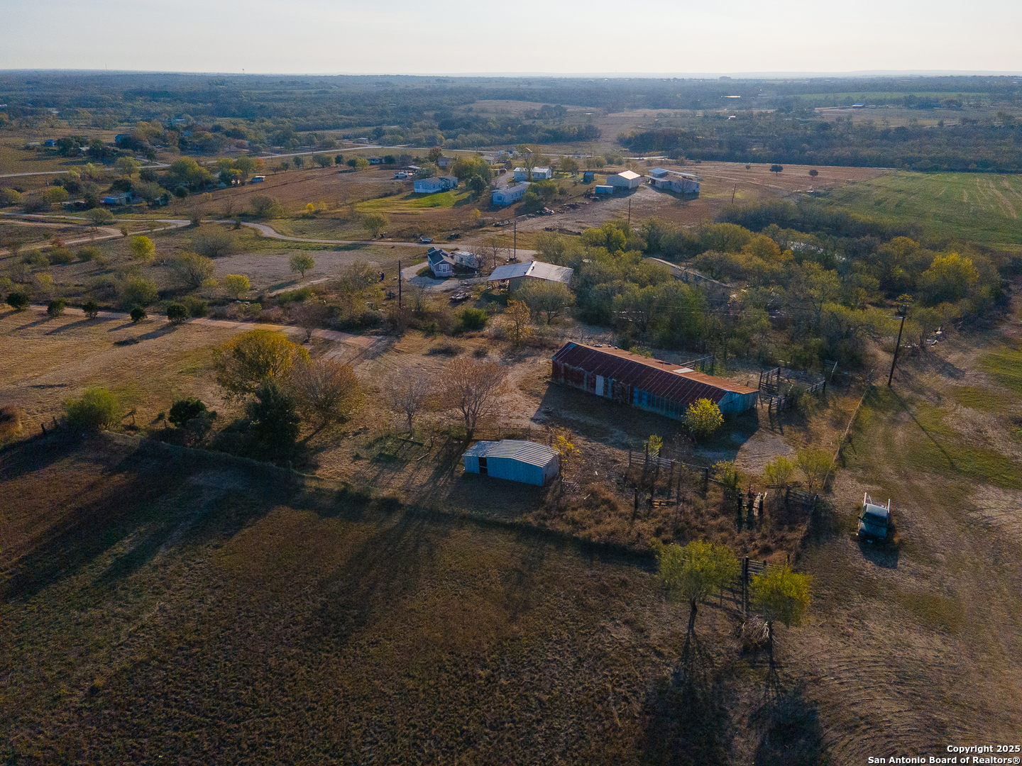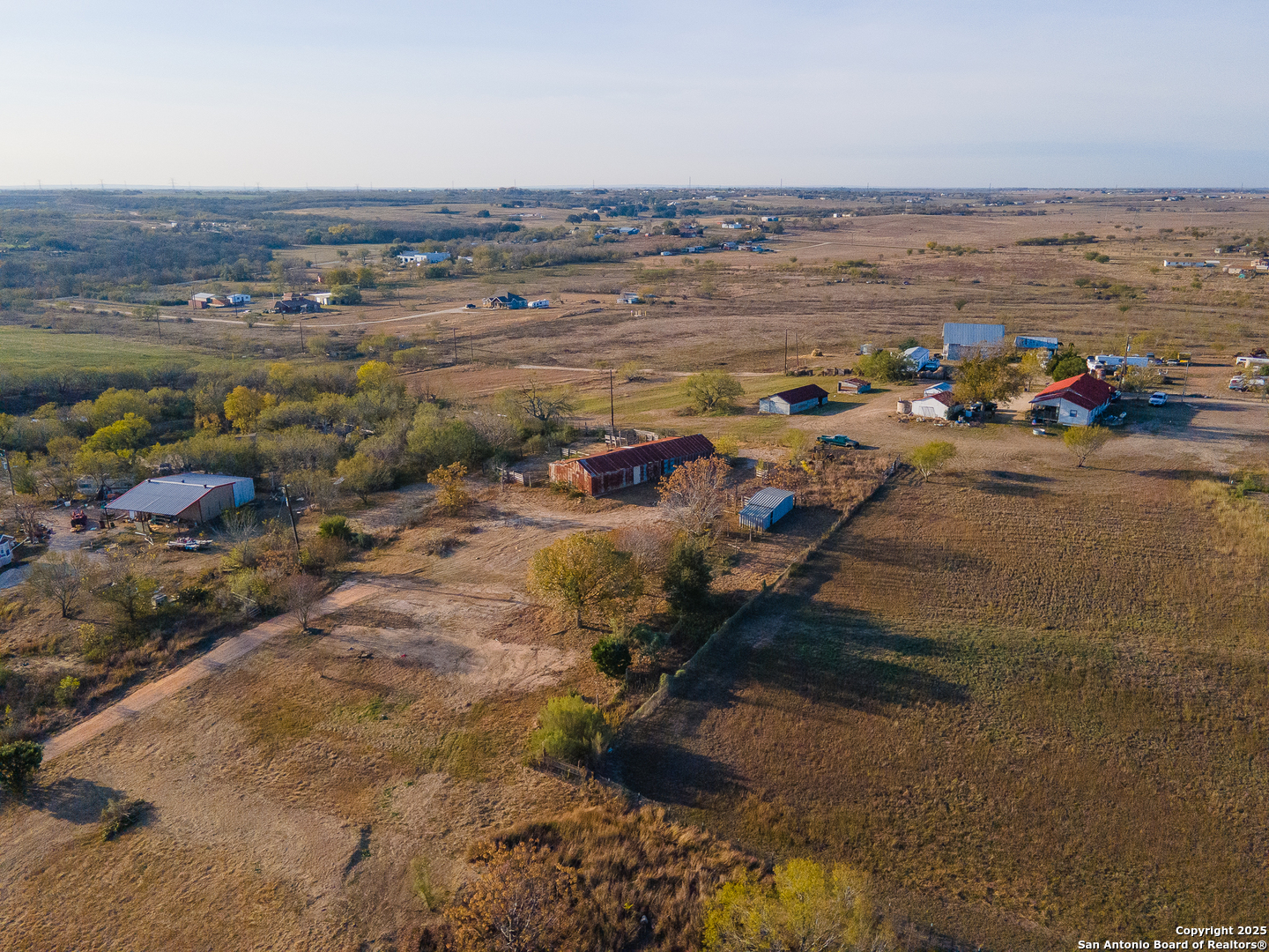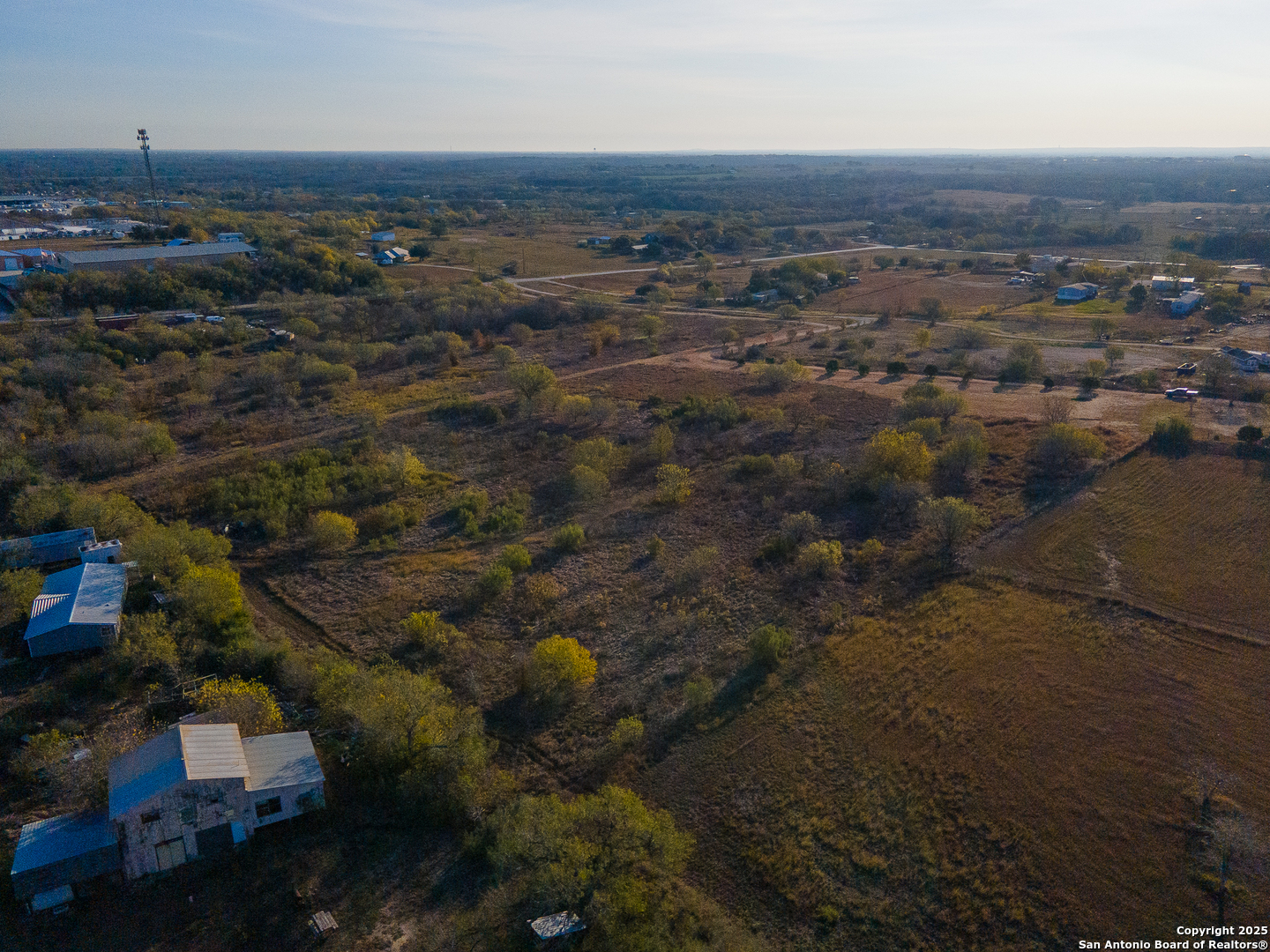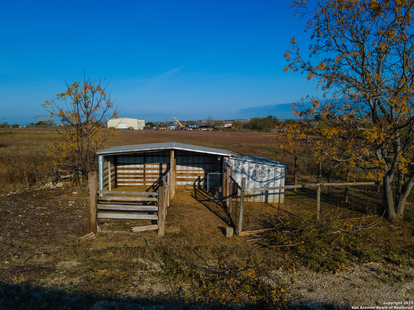 Discover the freedom and potential of this one-of-a-kind 8.44-acre hilltop property, perfectly positioned on a private, flag lot that offers both seclusion and accessibility. With no restrictions, the possibilities are wide open-build your dream home, create a small ranch, or invest in land with incredible versatility. The level building site sits atop a scenic plateau, providing elevated positioning for expansive views and cooling breezes. A large rustic barn anchors the property and is ready to accommodate livestock, feed, equipment, tack, or serve as generous storage. Fenced paddocks/turnouts are already in place on the backside of the barn. Key infrastructure is already in place with water, electricity, and septic, allowing you to move forward with ease. Enjoy the benefits of no city taxes while still being conveniently located near downtown San Antonio, just minutes from Seguin, and quick access to IH-10 for an easy commute. This rare combination of acreage, utilities, elevation, and location makes this property an exceptional opportunity for those seeking space, privacy, and freedom-without sacrificing convenience.