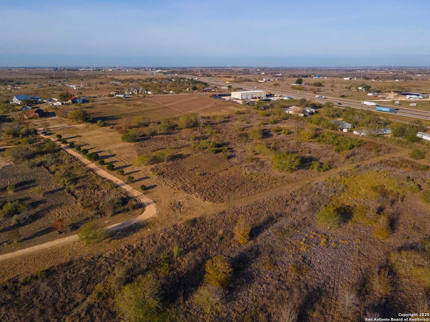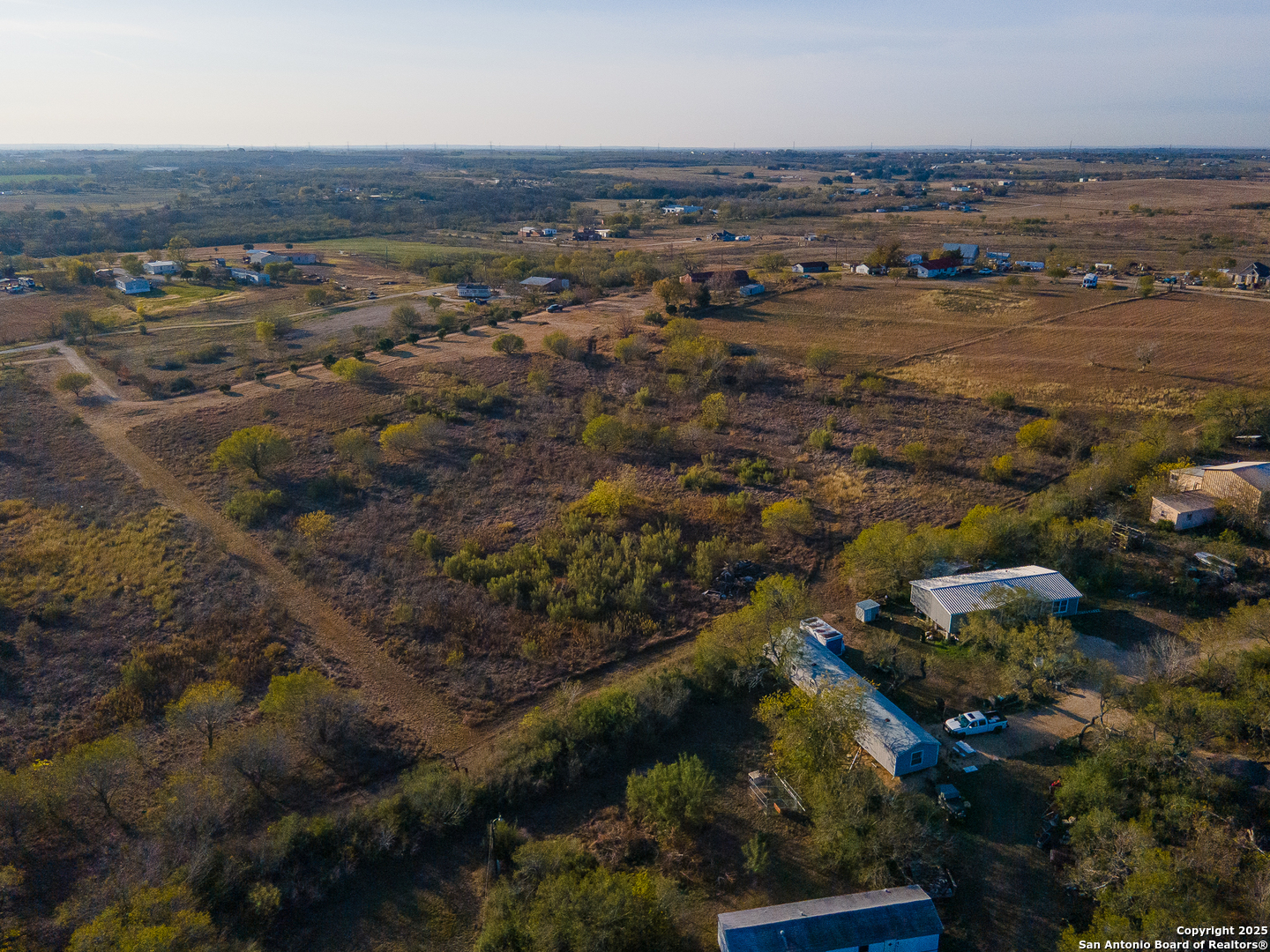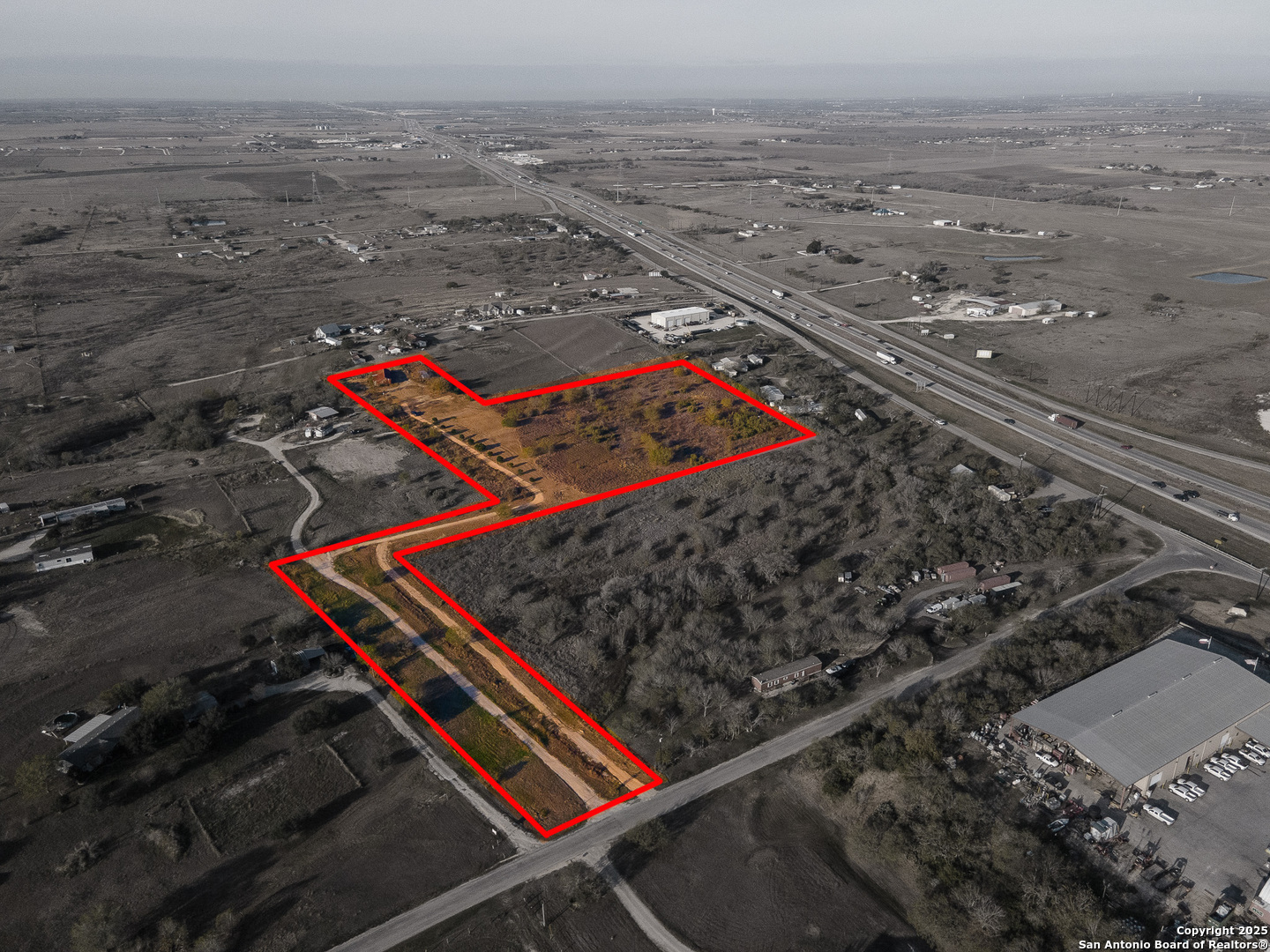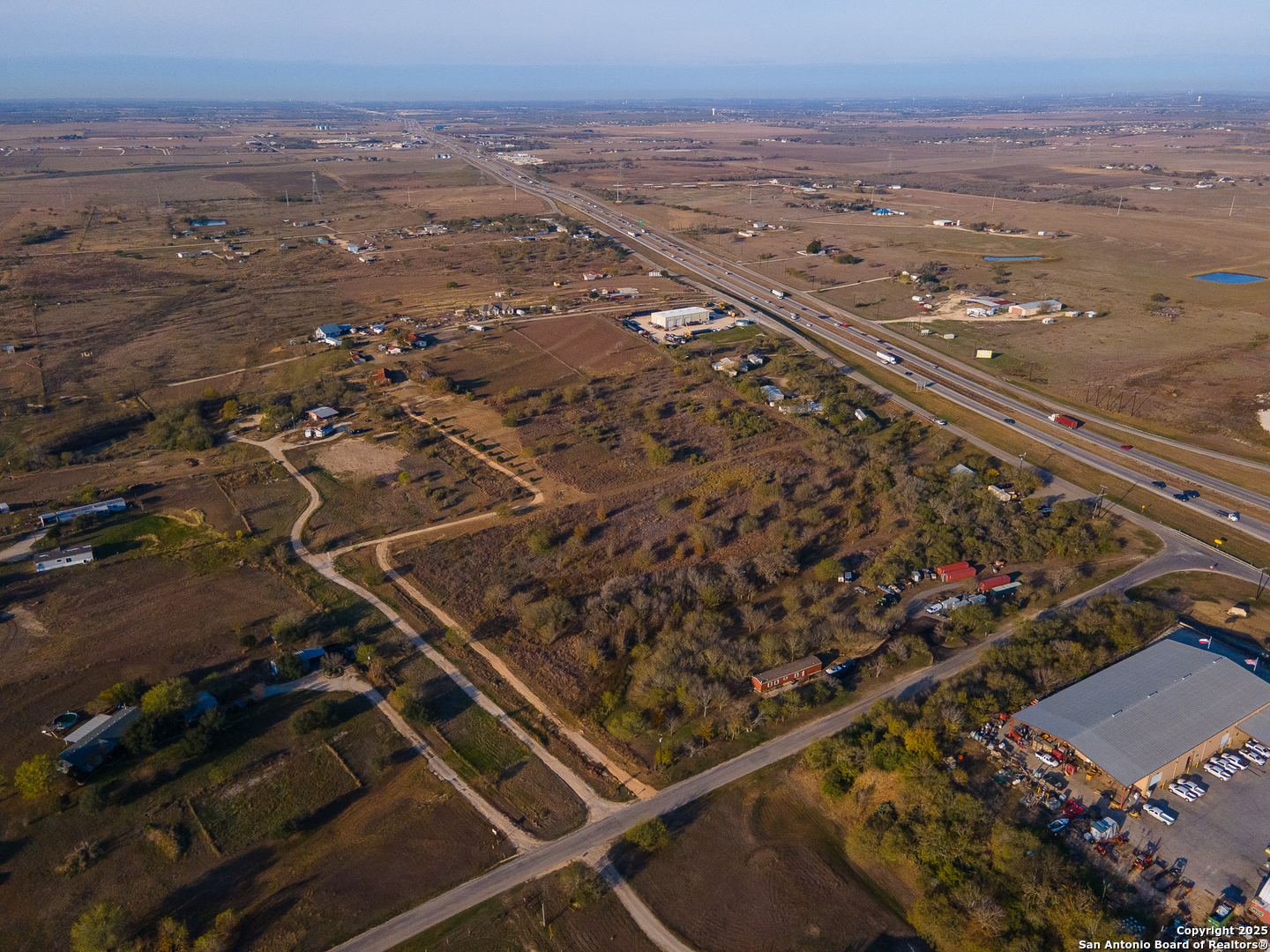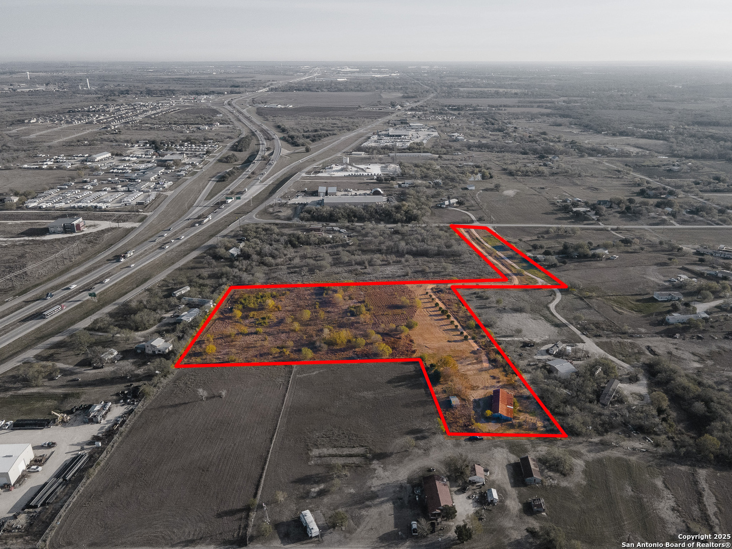Discover the freedom and potential of this one-of-a-kind 8.44-acre hilltop property, perfectly positioned on a private, flag lot that offers both seclusion and accessibility. With no restrictions, the possibilities are wide open-build your dream home, create a small ranch, or invest in land with incredible versatility. The level building site sits atop a scenic plateau, providing elevated positioning for expansive views and cooling breezes. A large rustic barn anchors the property and is ready to accommodate livestock, feed, equipment, tack, or serve as generous storage. Fenced paddocks/turnouts are already in place on the backside of the barn. Key infrastructure is already in place with water, electricity, and septic, allowing you to move forward with ease. Enjoy the benefits of no city taxes while still being conveniently located near downtown San Antonio, just minutes from Seguin, and quick access to IH-10 for an easy commute. This rare combination of acreage, utilities, elevation, and location makes this property an exceptional opportunity for those seeking space, privacy, and freedom-without sacrificing convenience.