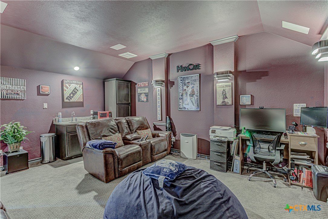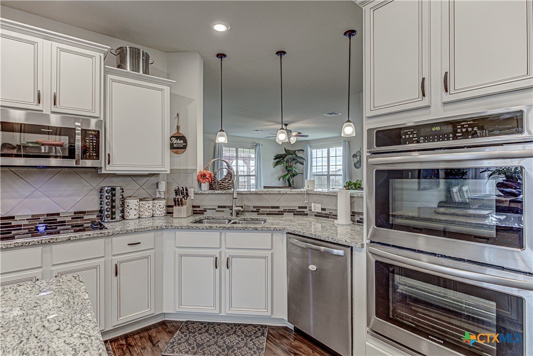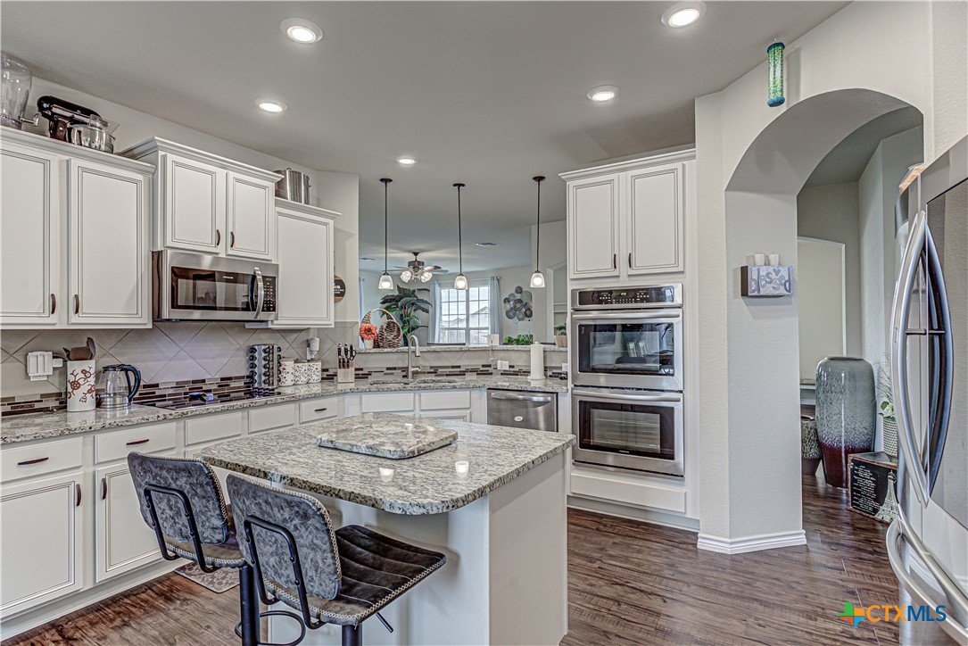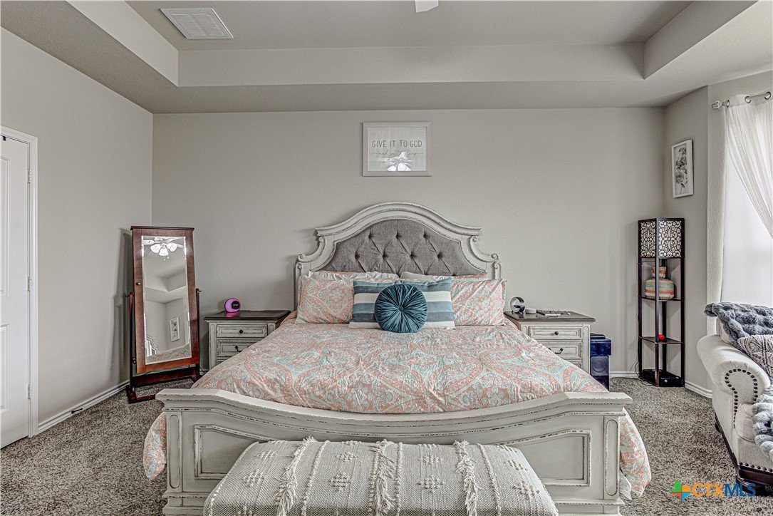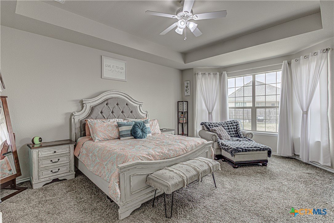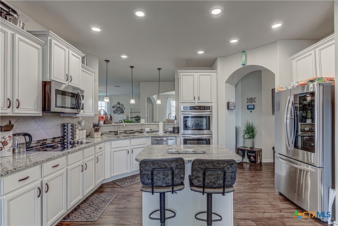 Welcome to this stunning contemporary home, perfectly positioned on an oversized corner lot in the sought-after Cedarbrook Ridge community. Built in 2019 by D.R. Horton, this beautifully crafted two-story residence blends modern elegance with thoughtful functionality, offering 4 bedrooms, 3.5 baths, 2976 square feet of living space, and a 3-car garage with three automatic garage door openers—designed for the way you live today. Step inside to soaring ceilings and an impressive foyer that immediately sets the tone for the home’s bright, open-concept design. Multiple living and dining areas flow effortlessly, creating a warm and inviting atmosphere for both everyday living and special gatherings. The gourmet kitchen is a true centerpiece, featuring granite countertops, built-in appliances, a spacious breakfast bar, and a walk-in pantry—perfect for hosting, meal prep, and making memories. The expansive primary suite is conveniently located on the main level and offers a private retreat complete with dual vanities, a separate shower, and a large walk-in closet. Upstairs, discover a generous loft and a dedicated media room, ideal for movie nights, gaming, or creating the perfect home office or flex space. Outdoors, unwind beneath the covered patio and open pergola in your fully fenced backyard—an ideal setting for relaxing evenings, weekend barbecues, and outdoor entertaining. Unique Benefits: Smart home technology, automatic sprinkler system, a sink and mini-fridge in the media room, and access to the community's in-ground pool, among other features. Ideally located near top schools, shopping, dining, and major highways, this exceptional home offers the perfect balance of comfort, style, and convenience—an opportunity you won’t want to miss.