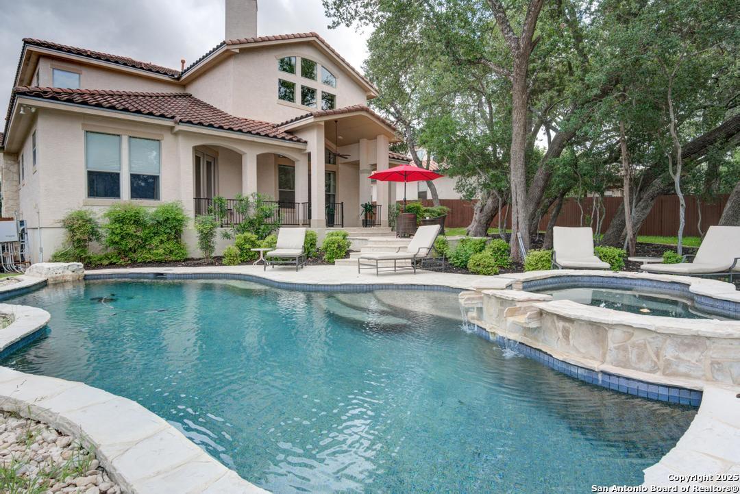 MOTIVATED SELLERS. THIS SPECTACULAR HOME IS LOCATED IN THE DESIRABLE ESTANCIA, A GATED COMMUNITY WITHIN THE GUARDED GATES OF THE HEIGHTS AT STONE OAK. IT FEATURES 4 BEDROOMS PLUS A STUDY & 5 FULL BATHS. PRIVATE COURTYARD ENTRY. HUGE FAMILY ROOM WITH NATURAL STONE FIREPLACE. TALL ARCHITECTURALLY DESIGNED CEILING WITH CROWN MOLDING. DOWNSTAIRS PRIMARY BEDROOM SUITE WITH LUXURIOUS BATH AND A LARGE CLOSET. NO CARPET FOR EASY MAINTENANCE. RELAX IN THE SPARKLING POOL & HOT TUB. ENJOY A PEACEFUL BACK YARD AND A NICE COVERED PATIO, GREAT FOR ENTERTAINING & FAMILY GATHERINGS. EXCELLENT SCHOOLS. A MUST SEE!