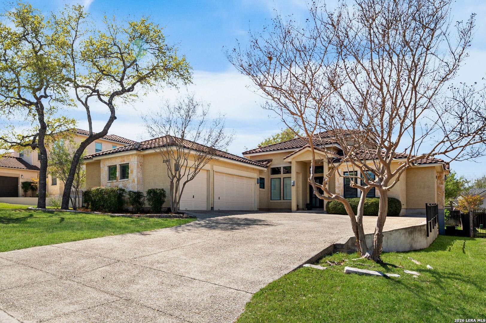 Welcome to this stunning Mediterranean-style one-story custom home in the highly sought-after community of The Heights at Stone Oak "Estancia" in San Antonio. Situated on a generous 0.32-acre lot, this beautifully designed residence offers 3,023 sq ft of living space, featuring 3 spacious bedrooms, Beautiful office, 3.5 baths, and 3-car garage . Enjoy elegant tile flooring throughout the main living areas and an open-concept layout that flows seamlessly into a beautifully appointed kitchen with ample cabinetry-perfect for entertaining and everyday living. The thoughtfully designed floor plan provides privacy for each bedroom, ideal for families and guests. Located within the highly acclaimed North East Independent School District, this home offers the perfect blend of luxury, space, and convenience just minutes from shopping, dining, and major highways. A must-see!