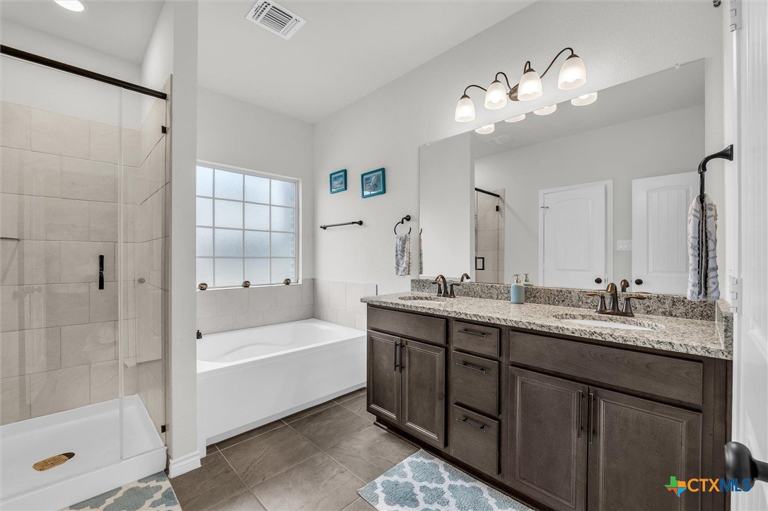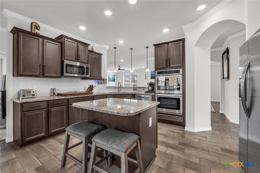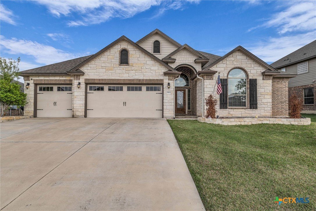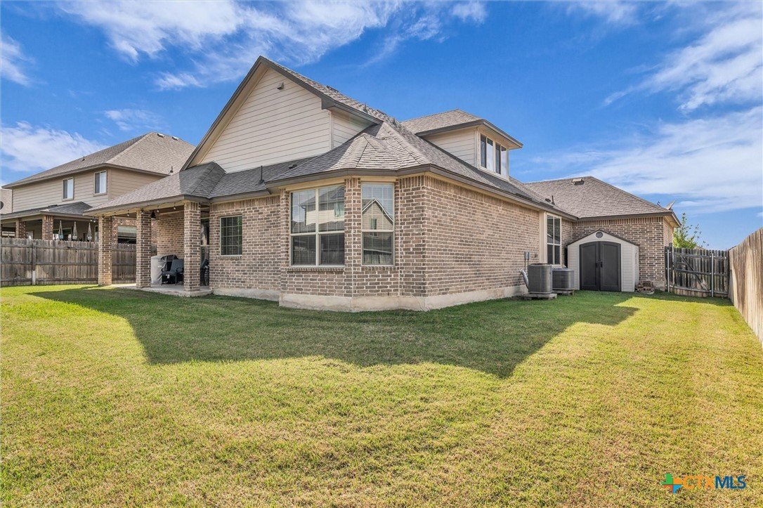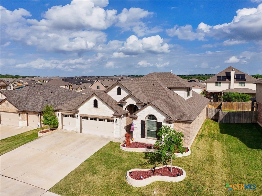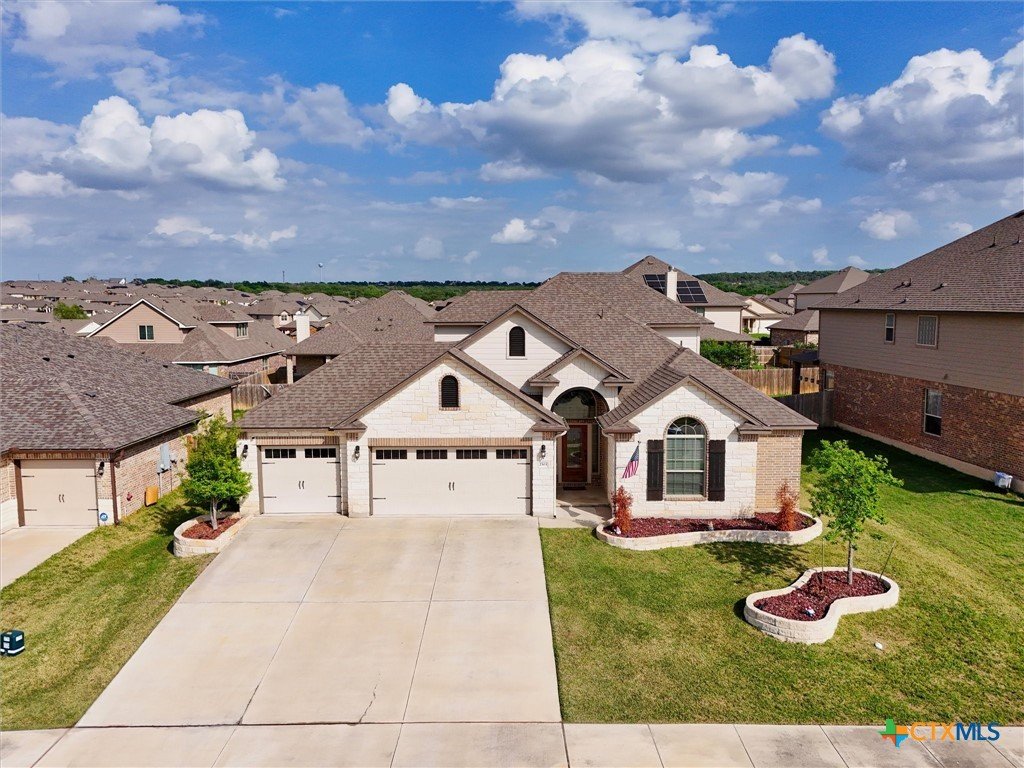 Welcome to this stunning contemporary home located in the highly desirable Cedarbrook Ridge community of Harker Heights! Offering over 3,100 square feet of thoughtfully designed living space, this 4-bedroom, 3.5-bath home perfectly blends comfort, style, and functionality. Step inside to find soaring ceilings, elegant crown molding, and an open-concept layout ideal for both everyday living and entertaining. The spacious kitchen is a true centerpiece, featuring granite countertops, custom cabinetry, a center island, built-in oven, and a breakfast bar that flows seamlessly into the dining and living areas. The primary suite, conveniently located on the main floor, is a private retreat with a spa-like bathroom, double vanities, a garden tub, separate shower, and a generous walk-in closet. Upstairs, you’ll find an additional bedroom, a large loft, and an impressive media room perfect for movie nights or game days. This home is loaded with upgrades, including custom closets, added cabinetry, smart home features, and a beautifully finished epoxy garage floor. Step outside to enjoy a covered patio and a fully fenced backyard complete with an 8x10 storage shed and permanent Govee exterior lighting ideal for relaxing evenings or entertaining guests. Located just minutes from shopping, dining, and major highways, this home also offers access to community amenities such as walking trails, parks, and a pool. Don’t miss the opportunity to own this exceptional home that truly has it all space, style, and a prime location! If you are interested in pursuing a qualified VA assumption loan, please contact our office for more information. The low interest rate makes this home an excellent choice for a qualifying VA assumption. At closing, the seller will transfer a one-year AHS ShieldPlus Warranty to the buyer(s).
