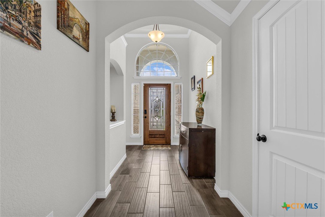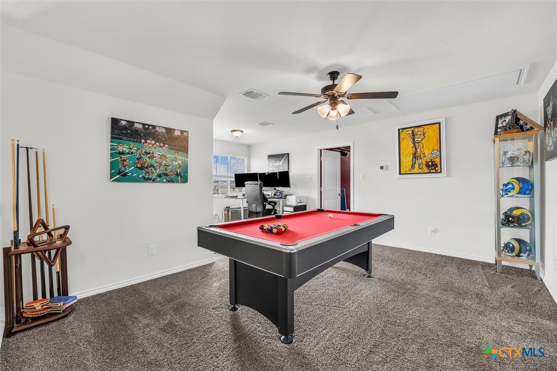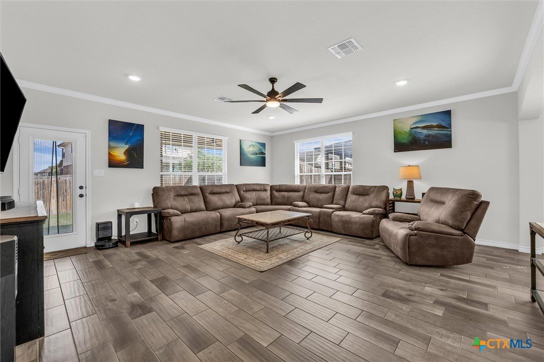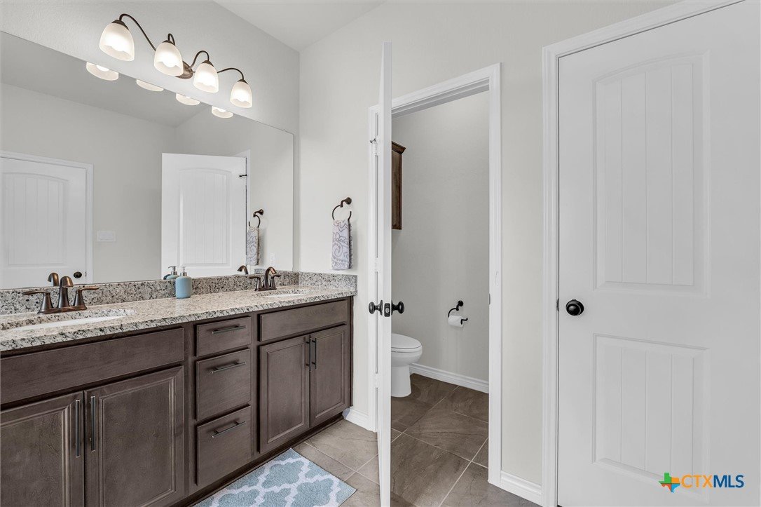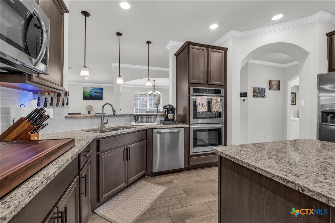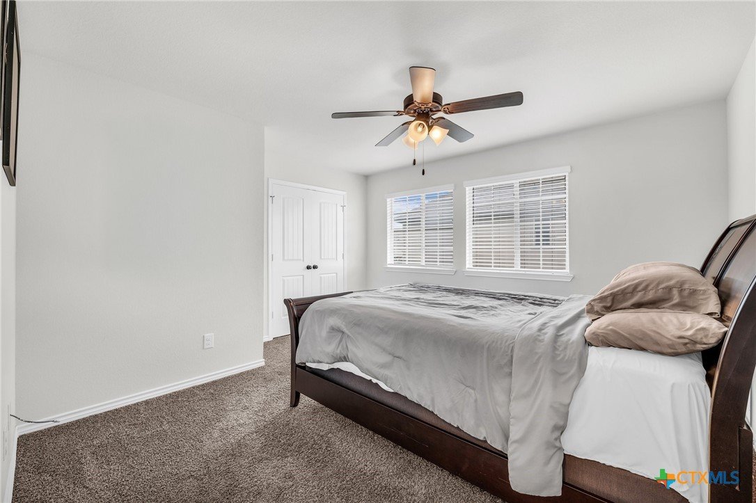 Welcome to this stunning contemporary home located in the highly desirable Cedarbrook Ridge community of Harker Heights! Offering over 3,100 square feet of thoughtfully designed living space, this 4-bedroom, 3.5-bath home perfectly blends comfort, style, and functionality. Step inside to find soaring ceilings, elegant crown molding, and an open-concept layout ideal for both everyday living and entertaining. The spacious kitchen is a true centerpiece, featuring granite countertops, custom cabinetry, a center island, built-in oven, and a breakfast bar that flows seamlessly into the dining and living areas. The primary suite, conveniently located on the main floor, is a private retreat with a spa-like bathroom, double vanities, a garden tub, separate shower, and a generous walk-in closet. Upstairs, you’ll find an additional bedroom, a large loft, and an impressive media room perfect for movie nights or game days. This home is loaded with upgrades, including custom closets, added cabinetry, smart home features, and a beautifully finished epoxy garage floor. Step outside to enjoy a covered patio and a fully fenced backyard complete with an 8x10 storage shed and permanent Govee exterior lighting ideal for relaxing evenings or entertaining guests. Located just minutes from shopping, dining, and major highways, this home also offers access to community amenities such as walking trails, parks, and a pool. Don’t miss the opportunity to own this exceptional home that truly has it all space, style, and a prime location! If you are interested in pursuing a qualified VA assumption loan, please contact our office for more information. The low interest rate makes this home an excellent choice for a qualifying VA assumption. At closing, the seller will transfer a one-year AHS ShieldPlus Warranty to the buyer(s).