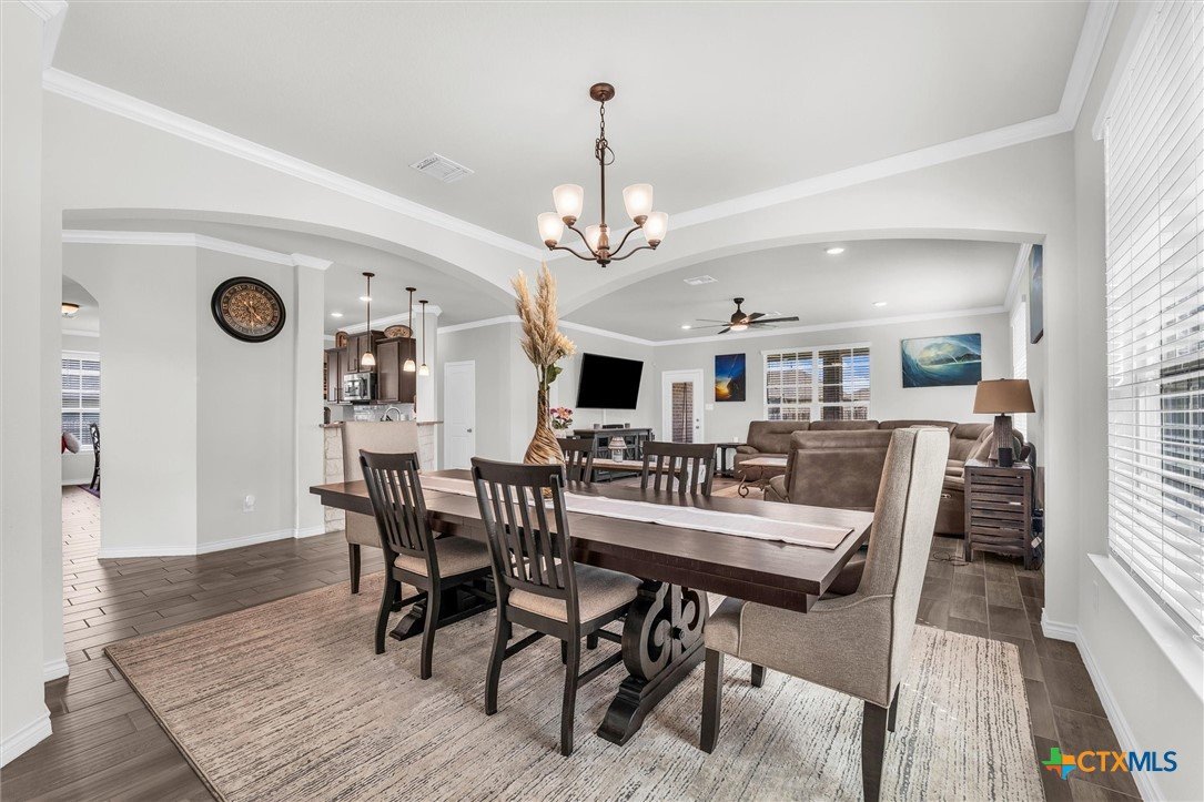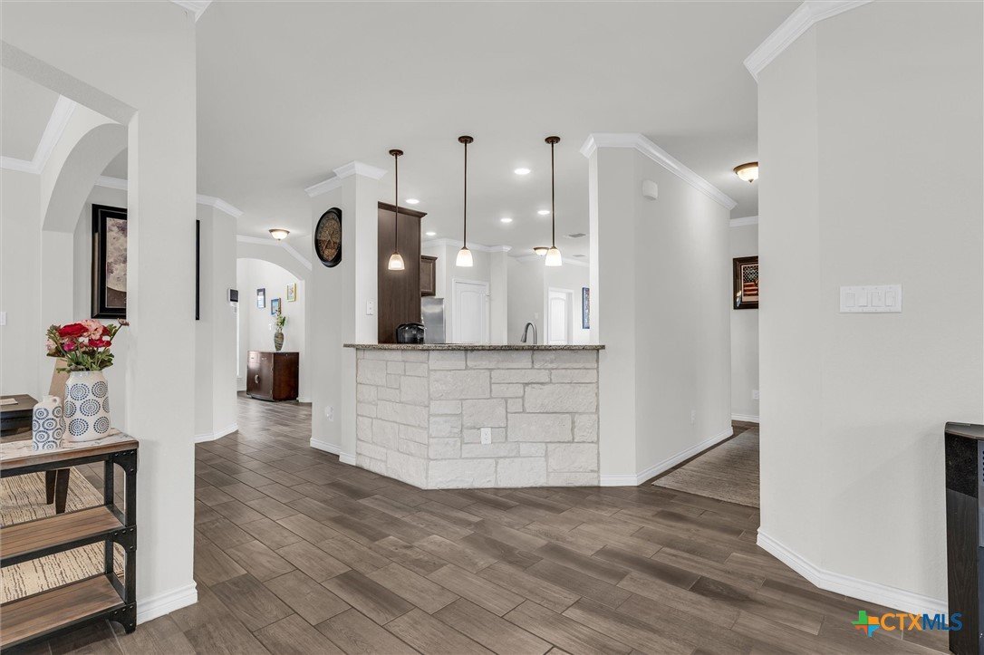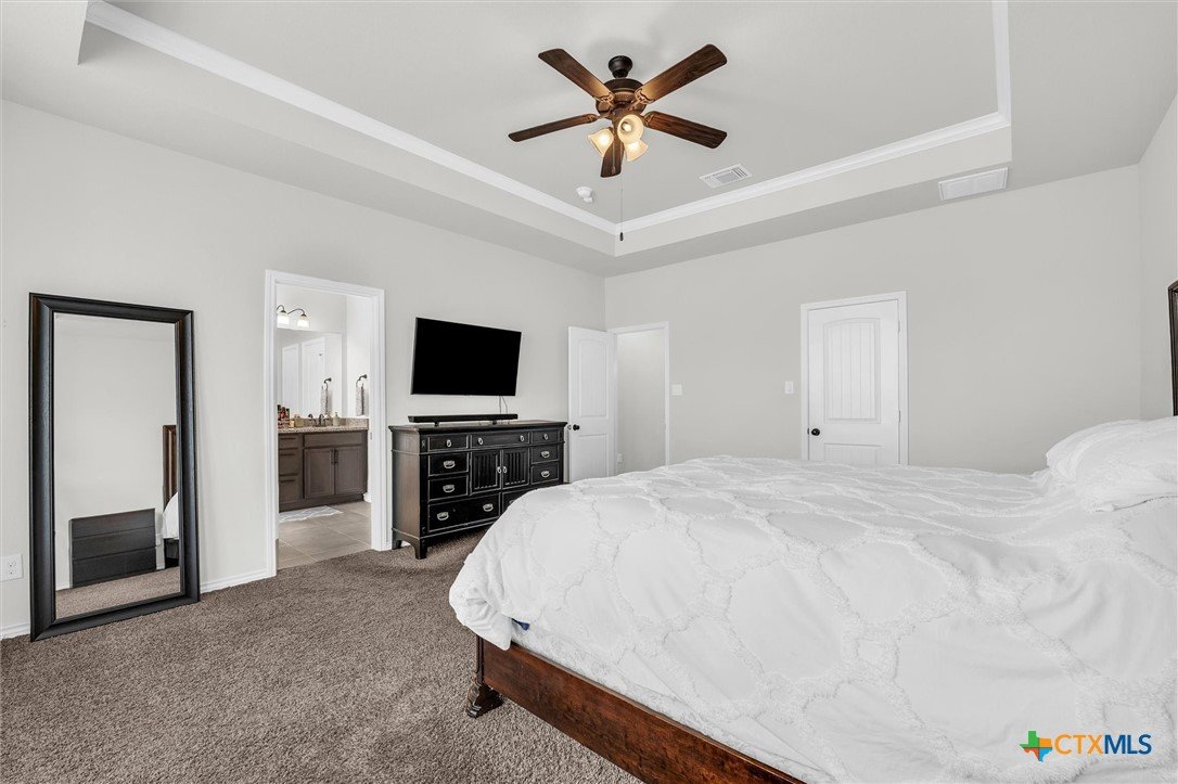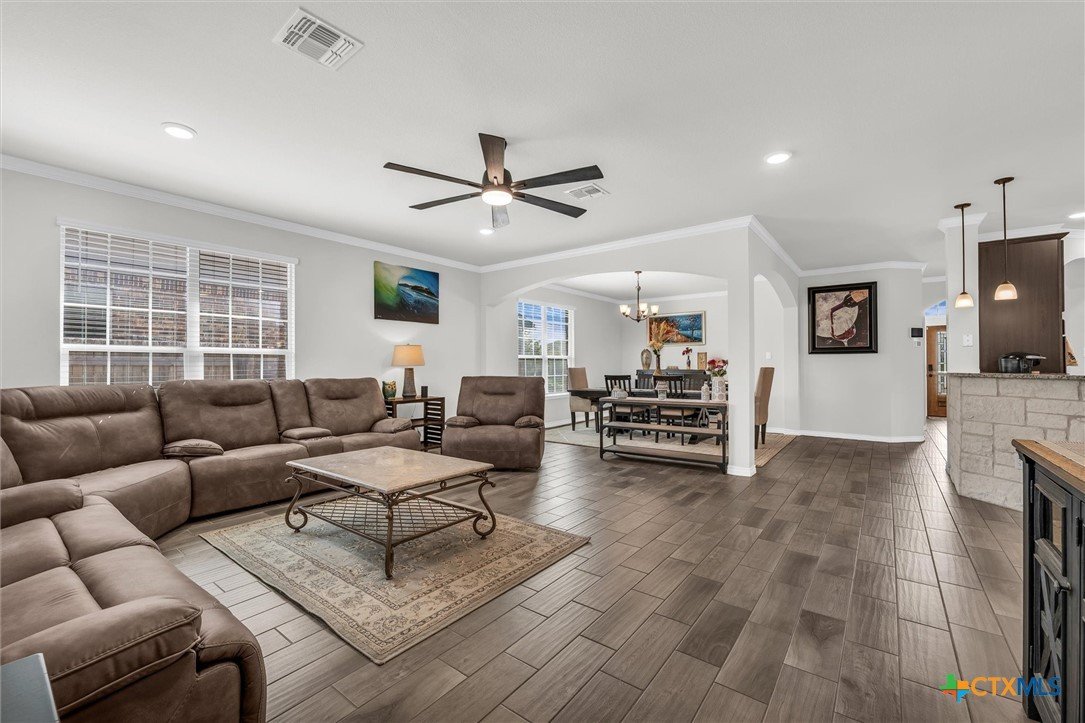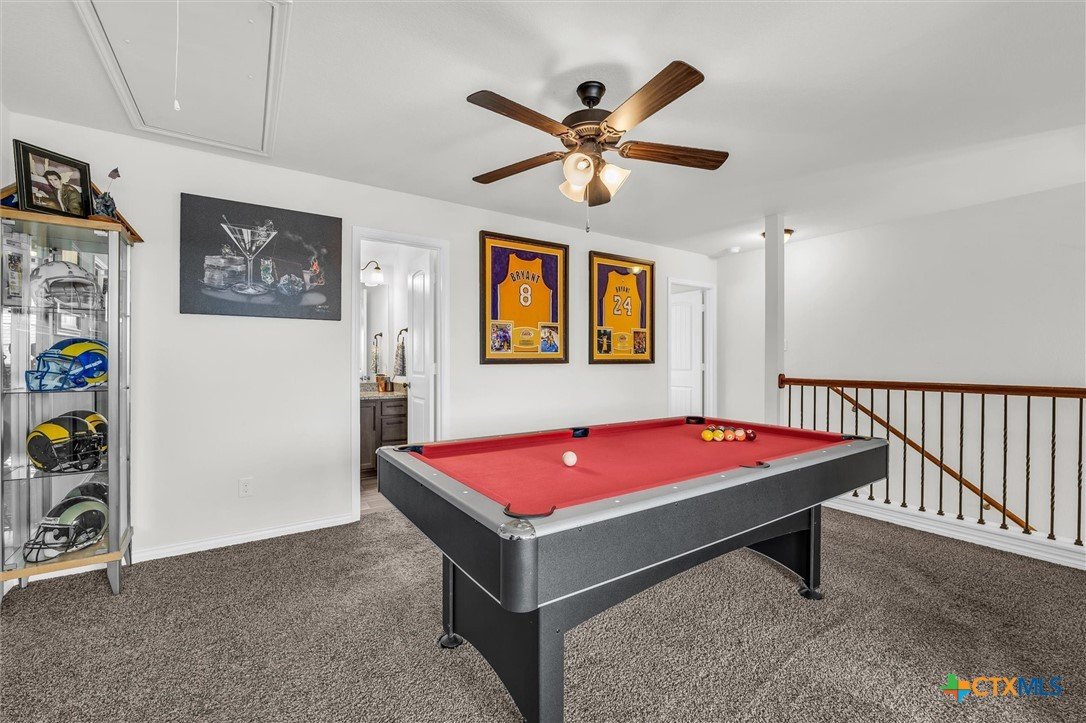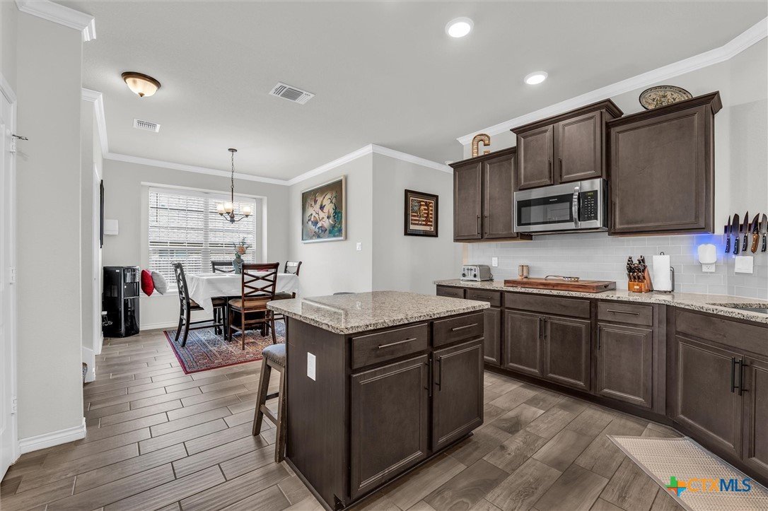 Welcome to this stunning contemporary home located in the highly desirable Cedarbrook Ridge community of Harker Heights! Offering over 3,100 square feet of thoughtfully designed living space, this 4-bedroom, 3.5-bath home perfectly blends comfort, style, and functionality. Step inside to find soaring ceilings, elegant crown molding, and an open-concept layout ideal for both everyday living and entertaining. The spacious kitchen is a true centerpiece, featuring granite countertops, custom cabinetry, a center island, built-in oven, and a breakfast bar that flows seamlessly into the dining and living areas. The primary suite, conveniently located on the main floor, is a private retreat with a spa-like bathroom, double vanities, a garden tub, separate shower, and a generous walk-in closet. Upstairs, you’ll find an additional bedroom, a large loft, and an impressive media room perfect for movie nights or game days. This home is loaded with upgrades, including custom closets, added cabinetry, smart home features, and a beautifully finished epoxy garage floor. Step outside to enjoy a covered patio and a fully fenced backyard complete with an 8x10 storage shed and permanent Govee exterior lighting ideal for relaxing evenings or entertaining guests. Located just minutes from shopping, dining, and major highways, this home also offers access to community amenities such as walking trails, parks, and a pool. Don’t miss the opportunity to own this exceptional home that truly has it all space, style, and a prime location! If you are interested in pursuing a qualified VA assumption loan, please contact our office for more information. The low interest rate makes this home an excellent choice for a qualifying VA assumption. At closing, the seller will transfer a one-year AHS ShieldPlus Warranty to the buyer(s).