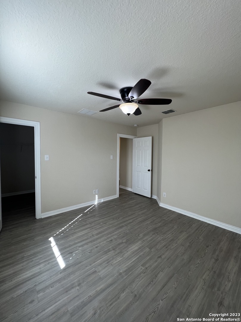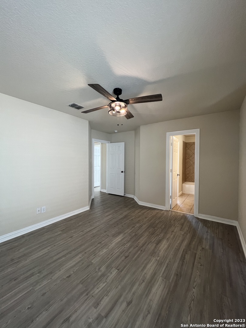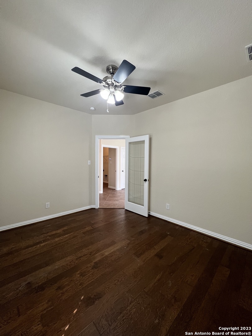 Welcome to this stunning two-story home nestled in the highly sought-after gated community of Two Creeks. Offering approximately 2,855 square feet of well-designed living space, this residence features 4 spacious bedrooms, 3.5 baths, and a 2-car garage. Perfectly situated within walking distance to the elementary school and community pool, the location couldn't be more ideal. Inside, you'll find thoughtful upgrades throughout - a private office with rich wood floors, no carpet anywhere, a separate formal dining area, and a bright eat-in kitchen with granite countertops, a breakfast bar with slate accents, 42-inch cabinets, and a stylish slate backsplash. The kitchen island adds both function and charm, perfect for gatherings. Retreat to the generous primary suite featuring a garden tub, separate shower, and ample closet space. Upstairs, enjoy a spacious game room and a convenient storage room. Outdoor living is equally inviting with a covered front porch, a relaxing covered back patio, and an extended deck ideal for entertaining.