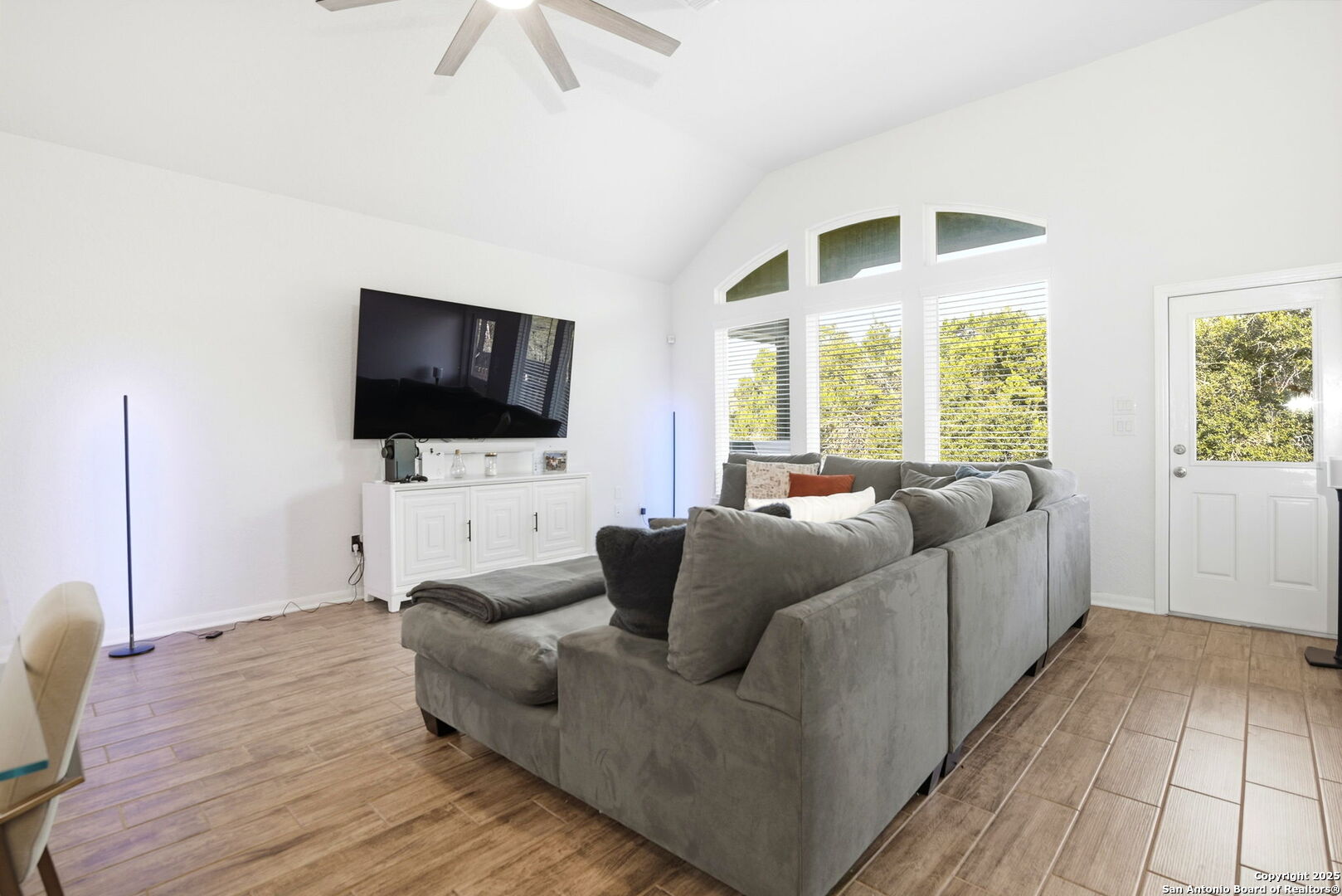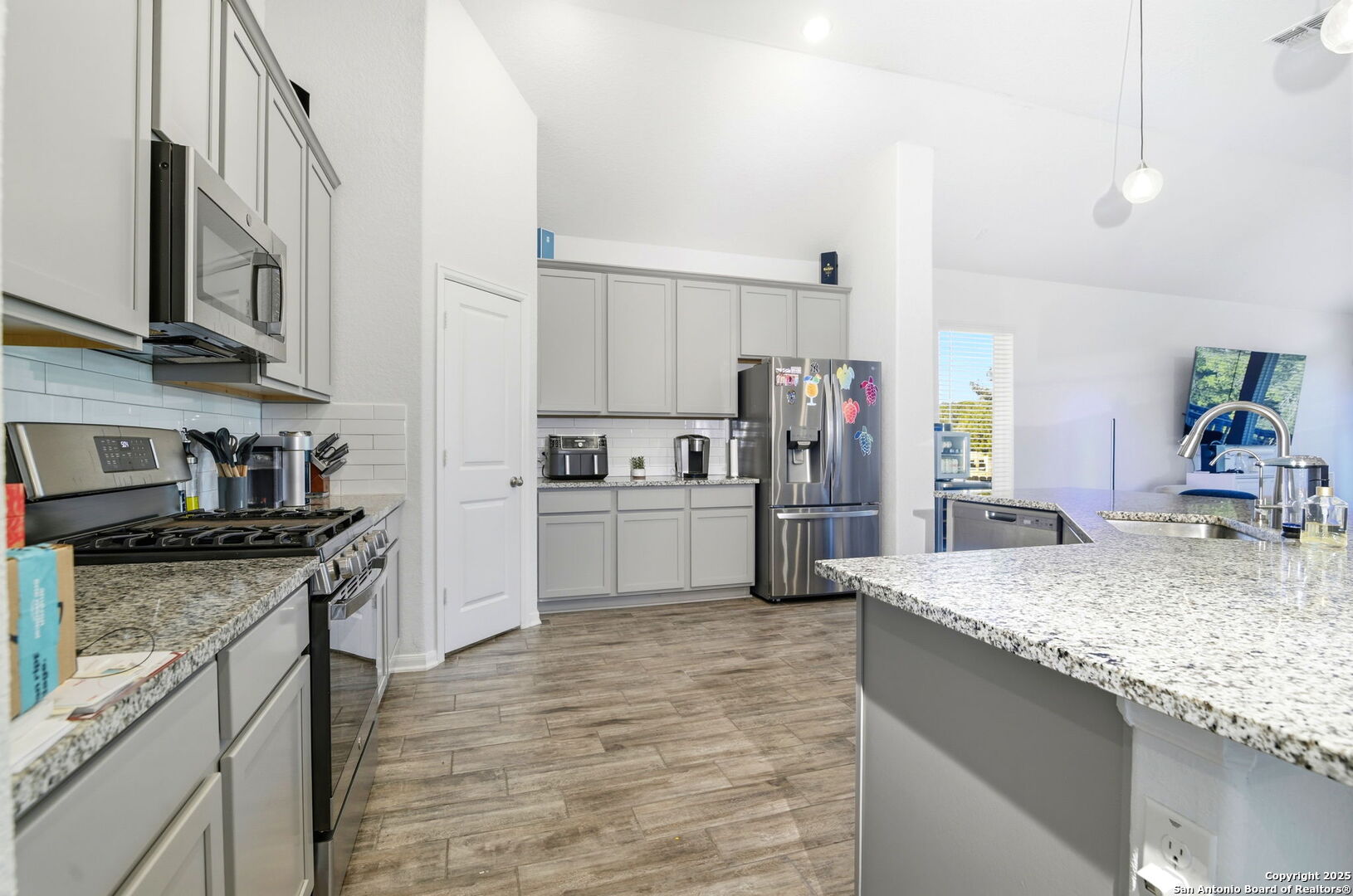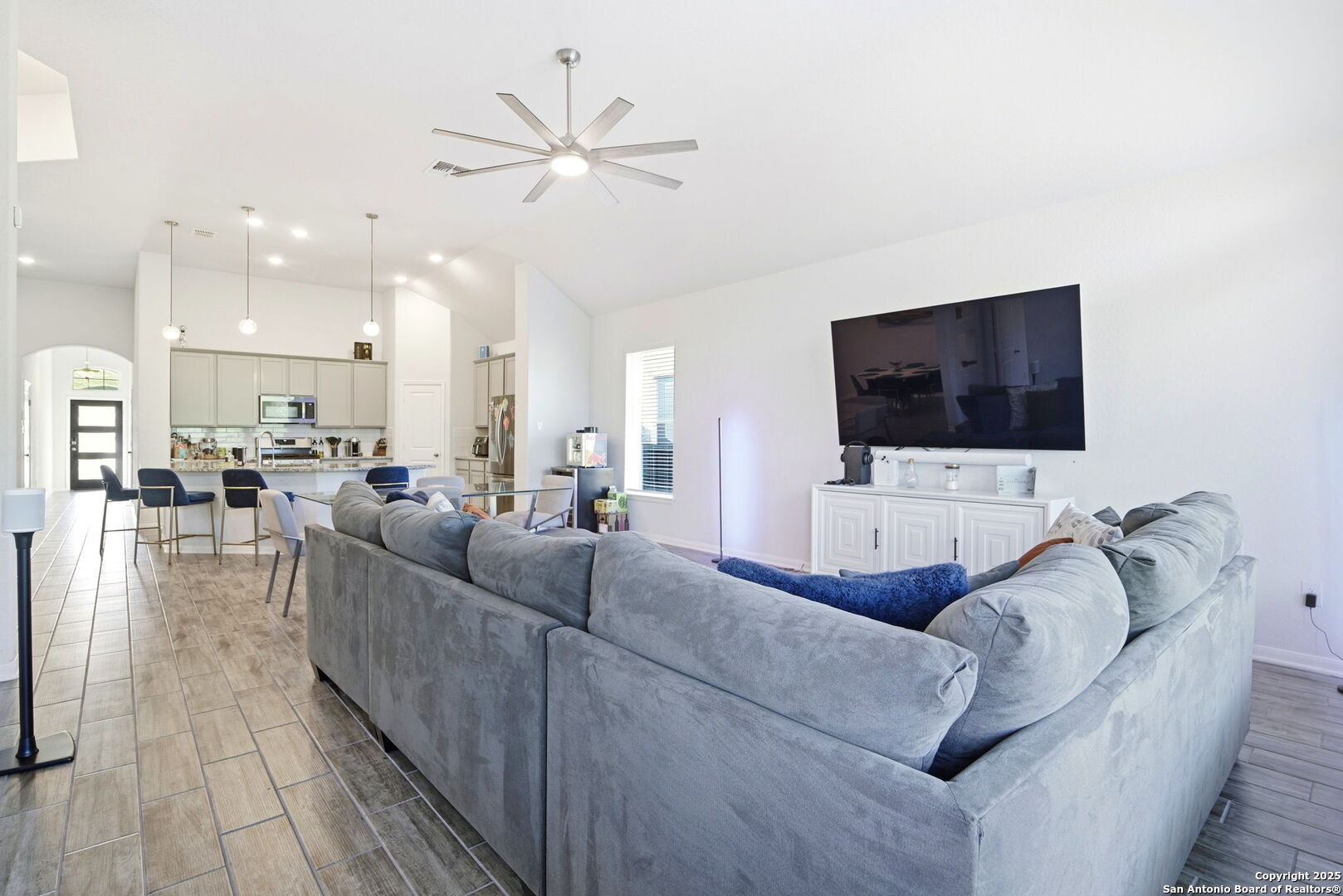 Welcome to 25046 Las Pilas, a beautifully designed single-story home in the prestigious Monteverde at Cibolo Canyons. This modern retreat offers a bright open floor plan, high ceilings, and elegant finishes throughout. The kitchen features quartz countertops, stainless-steel appliances, and a spacious island that flows seamlessly into the living and dining areas. Enjoy peaceful mornings or relaxing evenings on the covered patio overlooking the serene greenbelt. Located near TPC San Antonio and the JW Marriott Hill Country Resort, this home combines luxury, comfort, and location. Schedule your private tour today-your dream home awaits.