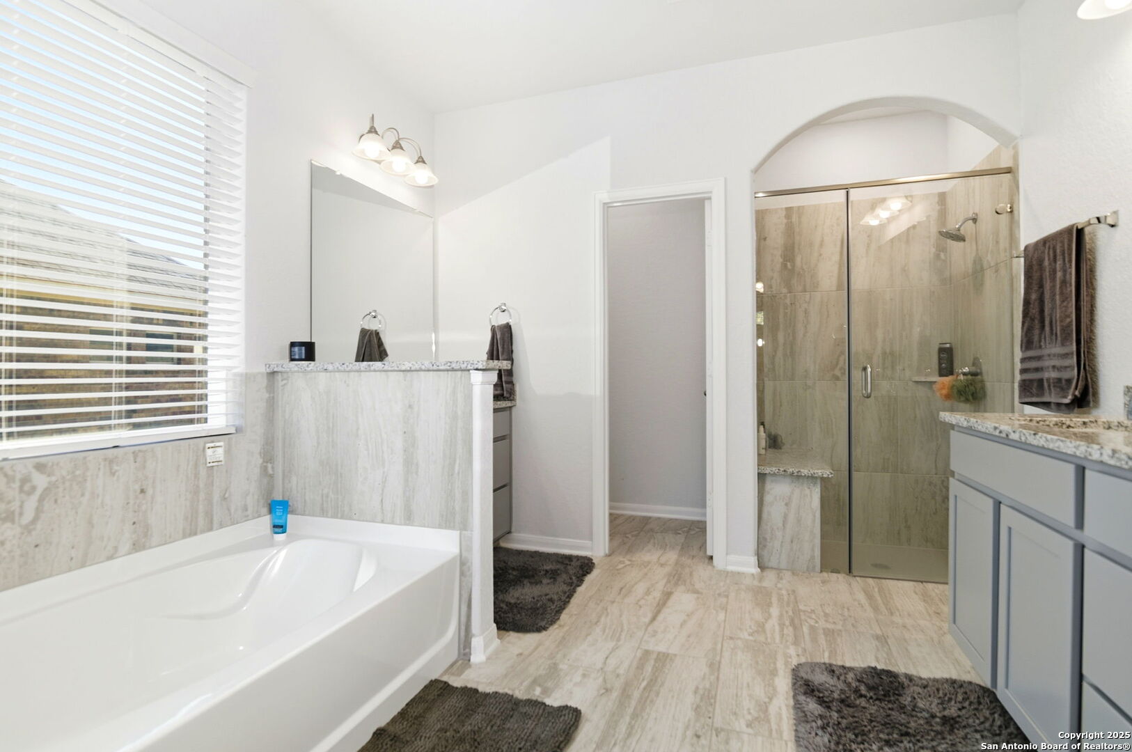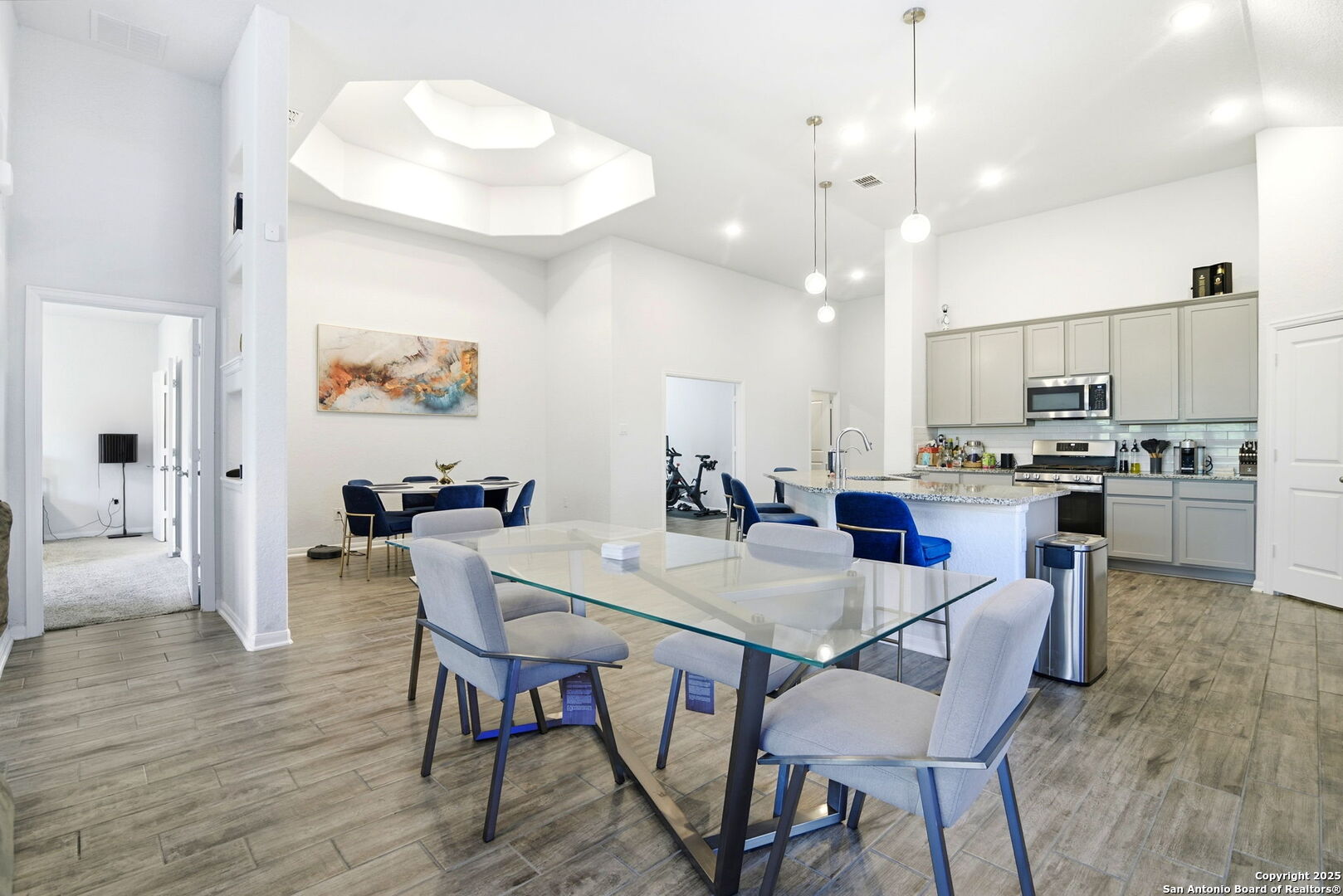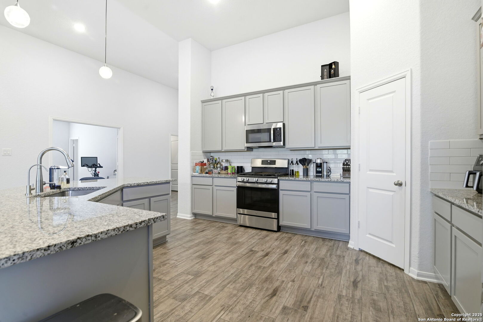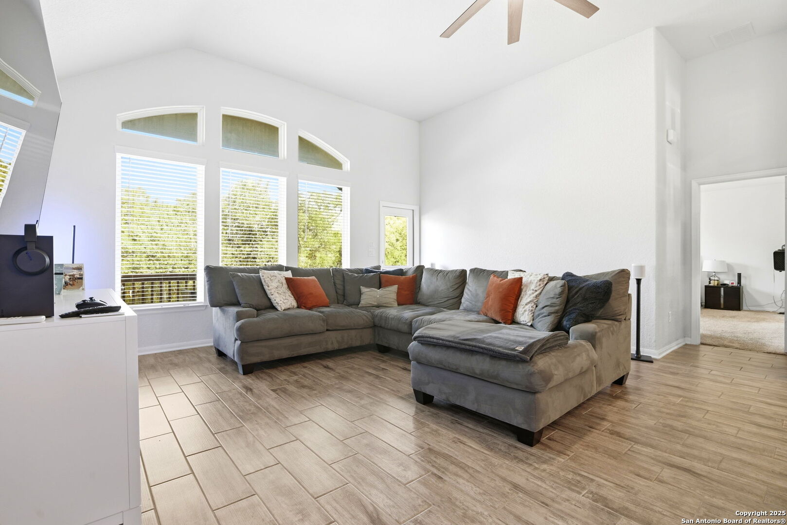 Welcome to 25046 Las Pilas, a beautifully designed single-story home in the prestigious Monteverde at Cibolo Canyons. This modern retreat offers a bright open floor plan, high ceilings, and elegant finishes throughout. The kitchen features quartz countertops, stainless-steel appliances, and a spacious island that flows seamlessly into the living and dining areas. Enjoy peaceful mornings or relaxing evenings on the covered patio overlooking the serene greenbelt. Located near TPC San Antonio and the JW Marriott Hill Country Resort, this home combines luxury, comfort, and location. Schedule your private tour today-your dream home awaits.