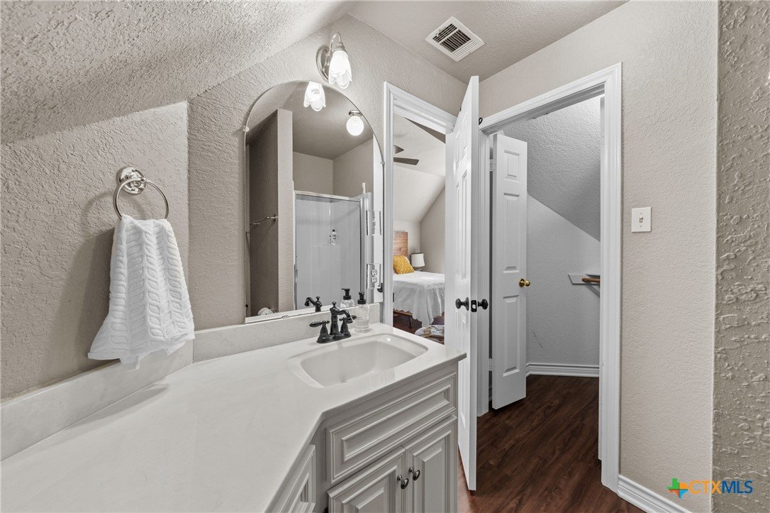 Tucked away on a quiet cul-de-sac in Temple, this stately brick home sits gracefully beneath mature shade trees on approximately half an acre, offering both privacy and room to breathe. A long, gently sloping driveway leads to a side-entry garage, setting the tone for the peaceful, established setting that surrounds the home. Inside the main house, three bedrooms are thoughtfully arranged for comfortable everyday living. Above the garage, a private upstairs suite—complete with its own bathroom and accessed exclusively through the garage—creates incredible versatility. Whether used as a guest retreat, mother-in-law suite, home office, or potential rental space, this area feels intentionally separate while still connected. Beyond the fence line, additional city-owned green space along the creek offers extra room for exploring and play, enhancing the already generous outdoor setting. Recent updates add peace of mind, including a new roof installed in May 2025, one HVAC unit replaced in 2023, and water heaters replaced in September 2023 and April 2025. With its quiet location, flexible floor plan, and serene natural surroundings, this home offers a rare blend of privacy, function, and timeless curb appeal.