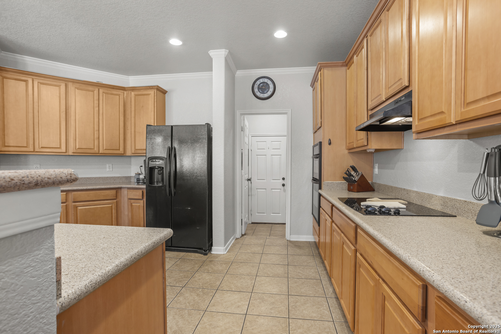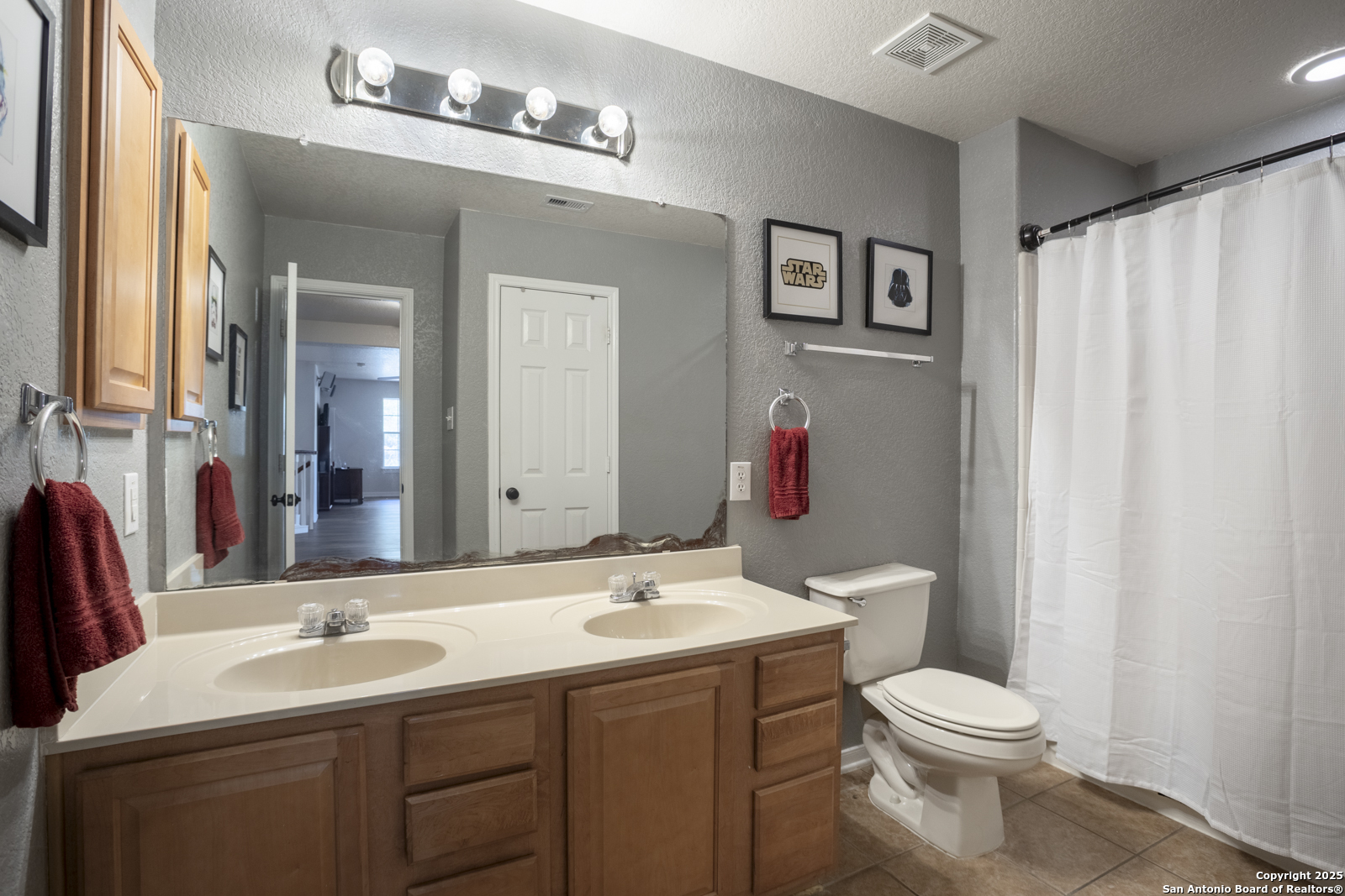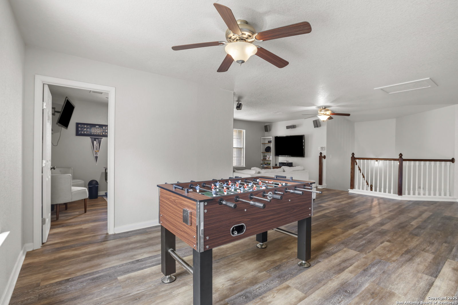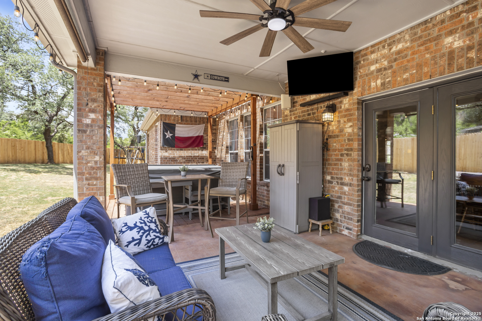 Welcome to 25127 Royal Land, a beautifully appointed 3,521 sq ft home offering 4 bedrooms and 2.5 baths in the sought-after Stage Run community of Northwest San Antonio. From the moment you step inside you're greeted by a welcoming entry and formal dining room that flow into a spacious open-concept living area where the kitchen, breakfast bar, and family room connect seamlessly, perfect for both everyday living and entertaining. The kitchen boasts quartz countertops, abundant cabinet space, and a layout designed for convenience and gatherings. The oversized master suite offers plenty of room for a sitting area and a spa-like bath with a double vanity, separate shower, and a luxurious Jacuzzi tub. Upstairs, a generous loft anchors the remaining bedrooms, providing an ideal spot for a game room, home office, or media space. Fresh paint, crown molding, and an updated half bath add a refined touch throughout. Outside, enjoy an extended covered patio with ceiling fans, built-in speakers, and wiring for a hot tub overlooking a large shaded backyard with mature trees and outdoor lighting. The home is plumbed for a water softener and features a 2020 HVAC replacement for peace of mind. Located less than a mile from Aue Elementary, major grocery stores, shopping, and theme parks, with community amenities including a soccer field, basketball court, trails, park, and dog park, this property offers the perfect balance of comfort, style, and convenience.