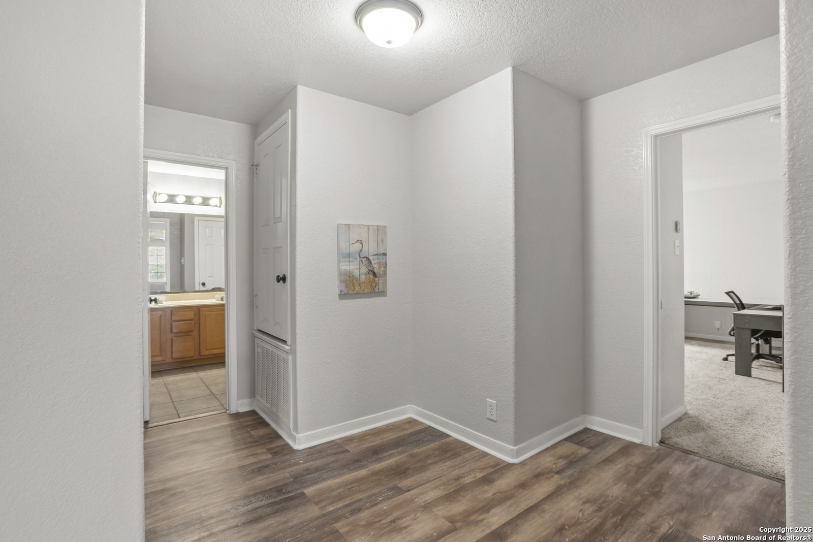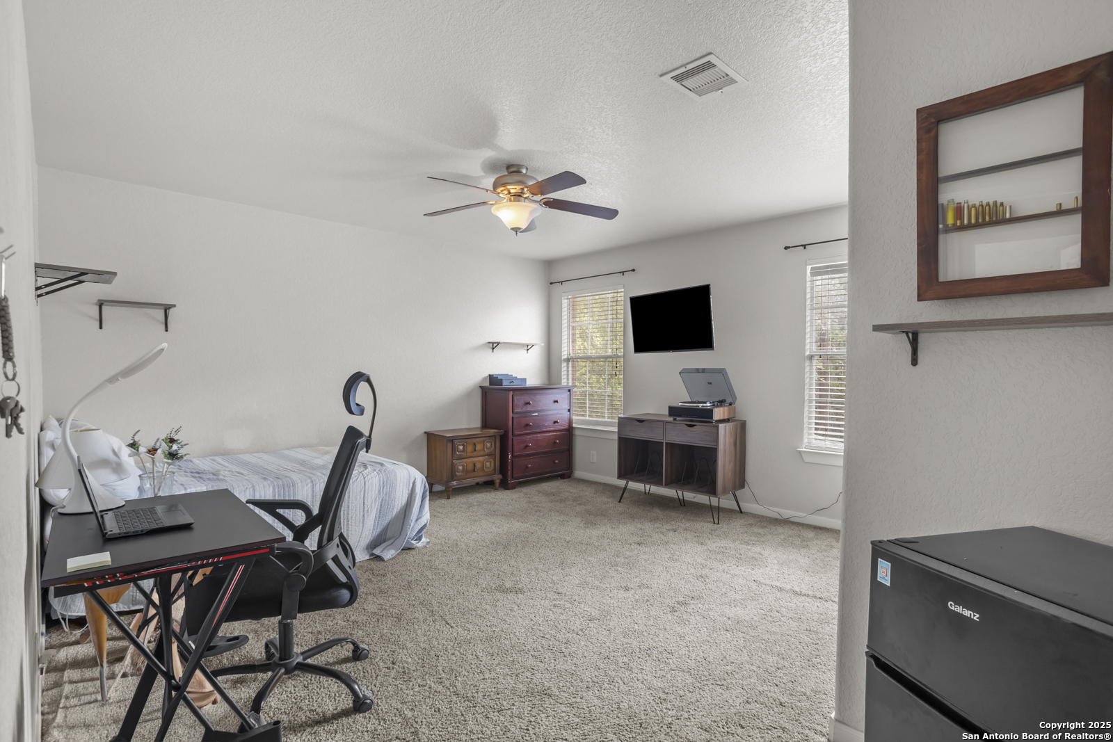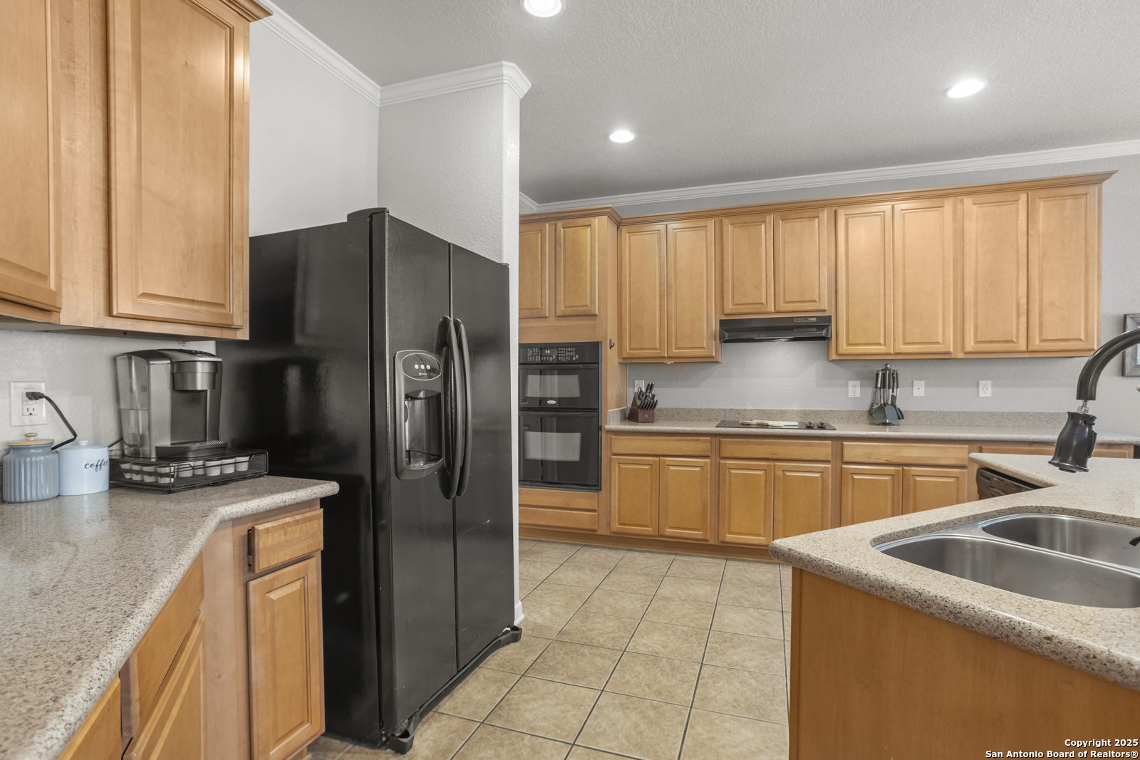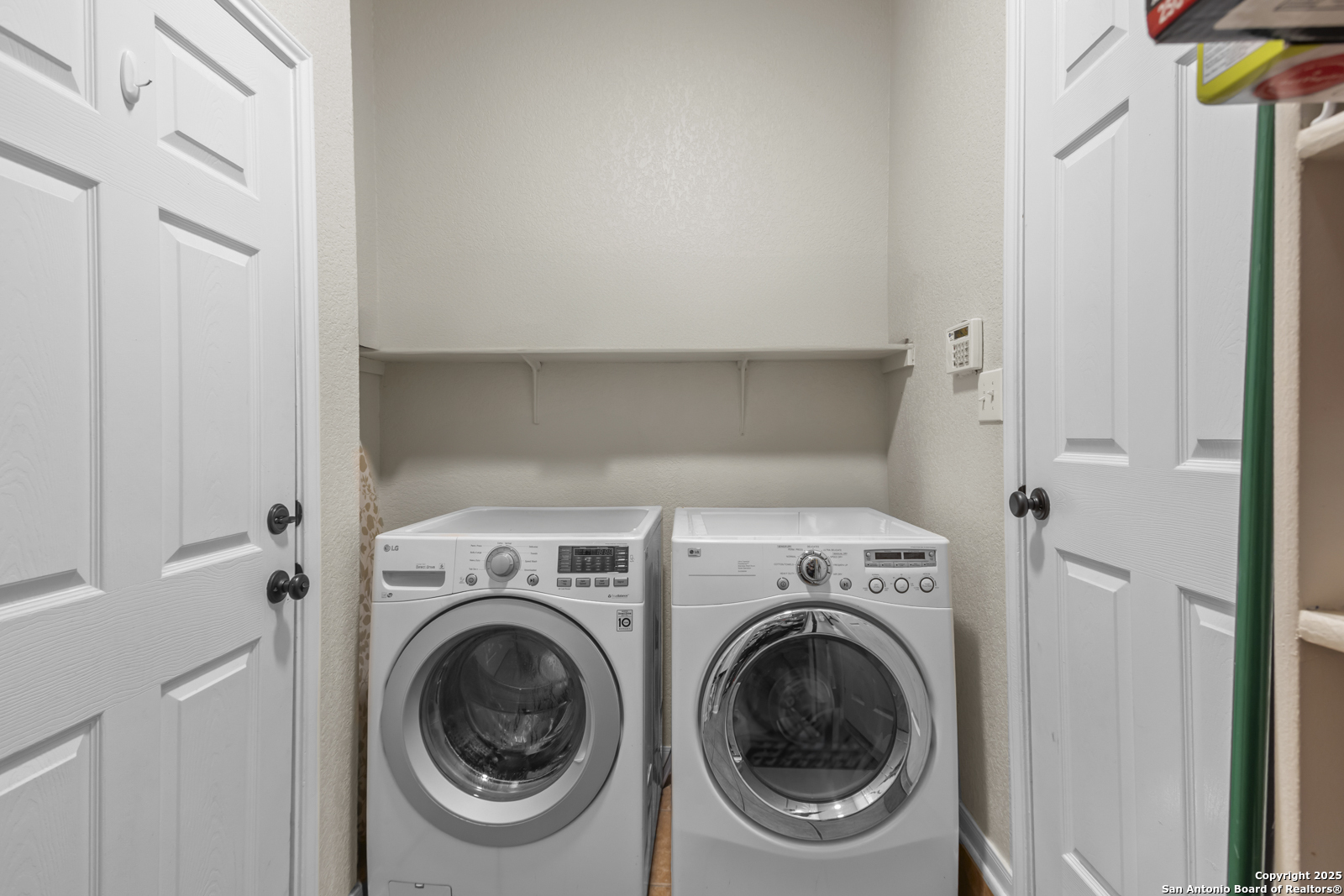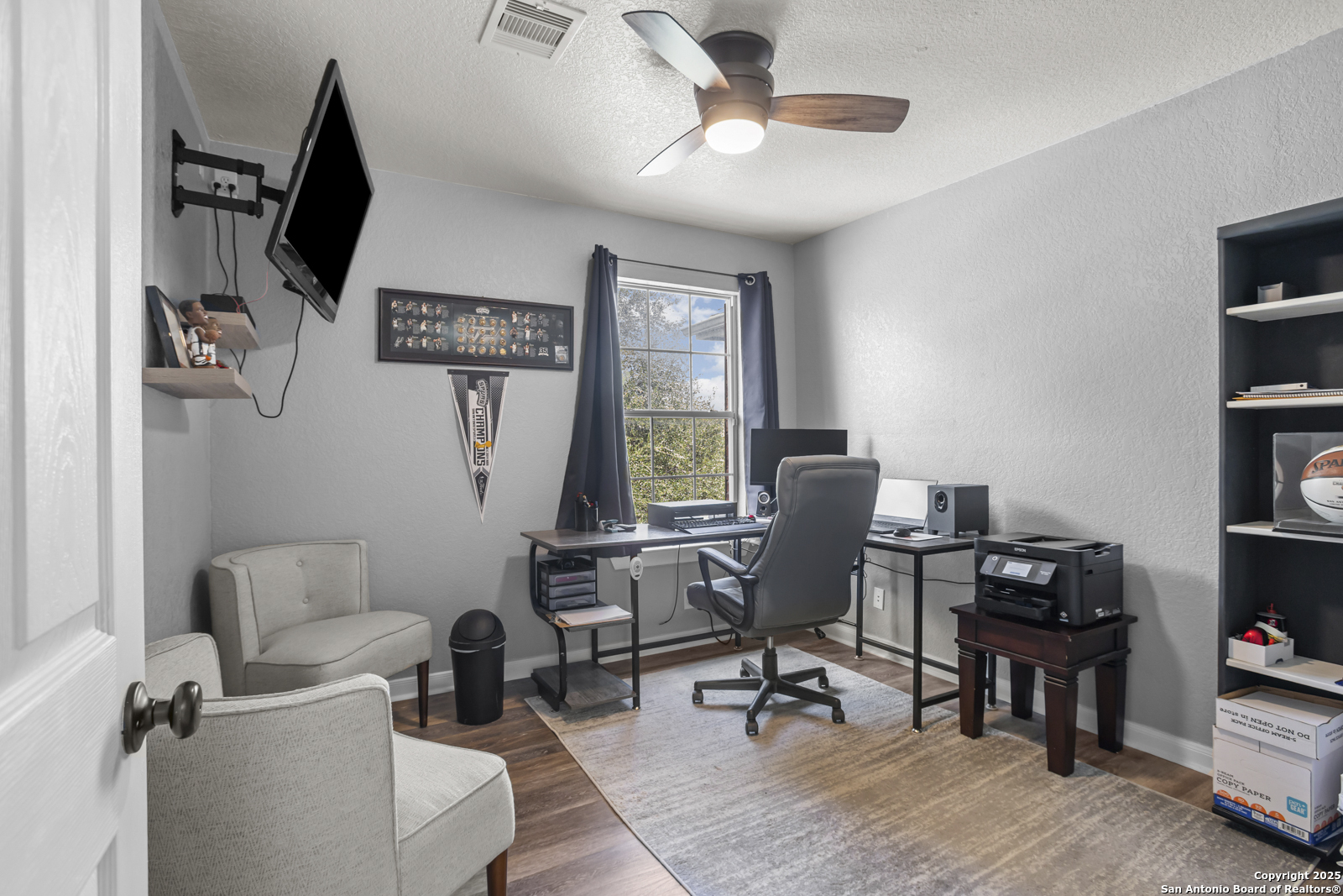 Welcome to 25127 Royal Land, a beautifully appointed 3,521 sq ft home offering 4 bedrooms and 2.5 baths in the sought-after Stage Run community of Northwest San Antonio. From the moment you step inside you're greeted by a welcoming entry and formal dining room that flow into a spacious open-concept living area where the kitchen, breakfast bar, and family room connect seamlessly, perfect for both everyday living and entertaining. The kitchen boasts quartz countertops, abundant cabinet space, and a layout designed for convenience and gatherings. The oversized master suite offers plenty of room for a sitting area and a spa-like bath with a double vanity, separate shower, and a luxurious Jacuzzi tub. Upstairs, a generous loft anchors the remaining bedrooms, providing an ideal spot for a game room, home office, or media space. Fresh paint, crown molding, and an updated half bath add a refined touch throughout. Outside, enjoy an extended covered patio with ceiling fans, built-in speakers, and wiring for a hot tub overlooking a large shaded backyard with mature trees and outdoor lighting. The home is plumbed for a water softener and features a 2020 HVAC replacement for peace of mind. Located less than a mile from Aue Elementary, major grocery stores, shopping, and theme parks, with community amenities including a soccer field, basketball court, trails, park, and dog park, this property offers the perfect balance of comfort, style, and convenience.