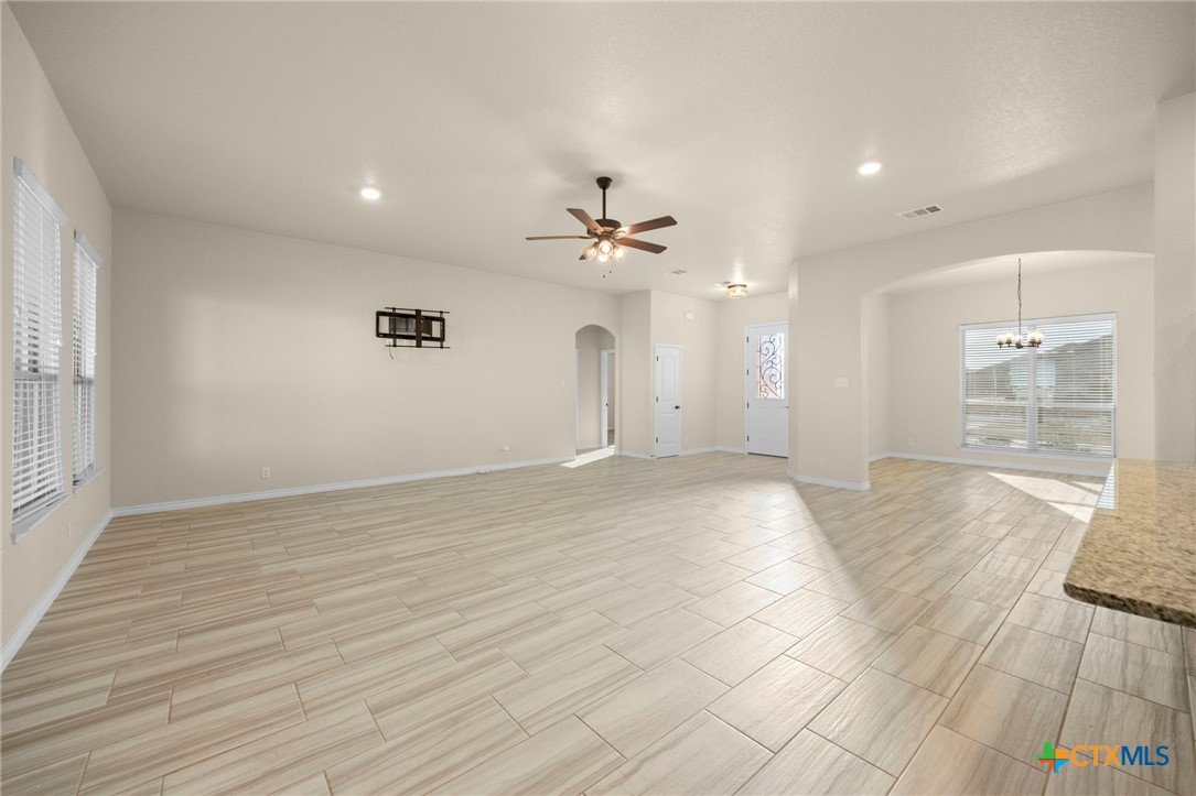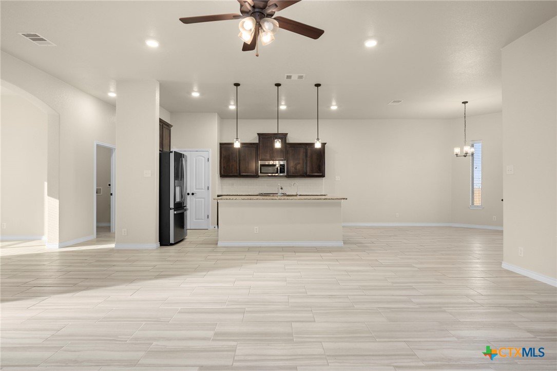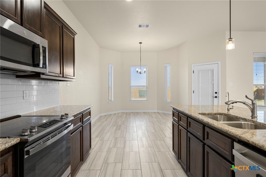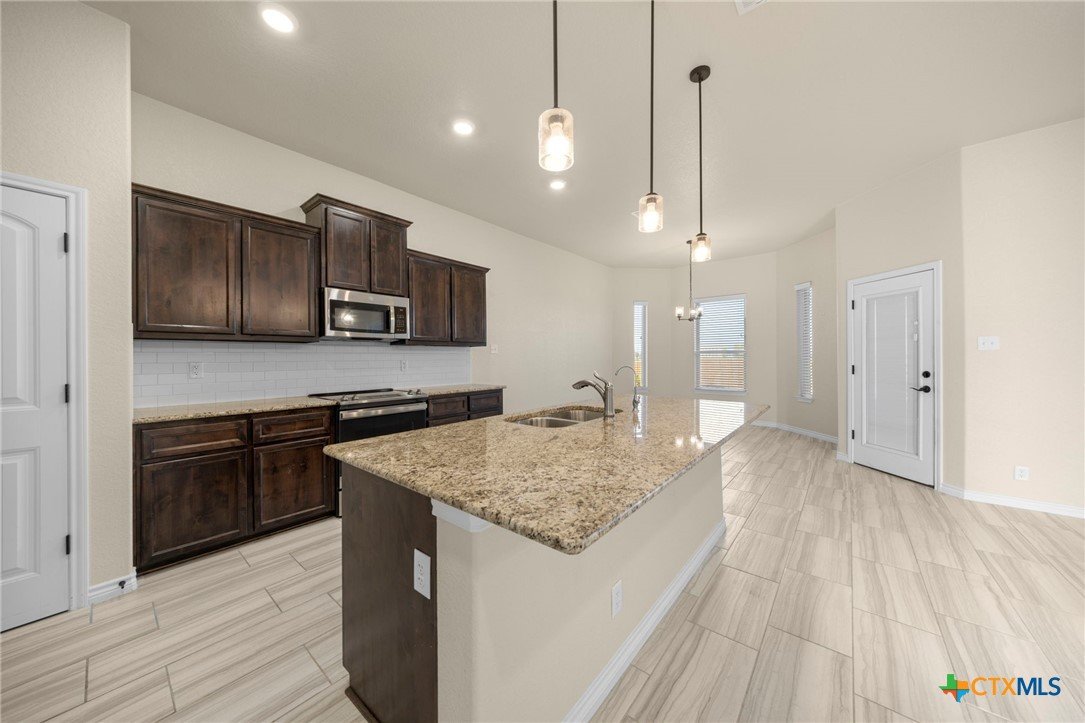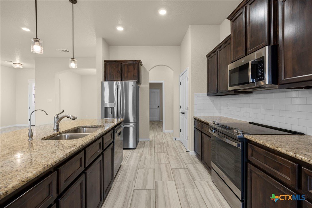 Welcome to Prairie View Estates, where comfort, space, and style team up in this beautifully designed 4-bedroom, 3-bath, single-story ranch built in 2022. With 2,602 sqft of thoughtfully planned living space, this home delivers the open-concept layout buyers beg for — soaring ceilings, recessed lighting, and expansive sightlines from the living room straight through the kitchen and dining areas. The kitchen is an entertainer’s dream, featuring granite countertops, a massive island, custom cabinetry, stainless steel appliances, pendant lighting, and a walk-in pantry. The split-floorplan offers privacy with a spacious primary suite boasting a double-vanity bathroom, separate shower, soaking tub, and a walk-through closet that feels like its own room. Three additional bedrooms give flexibility for guests, kids, office spaces — you name it. Secondary bathrooms continue the upscale vibe with modern tile, updated fixtures, and clean finishes. A dedicated laundry room with cabinet storage and a water softener adds everyday convenience. Situated on a 0.33-acre lot, the backyard is wide-open and ready for gatherings, playtime, pets, or the future pool you’ve been dreaming about. The covered patio expands your living space outdoors, and the 3-car garage gives you plenty of room for storage or hobbies. Located in the desirable Killeen ISD with quick access to shopping, dining, and Fort Cavazos, this home offers the perfect blend of peace and practicality. This one’s move-in ready and built to impress — come see how good “newer construction” can really look.