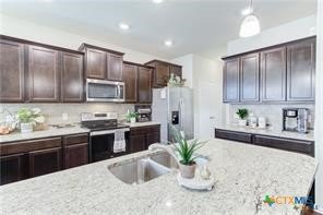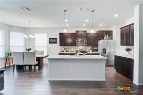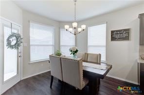 Upon entering the foyer, twisted iron balusters adorn the staircase that leads to a spacious loft living area. Four sizable bedrooms, three storage closets, and one full bathroom with a double vanity and shower tub combo are privately tucked away upstairs. Two upstairs bedrooms have walk-in closets. Family room, kitchen and dining area offer open concept floor plan. The large galley kitchen has beautiful granite countertops that tastefully contrast the cabinetry and stainless steel appliances. The large eat-in island, a generously sized pantry and ample cabinet storage create a space that’s stylish and functional. The downstairs master suite offers a sitting area, large walk-in closet, oversized shower, linen closet and upgraded 35" tall double vanity. Entertain guest on the covered back porch or take a dip in your 21' foot vinyl above ground pool! The front yard has irrigation with rain sensor. This home offers smart home capabilities and reduced energy costs through solar panels. Luxury, updated vinyl plank flooring. The garage has a wall-mounted AC and insulated walls to keep it cool! Property conveniently located to Baylor Scott & White Hospital, VA Hospital and Hwy 95 to IH-35, Lowe’s, and HEB shopping center. Academy ISD schools, Alta Vista neighborhood is located across the street from Lions Junction Family Water Park, trails, and playscape! Alta Vista is a welcoming community with no HOA, a playground.