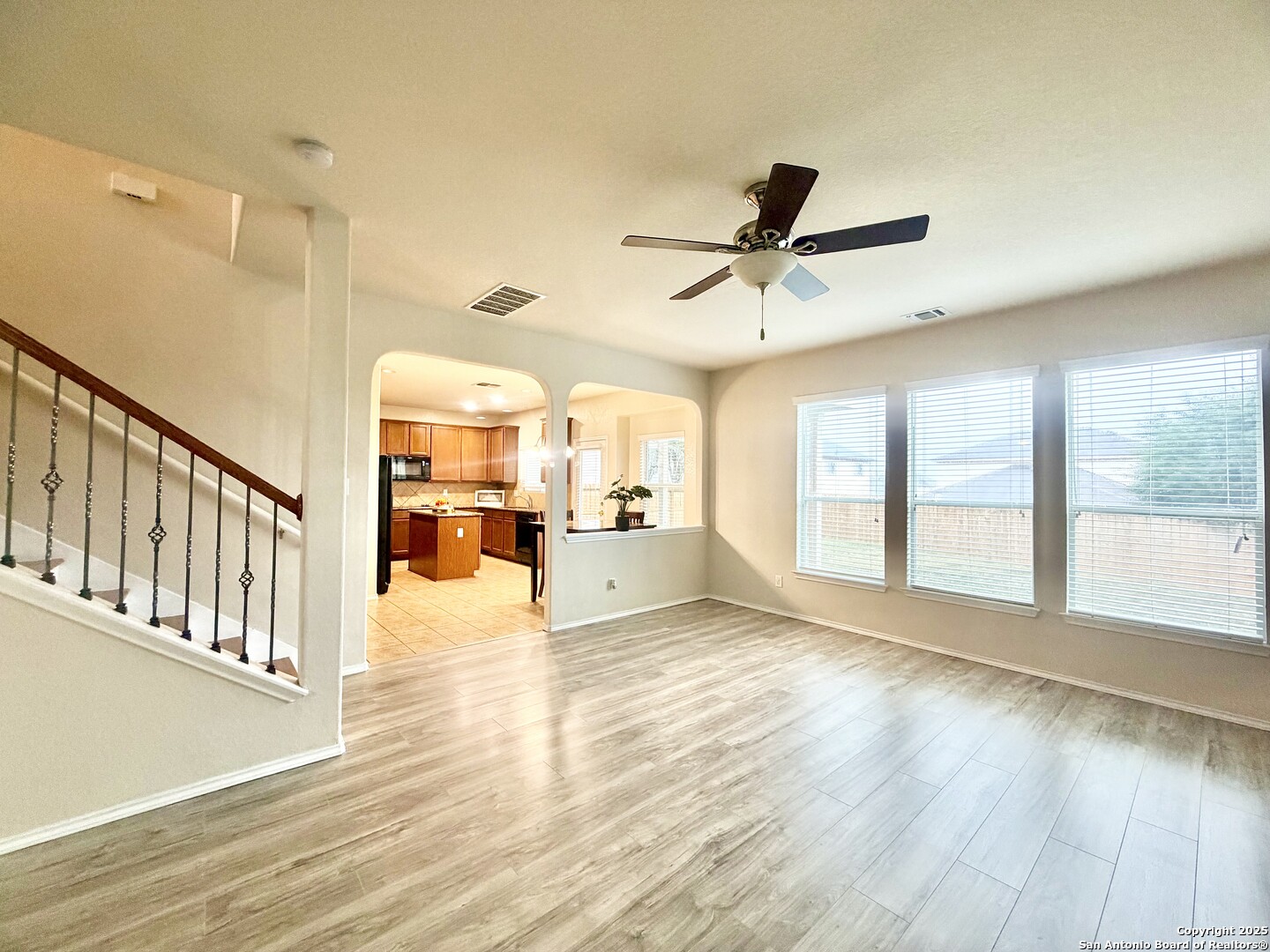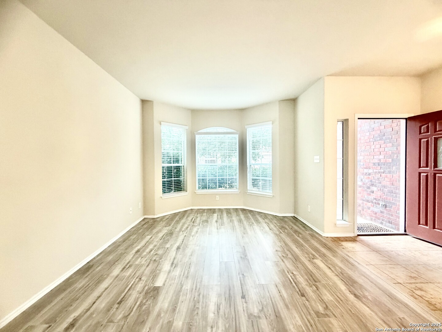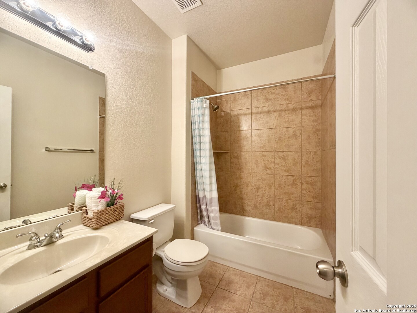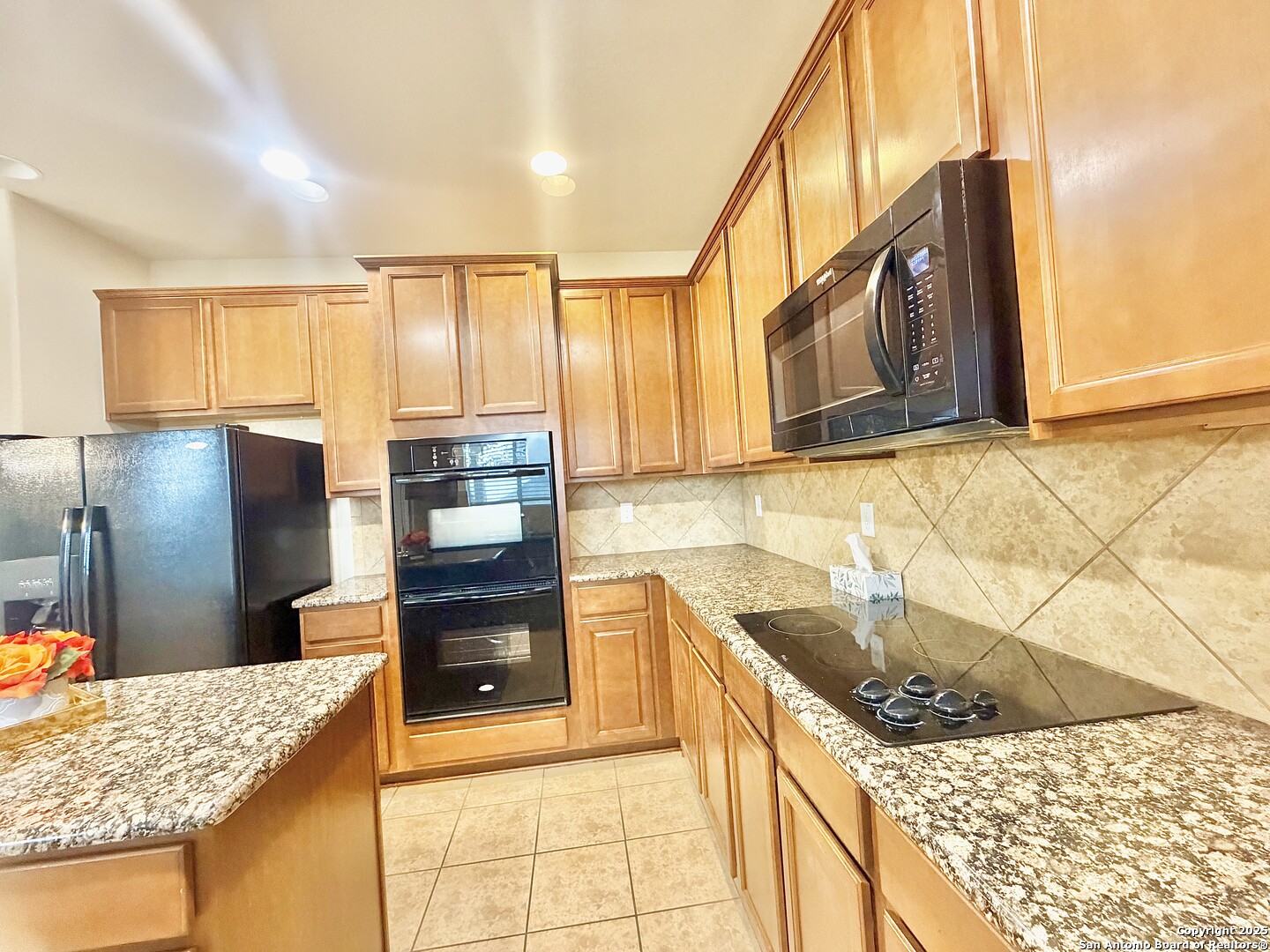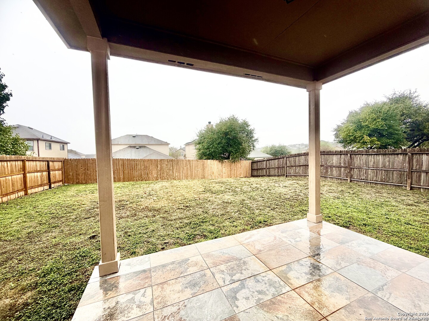 Welcome home to this beautifully appointed 4-bedroom, 3-bath residence offering 2,874 sq ft of thoughtfully designed living space with NO CARPET throughout. The open-concept floor plan is filled with natural light and features a spacious living area and chef's kitchen with granite countertops, oversized island, walk-in pantry, and double ovens-perfect for entertaining. A guest suite with full bath on the main level adds flexibility. Upstairs, the expansive primary suite showcases tray ceilings, bay windows, a walk-in closet, and a spa-like bath with dual vanities, garden tub, and separate shower. Enjoy outdoor living on the covered patio overlooking a lush backyard. Situated on a private cul-de-sac in highly rated Northeast ISD, just minutes to Northwoods Shopping Center, H-E-B, Hwy 281, and only 2 minutes from the JW Marriott Resort.
