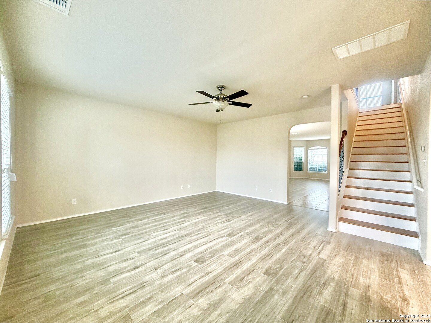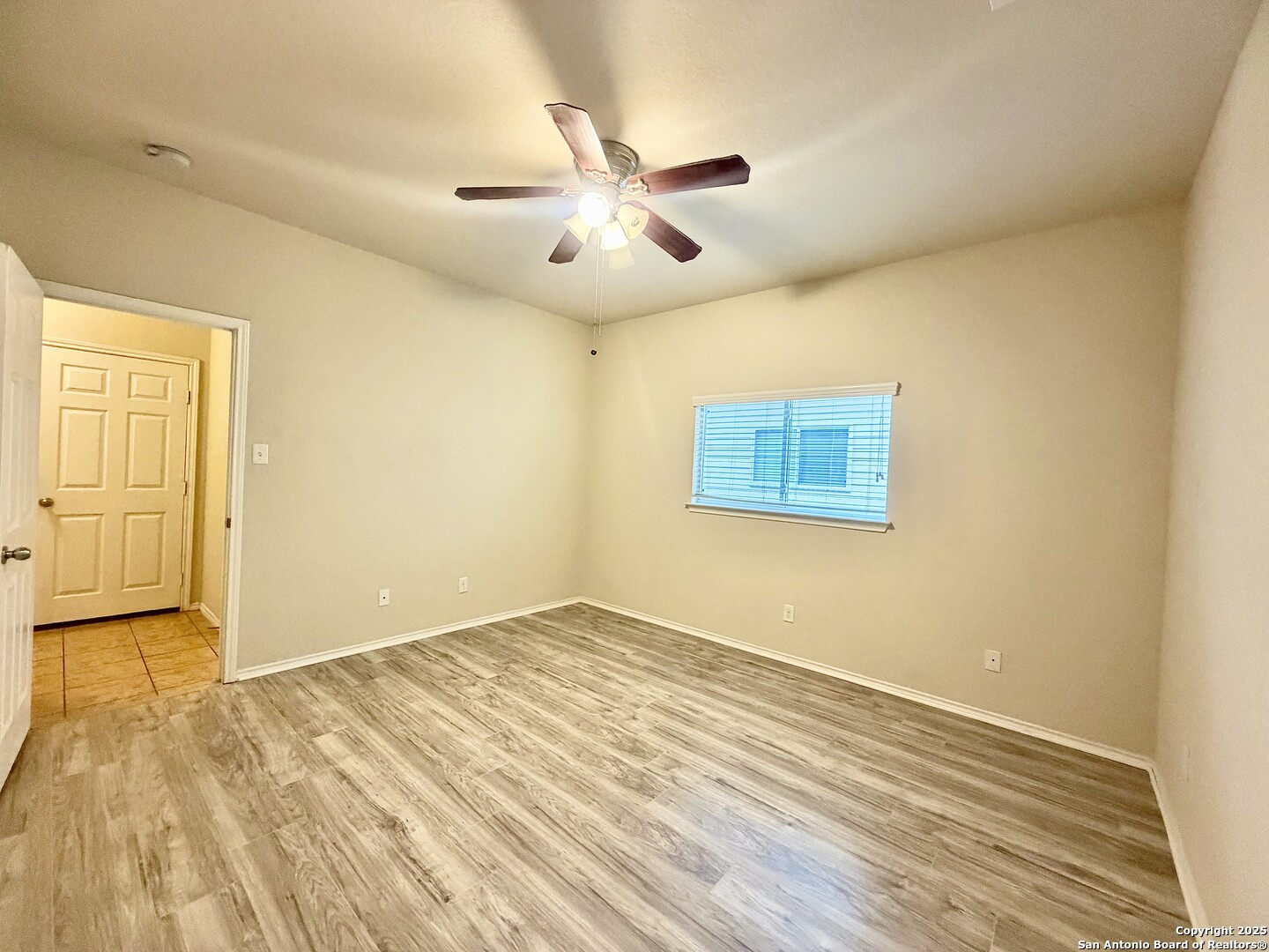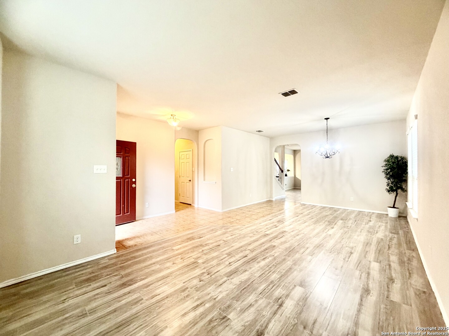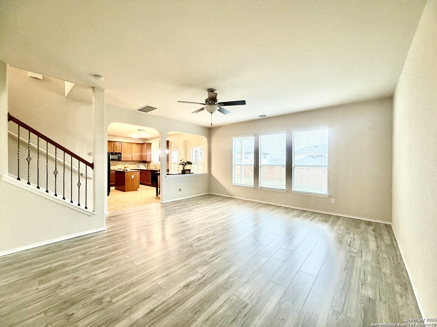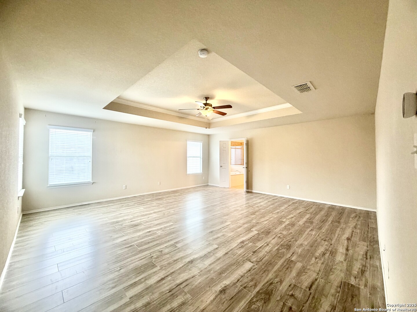 Welcome home to this beautifully appointed 4-bedroom, 3-bath residence offering 2,874 sq ft of thoughtfully designed living space with NO CARPET throughout. The open-concept floor plan is filled with natural light and features a spacious living area and chef's kitchen with granite countertops, oversized island, walk-in pantry, and double ovens-perfect for entertaining. A guest suite with full bath on the main level adds flexibility. Upstairs, the expansive primary suite showcases tray ceilings, bay windows, a walk-in closet, and a spa-like bath with dual vanities, garden tub, and separate shower. Enjoy outdoor living on the covered patio overlooking a lush backyard. Situated on a private cul-de-sac in highly rated Northeast ISD, just minutes to Northwoods Shopping Center, H-E-B, Hwy 281, and only 2 minutes from the JW Marriott Resort.