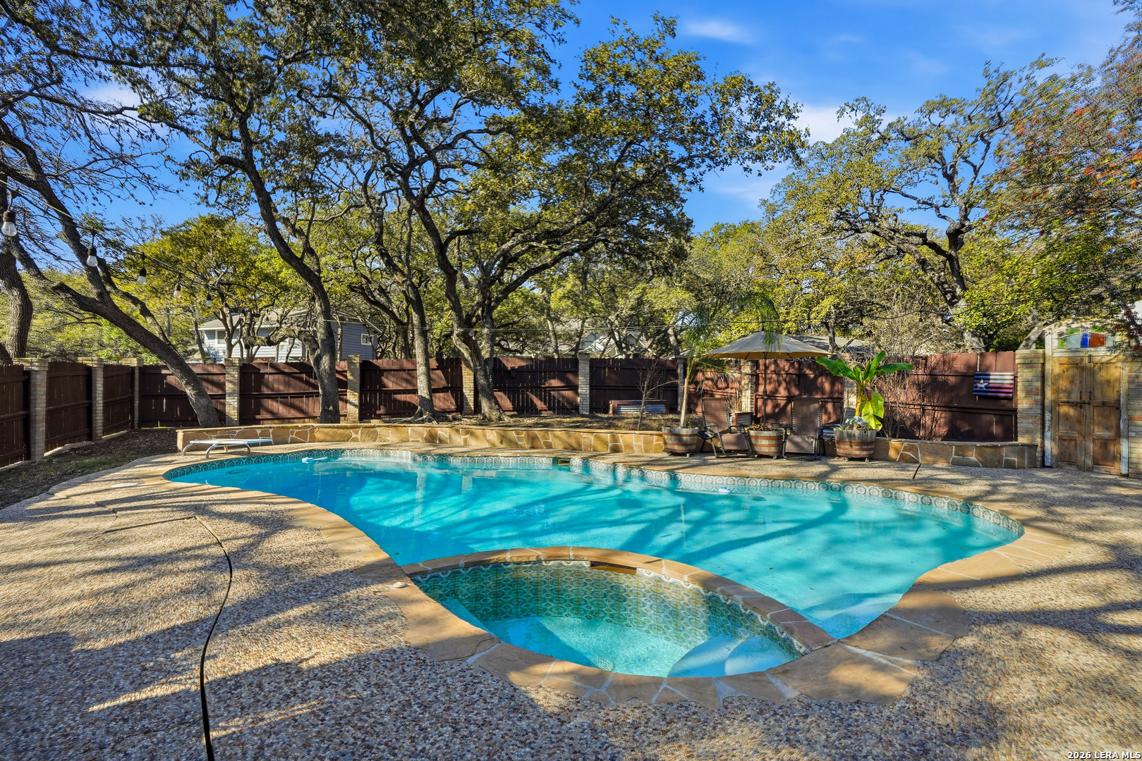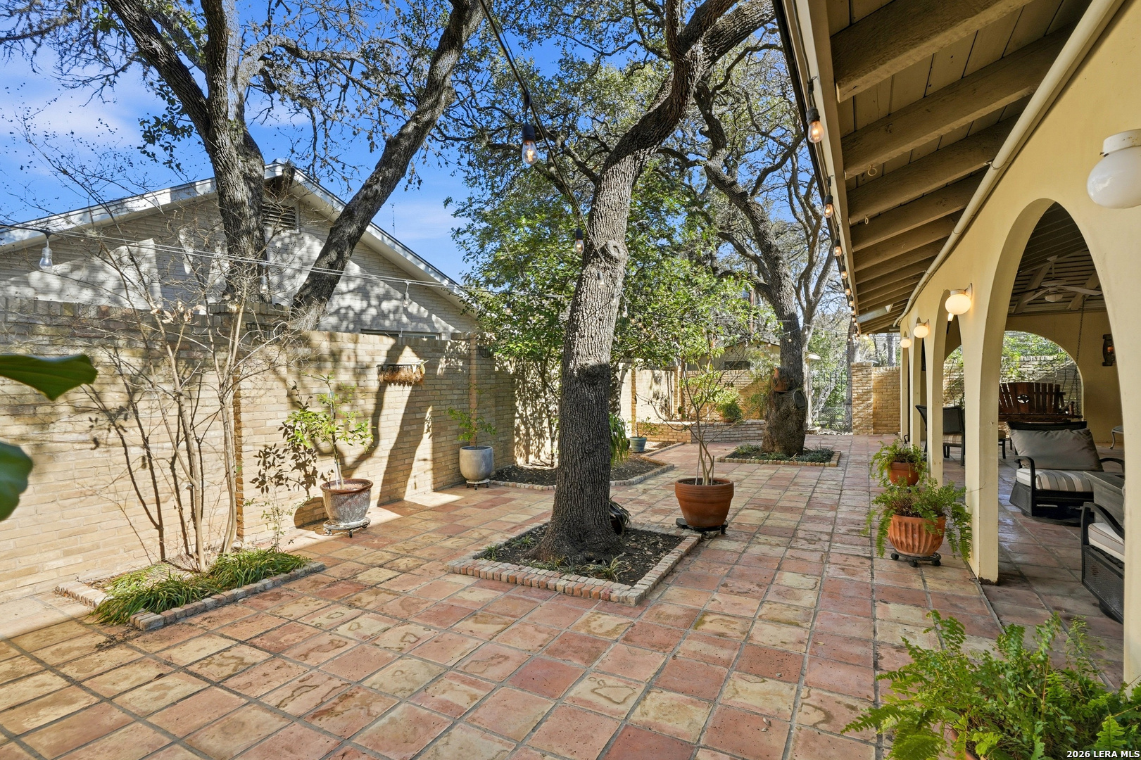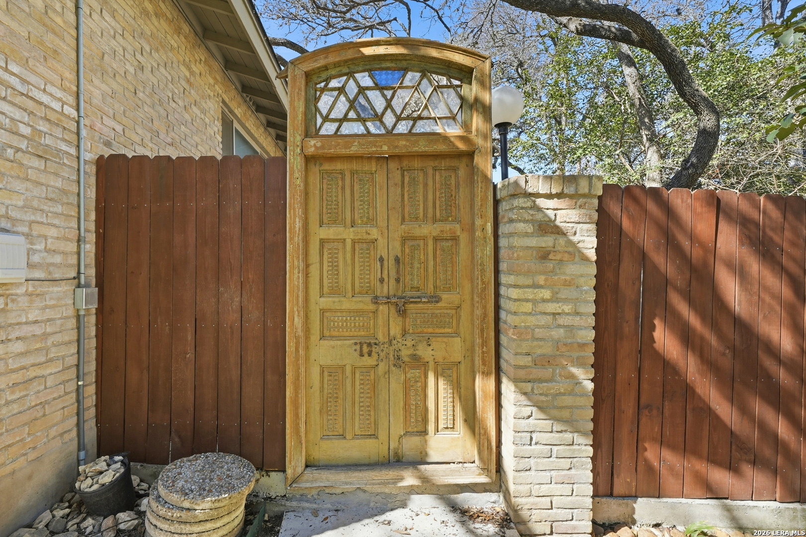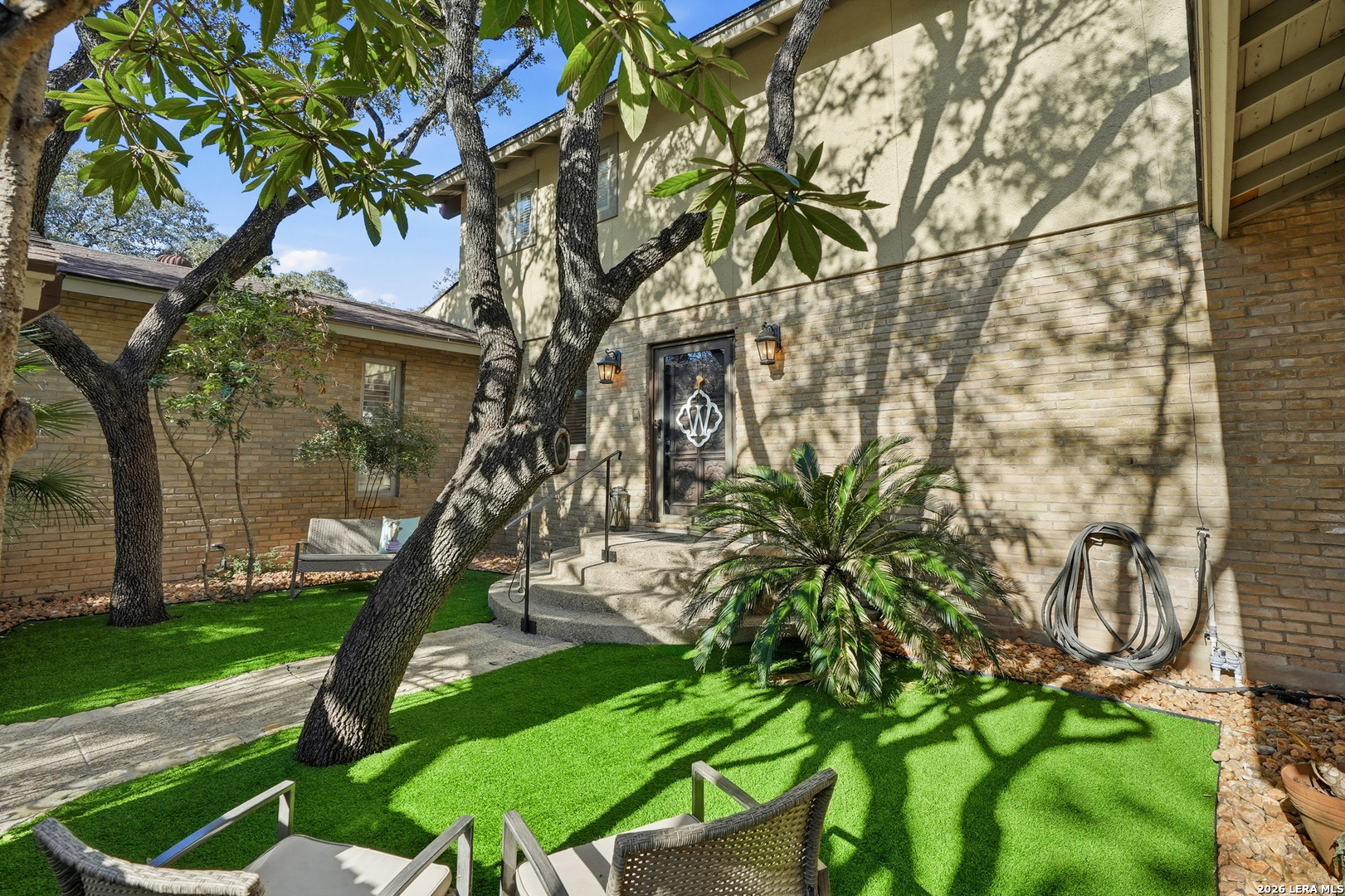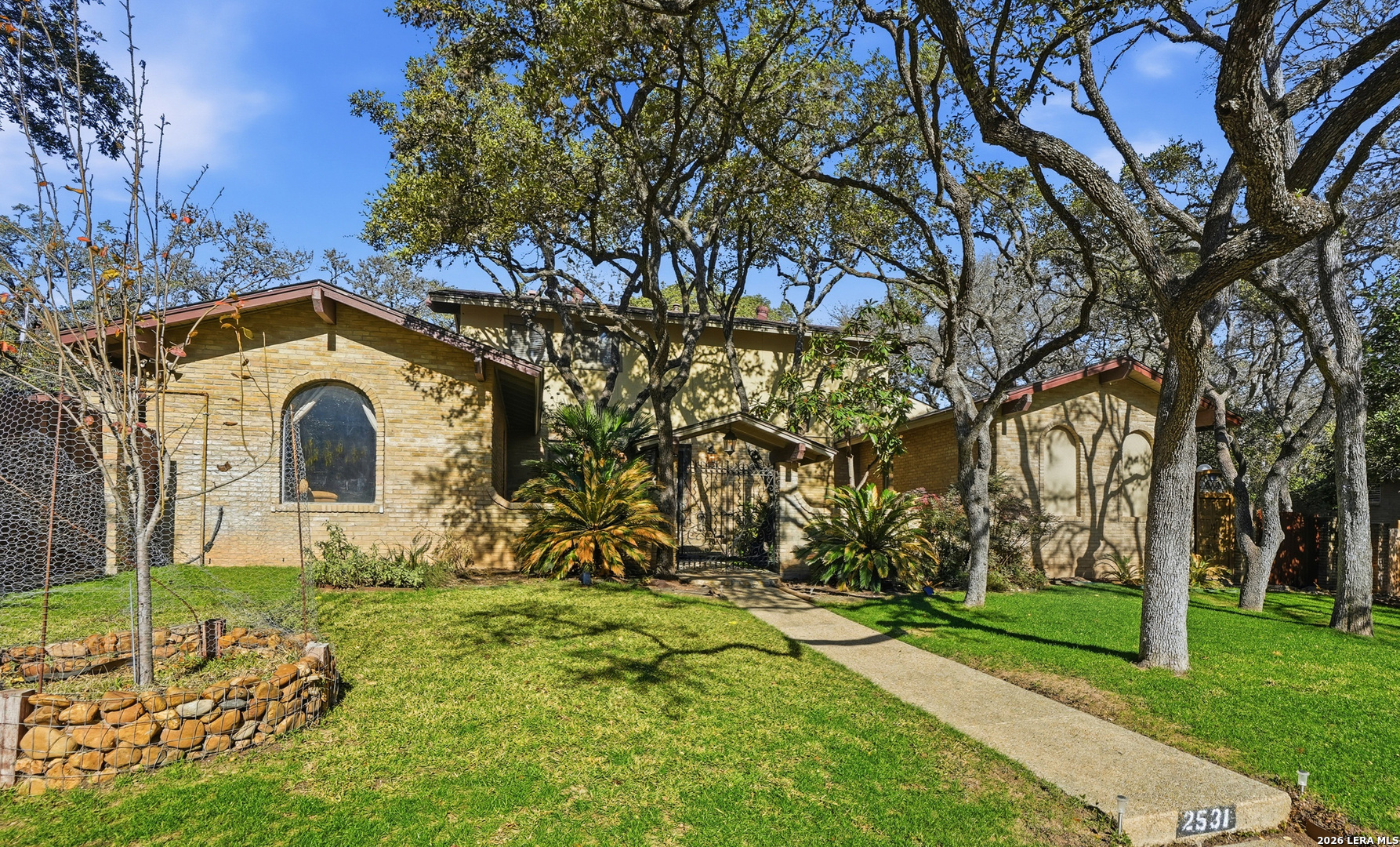 AMAZING OPPORTUNITY to own this Spanish-style retreat with a HACIENDA FLAIR! The grand courtyard entrance is just the beginning... You'll impress your guests with the outdoor living spaces--relaxing DIVING POOL/SPA, multiple seating areas, and the PRIVATE 1100sf PATIO/COURTYARD, complete with antique doors from Mexico! Imagine the parties! Location is UNBEATABLE--so convenient to Med Ctr/USAA/UTSA/Downtown--yet nestled in a quiet, low-traffic neighborhood! Inside you'll find a VIBRANT, ECLECTIC MIX of traditional and modern styles, from the bright family room with REAL HARDWOOD FLOORS to the sleek modern kitchen (completely redone in 2018), to the traditional WOODBURNING FIREPLACE and saltillo tile floors... Large primary bedroom downstairs connects to the office/craftroom/nursery, plus 3 bedrooms and 2 full baths upstairs. BEAUTIFULLY UPDATED KITCHEN includes 38' feet of granite countertops, high-end stainless appliances (refrigerator stays), and TONS OF CABINET SPACE*** 5 burner gas stove and built in microwave/convection oven*** Updates include: New pool pump & filter 2025***New water softener and on-demand water heater in 2024***New garage doors 2025***ALL APPLIANCES can remain, including washer and gas dryer***Utility shed with electric***Huge .4 acre corner lot covered in mature oaks***Full sprinkler system***TONS of storage inside and out***Multiple fruit trees***You'll practically need a map to navigate around the grounds, but YOU'LL LOVE DISCOVERING THE TREASURES FOUND HERE! Homes like this don't come on the market often!!