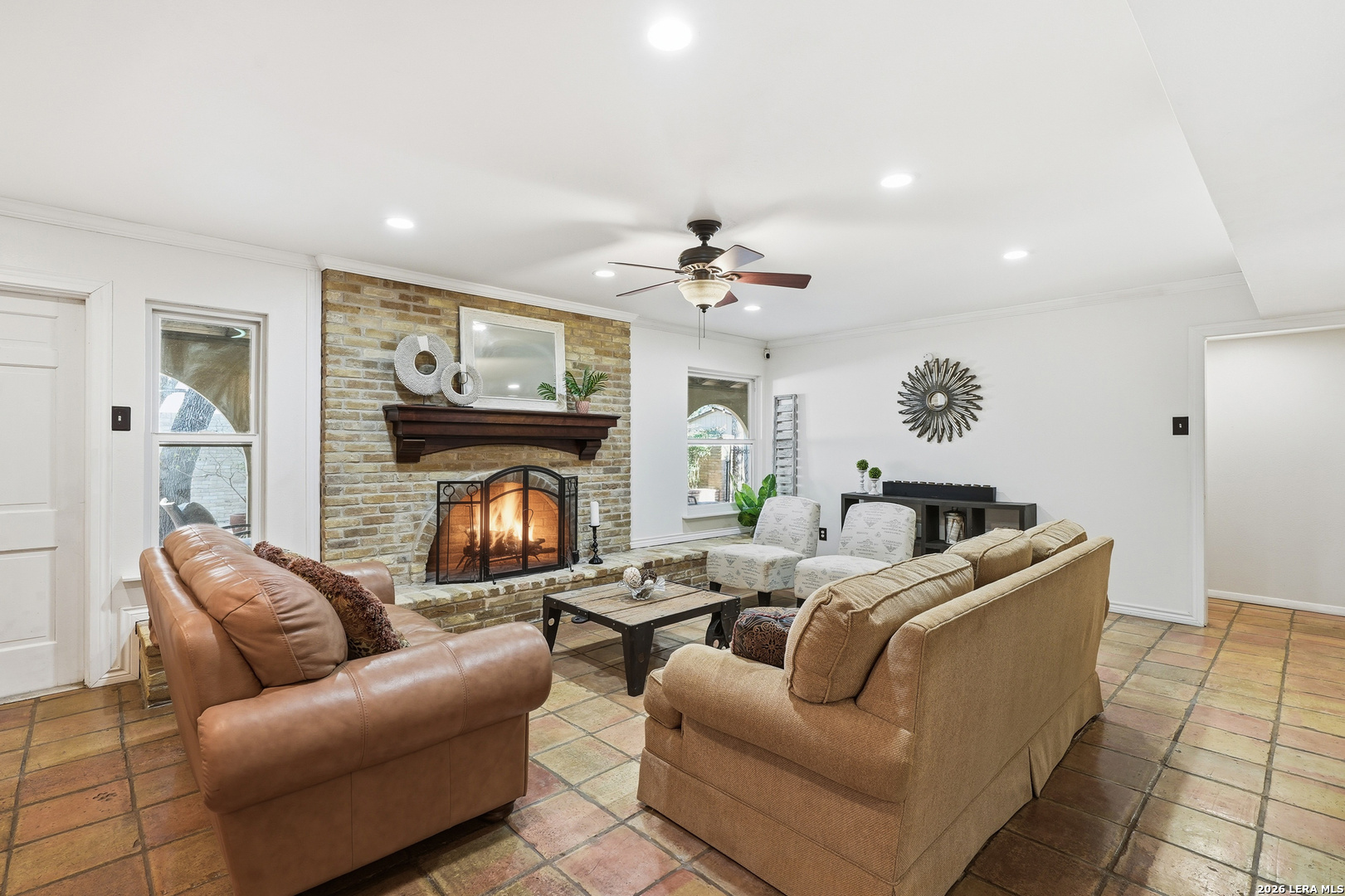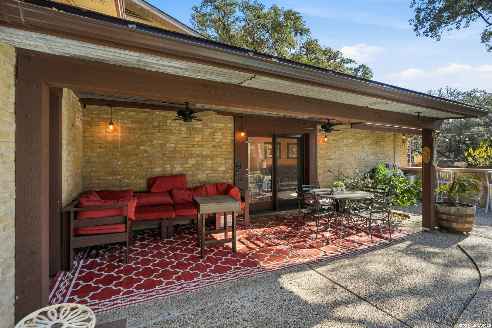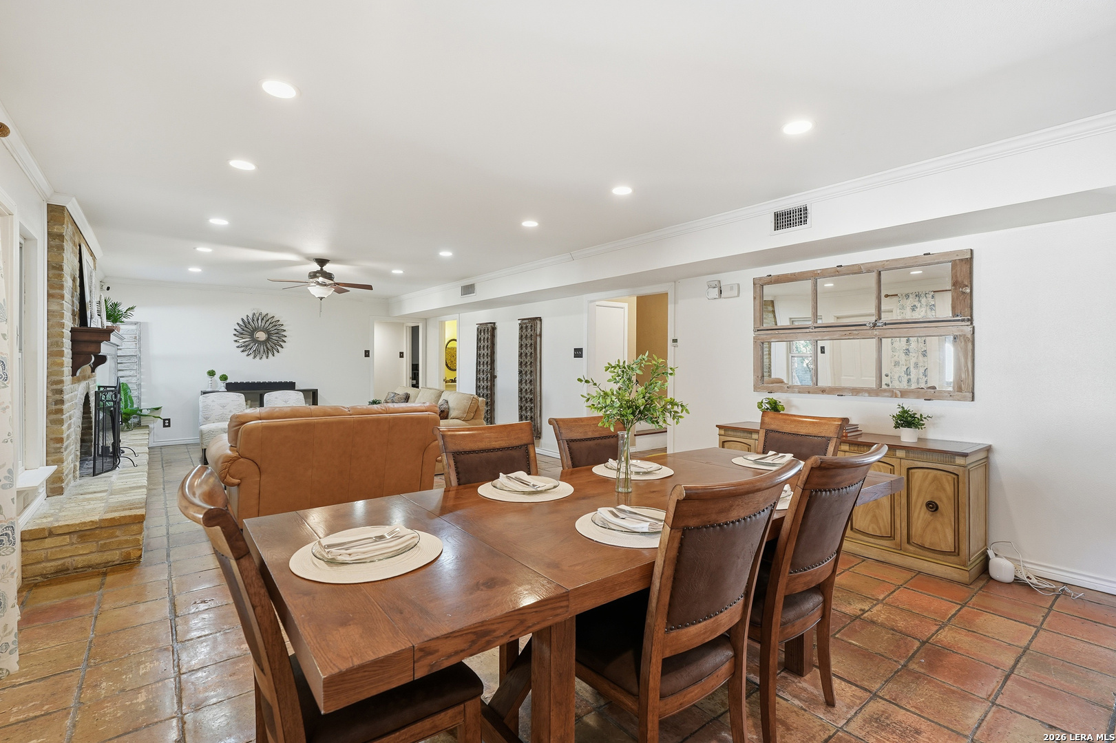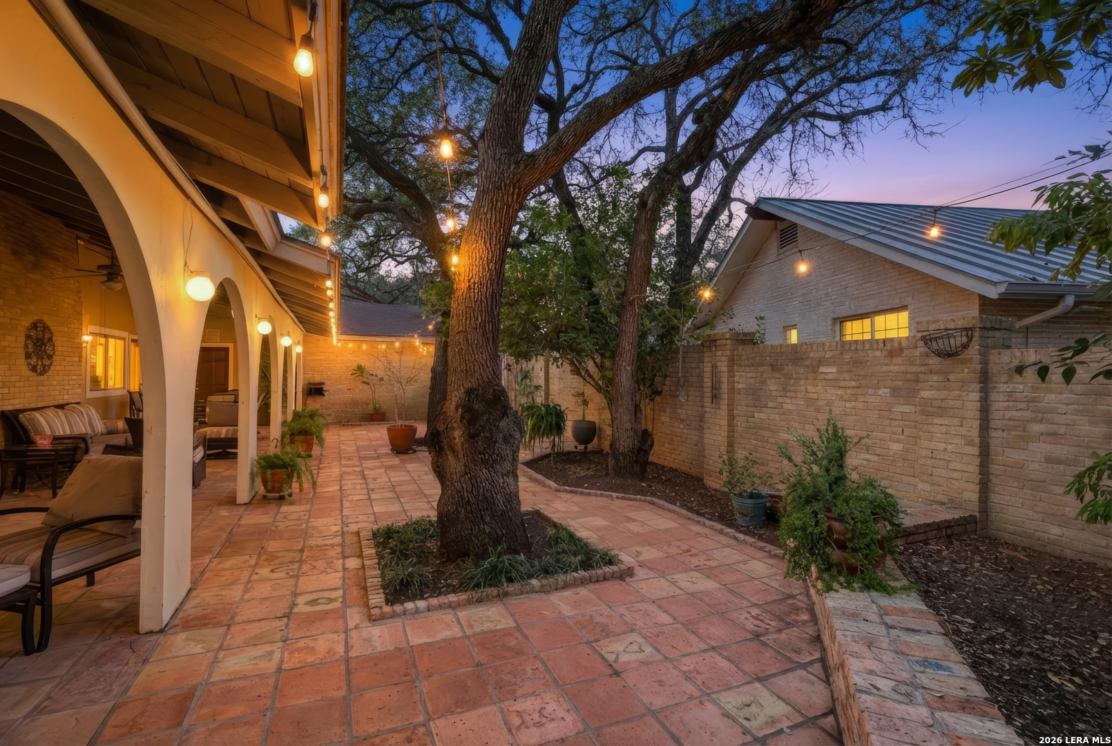 AMAZING OPPORTUNITY to own this Spanish-style retreat with a HACIENDA FLAIR! The grand courtyard entrance is just the beginning... You'll impress your guests with the outdoor living spaces--relaxing DIVING POOL/SPA, multiple seating areas, and the PRIVATE 1100sf PATIO/COURTYARD, complete with antique doors from Mexico! Imagine the parties! Location is UNBEATABLE--so convenient to Med Ctr/USAA/UTSA/Downtown--yet nestled in a quiet, low-traffic neighborhood! Inside you'll find a VIBRANT, ECLECTIC MIX of traditional and modern styles, from the bright family room with REAL HARDWOOD FLOORS to the sleek modern kitchen (completely redone in 2018), to the traditional WOODBURNING FIREPLACE and saltillo tile floors... Large primary bedroom downstairs connects to the office/craftroom/nursery, plus 3 bedrooms and 2 full baths upstairs. BEAUTIFULLY UPDATED KITCHEN includes 38' feet of granite countertops, high-end stainless appliances (refrigerator stays), and TONS OF CABINET SPACE*** 5 burner gas stove and built in microwave/convection oven*** Updates include: New pool pump & filter 2025***New water softener and on-demand water heater in 2024***New garage doors 2025***ALL APPLIANCES can remain, including washer and gas dryer***Utility shed with electric***Huge .4 acre corner lot covered in mature oaks***Full sprinkler system***TONS of storage inside and out***Multiple fruit trees***You'll practically need a map to navigate around the grounds, but YOU'LL LOVE DISCOVERING THE TREASURES FOUND HERE! Homes like this don't come on the market often!!