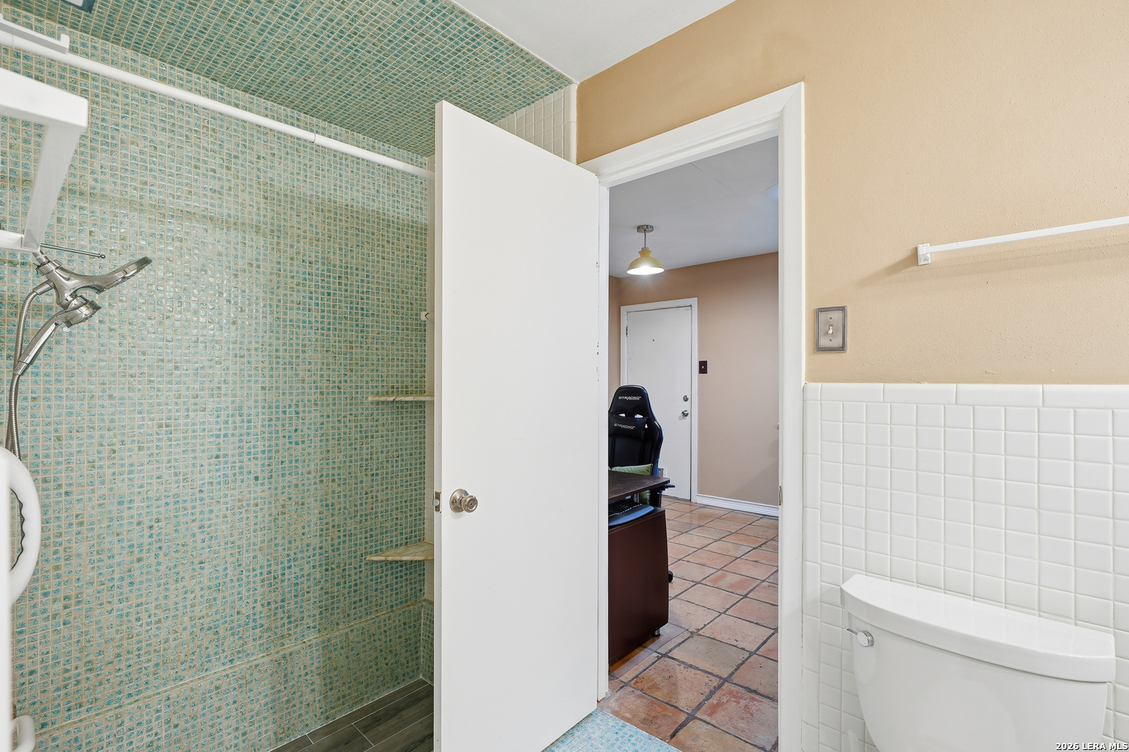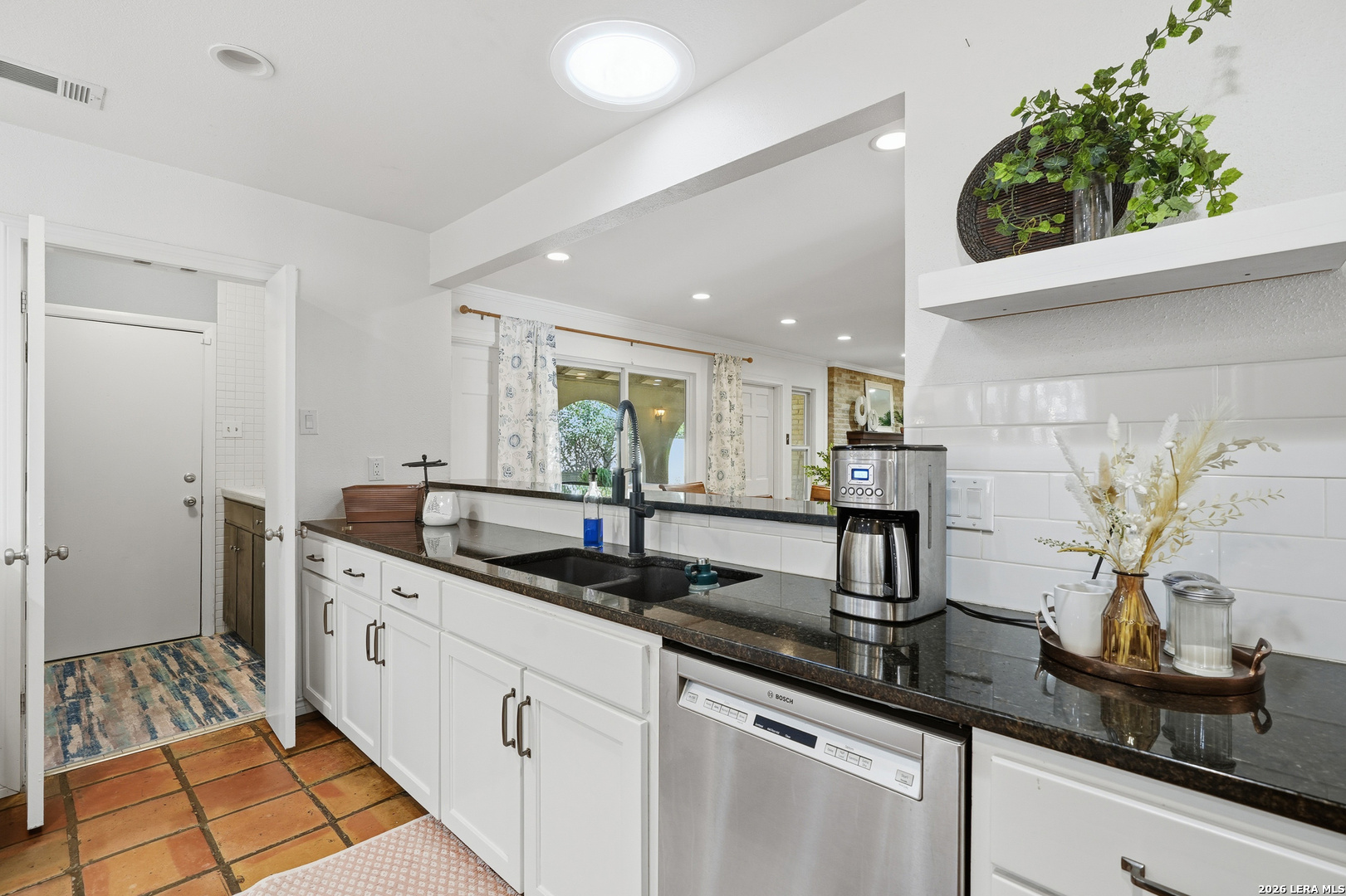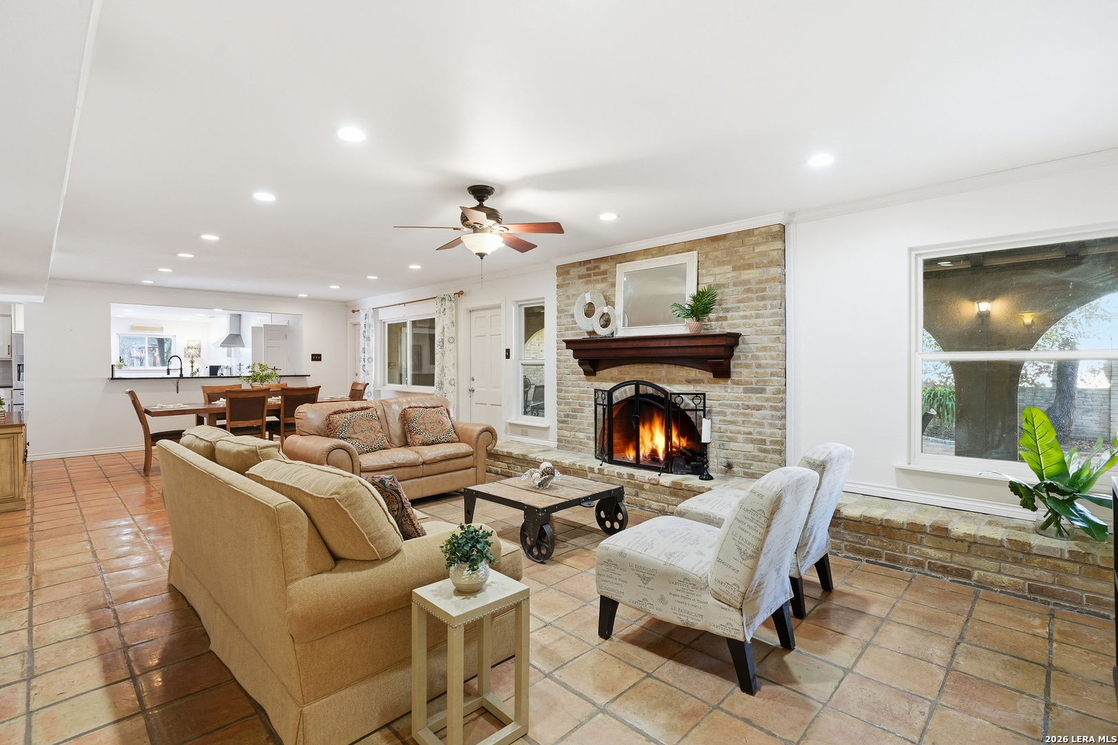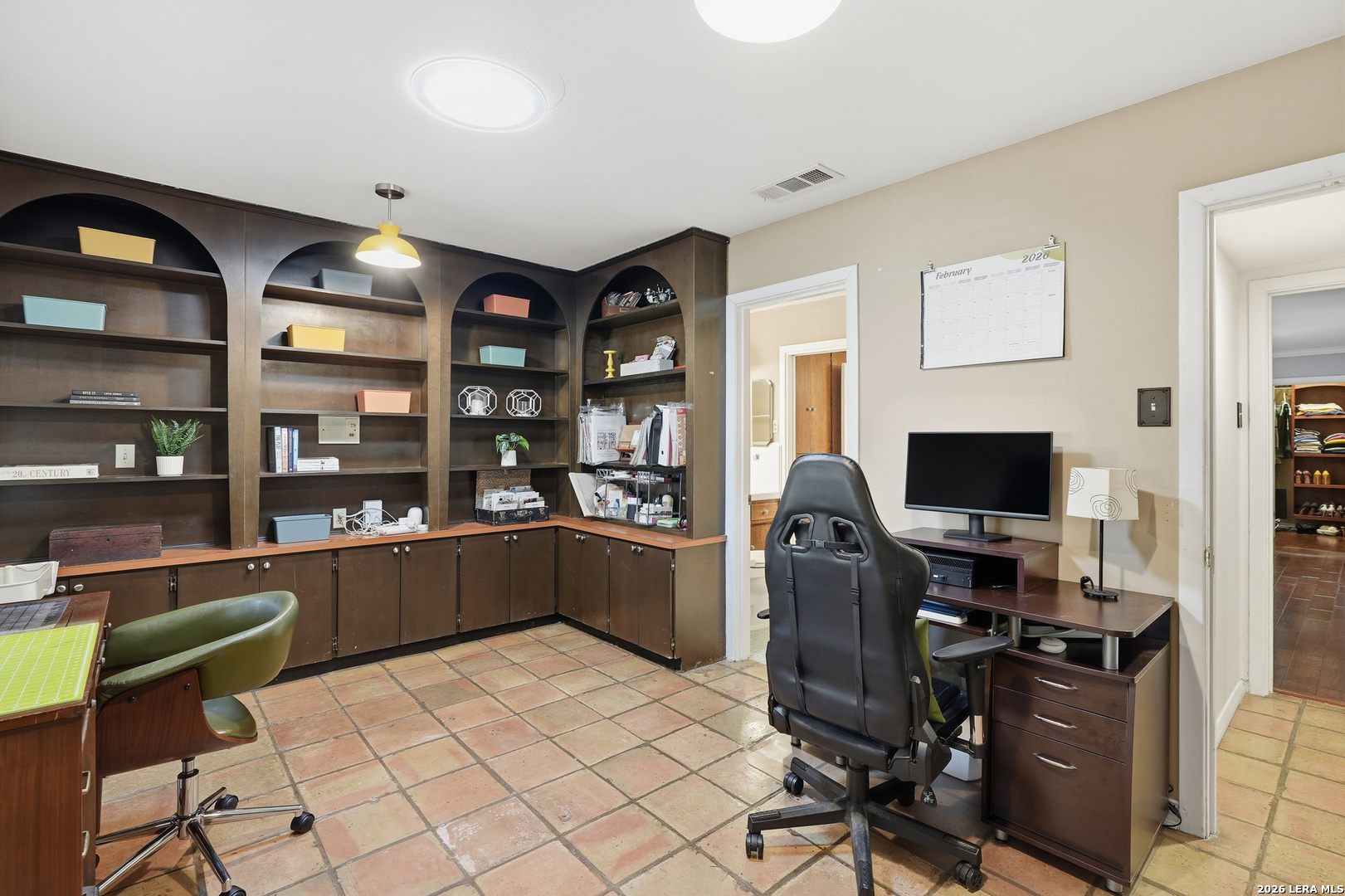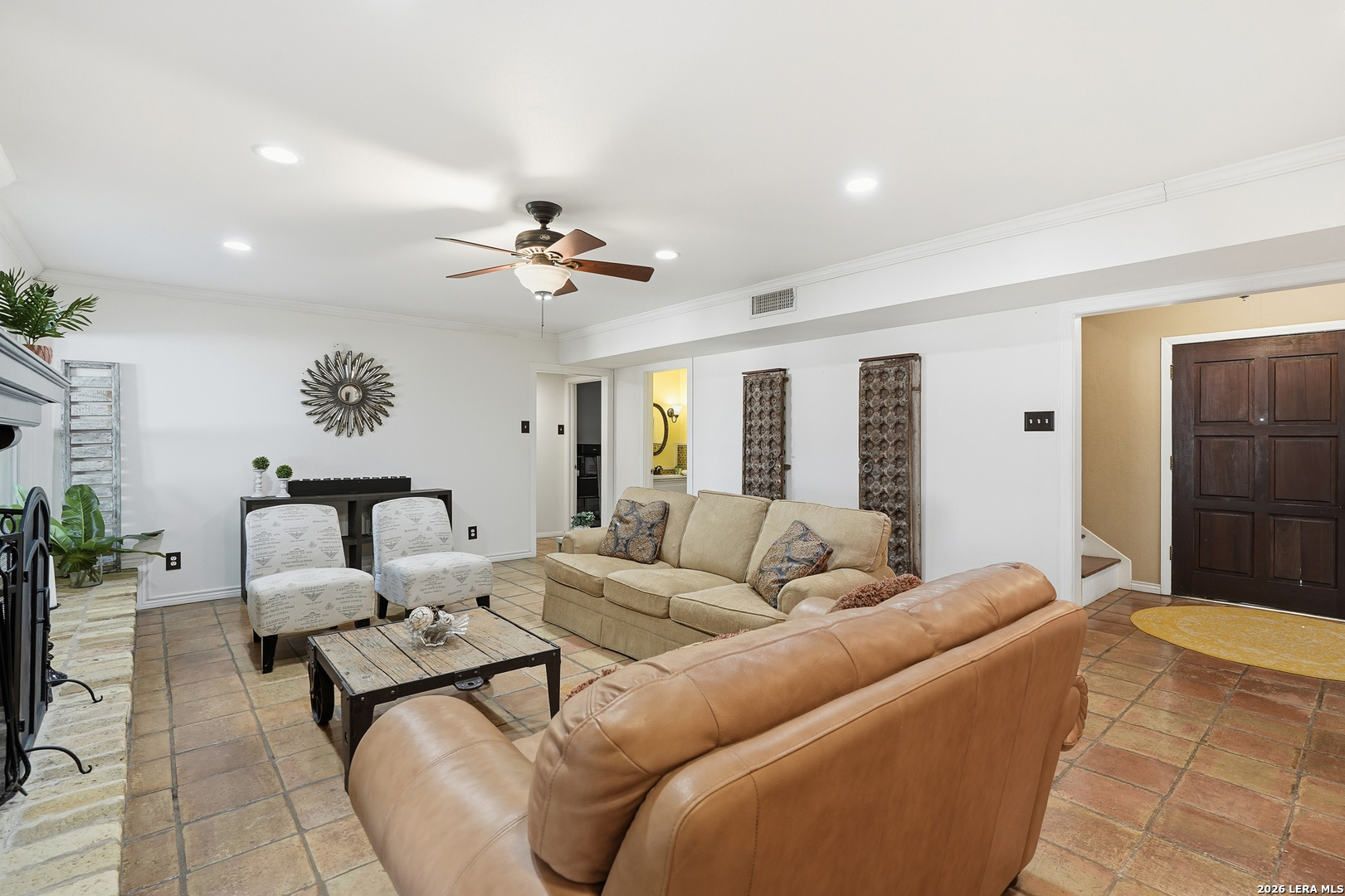 AMAZING OPPORTUNITY to own this Spanish-style retreat with a HACIENDA FLAIR! The grand courtyard entrance is just the beginning... You'll impress your guests with the outdoor living spaces--relaxing DIVING POOL/SPA, multiple seating areas, and the PRIVATE 1100sf PATIO/COURTYARD, complete with antique doors from Mexico! Imagine the parties! Location is UNBEATABLE--so convenient to Med Ctr/USAA/UTSA/Downtown--yet nestled in a quiet, low-traffic neighborhood! Inside you'll find a VIBRANT, ECLECTIC MIX of traditional and modern styles, from the bright family room with REAL HARDWOOD FLOORS to the sleek modern kitchen (completely redone in 2018), to the traditional WOODBURNING FIREPLACE and saltillo tile floors... Large primary bedroom downstairs connects to the office/craftroom/nursery, plus 3 bedrooms and 2 full baths upstairs. BEAUTIFULLY UPDATED KITCHEN includes 38' feet of granite countertops, high-end stainless appliances (refrigerator stays), and TONS OF CABINET SPACE*** 5 burner gas stove and built in microwave/convection oven*** Updates include: New pool pump & filter 2025***New water softener and on-demand water heater in 2024***New garage doors 2025***ALL APPLIANCES can remain, including washer and gas dryer***Utility shed with electric***Huge .4 acre corner lot covered in mature oaks***Full sprinkler system***TONS of storage inside and out***Multiple fruit trees***You'll practically need a map to navigate around the grounds, but YOU'LL LOVE DISCOVERING THE TREASURES FOUND HERE! Homes like this don't come on the market often!!
