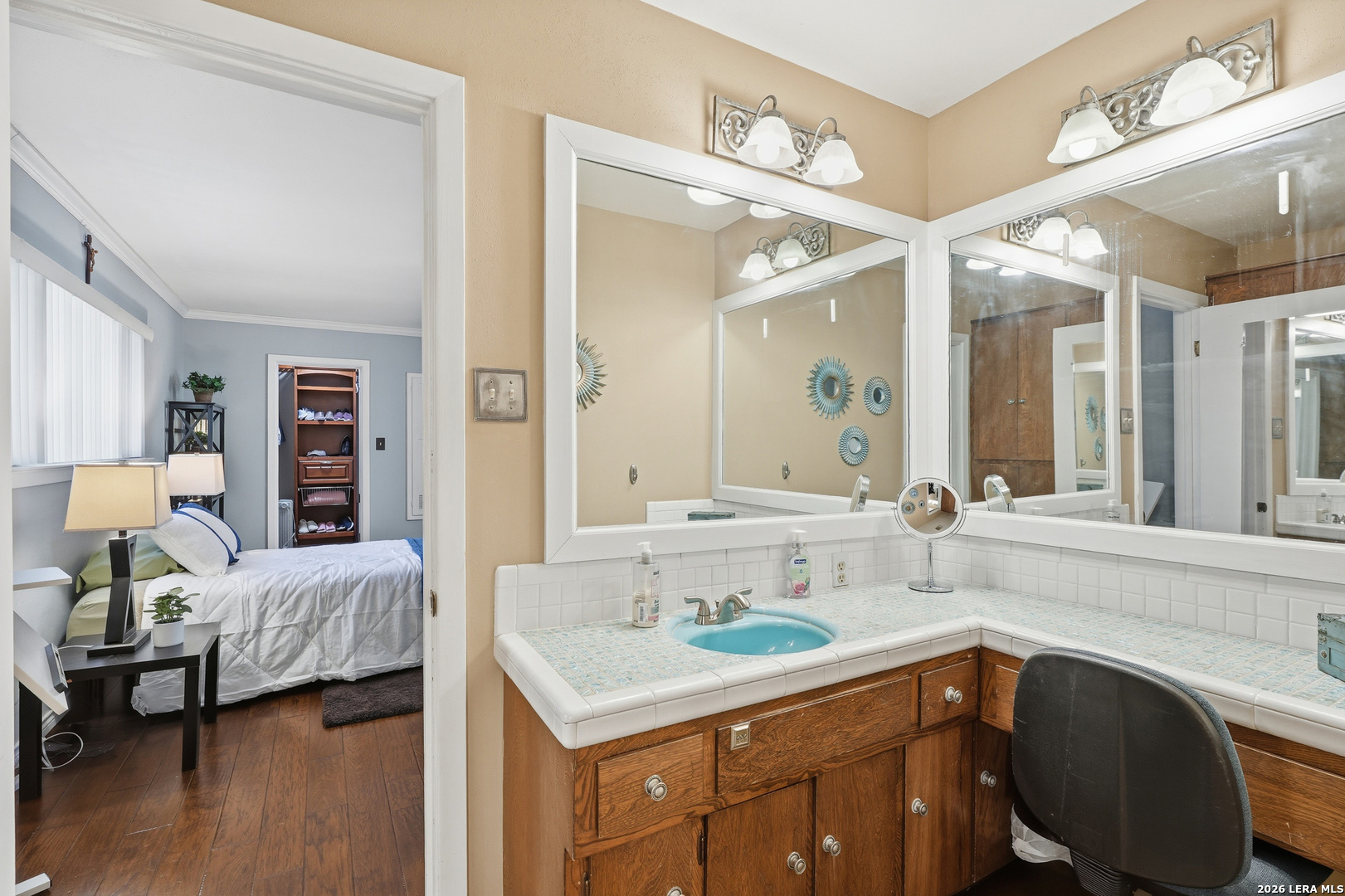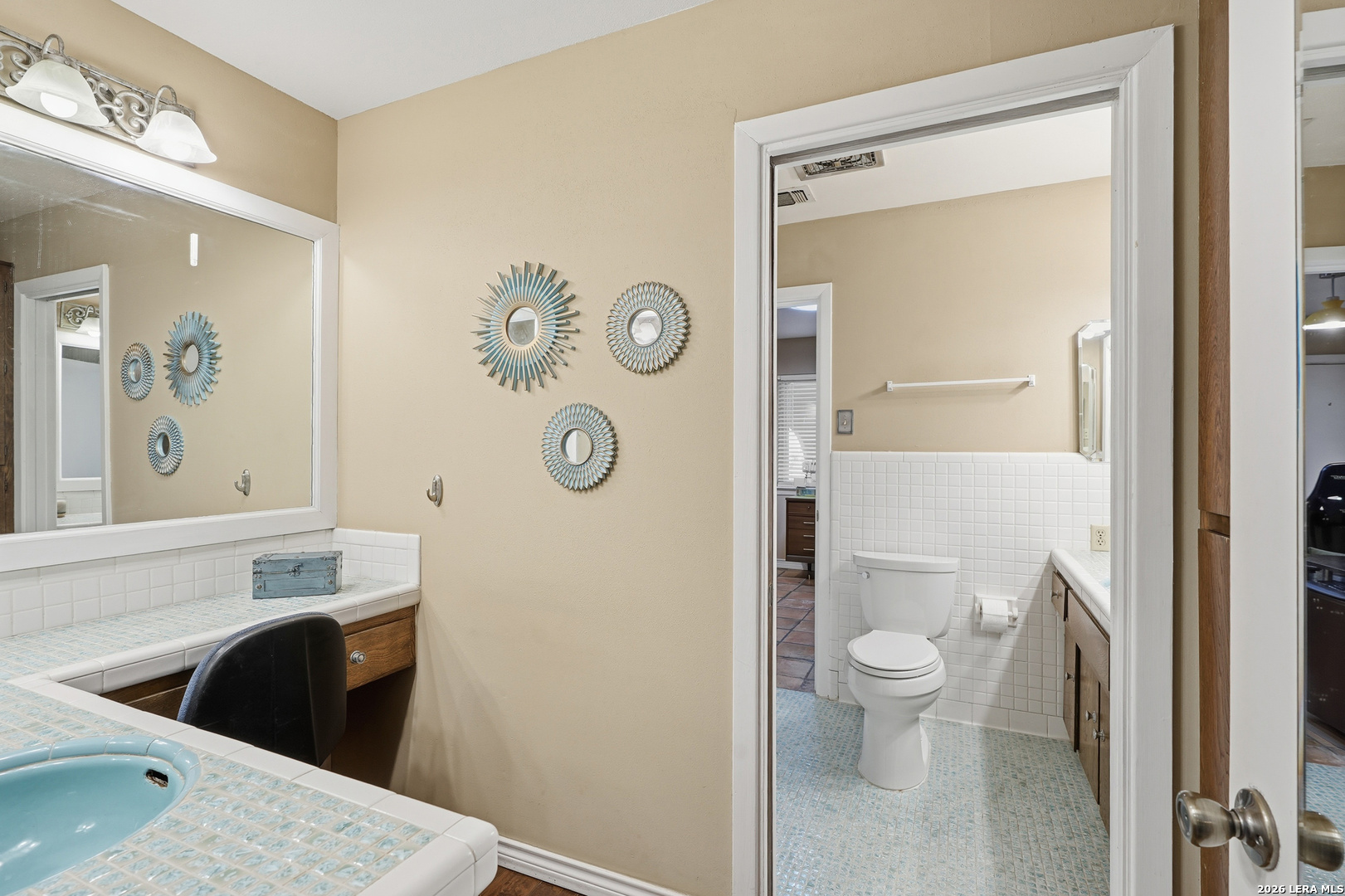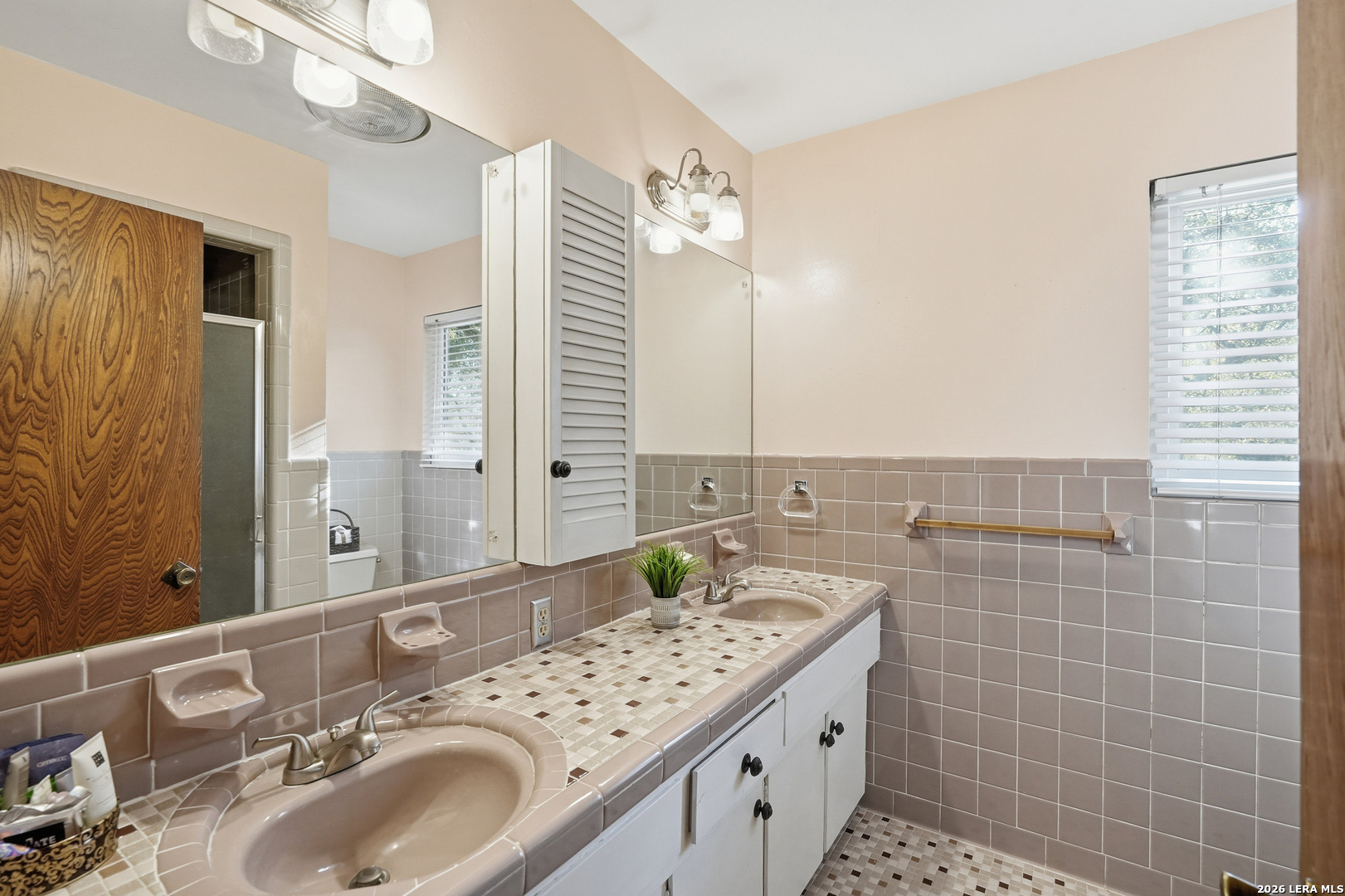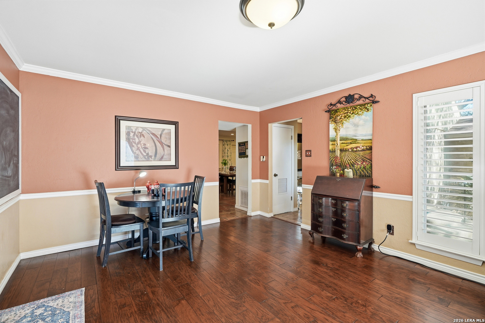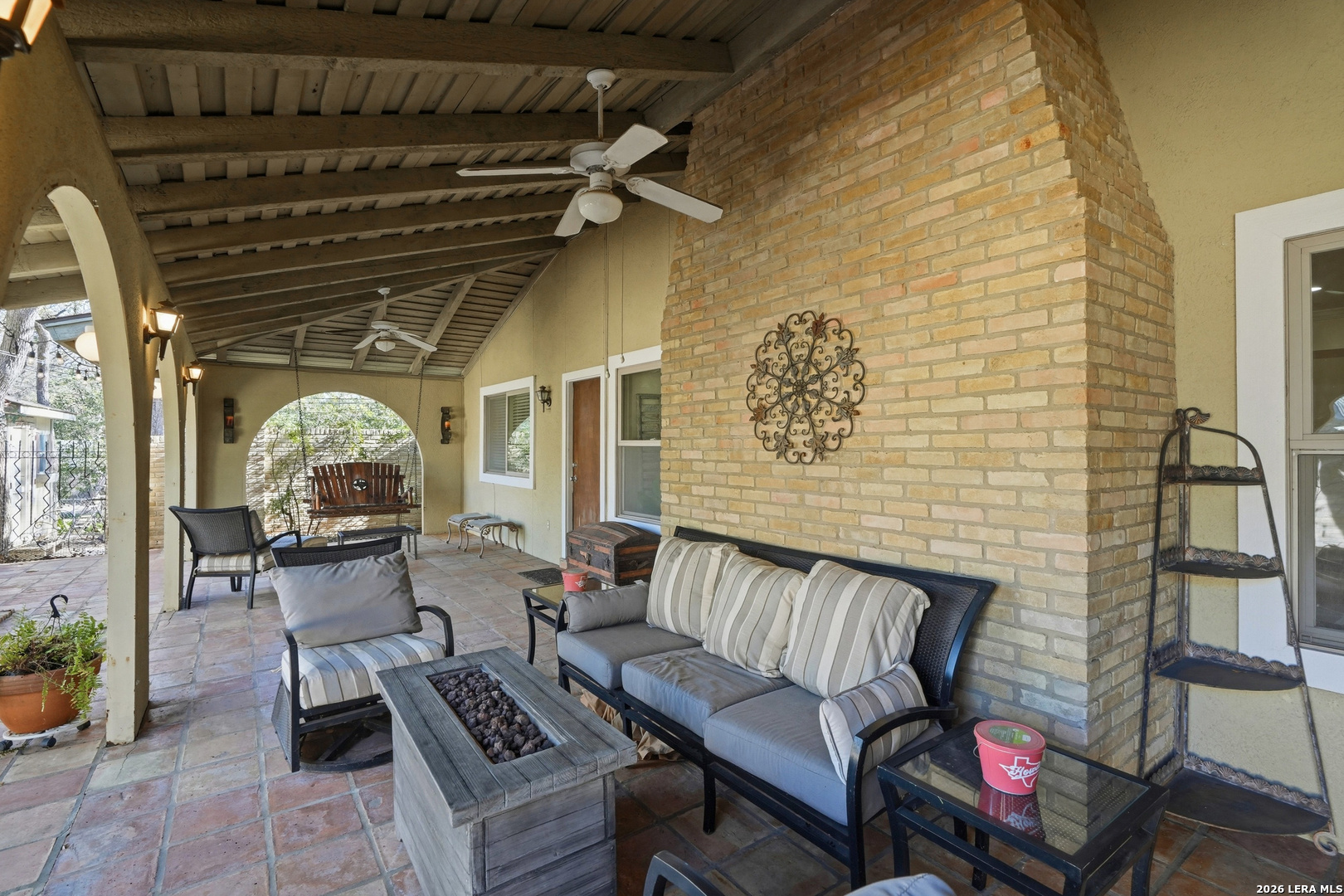 AMAZING OPPORTUNITY to own this Spanish-style retreat with a HACIENDA FLAIR! The grand courtyard entrance is just the beginning... You'll impress your guests with the outdoor living spaces--relaxing DIVING POOL/SPA, multiple seating areas, and the PRIVATE 1100sf PATIO/COURTYARD, complete with antique doors from Mexico! Imagine the parties! Location is UNBEATABLE--so convenient to Med Ctr/USAA/UTSA/Downtown--yet nestled in a quiet, low-traffic neighborhood! Inside you'll find a VIBRANT, ECLECTIC MIX of traditional and modern styles, from the bright family room with REAL HARDWOOD FLOORS to the sleek modern kitchen (completely redone in 2018), to the traditional WOODBURNING FIREPLACE and saltillo tile floors... Large primary bedroom downstairs connects to the office/craftroom/nursery, plus 3 bedrooms and 2 full baths upstairs. BEAUTIFULLY UPDATED KITCHEN includes 38' feet of granite countertops, high-end stainless appliances (refrigerator stays), and TONS OF CABINET SPACE*** 5 burner gas stove and built in microwave/convection oven*** Updates include: New pool pump & filter 2025***New water softener and on-demand water heater in 2024***New garage doors 2025***ALL APPLIANCES can remain, including washer and gas dryer***Utility shed with electric***Huge .4 acre corner lot covered in mature oaks***Full sprinkler system***TONS of storage inside and out***Multiple fruit trees***You'll practically need a map to navigate around the grounds, but YOU'LL LOVE DISCOVERING THE TREASURES FOUND HERE! Homes like this don't come on the market often!!