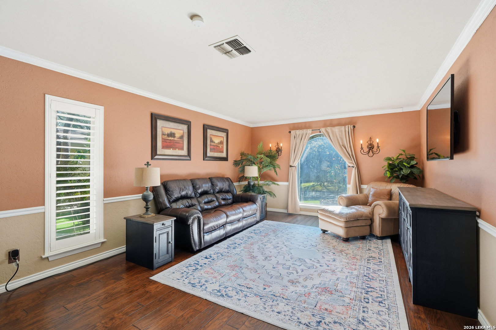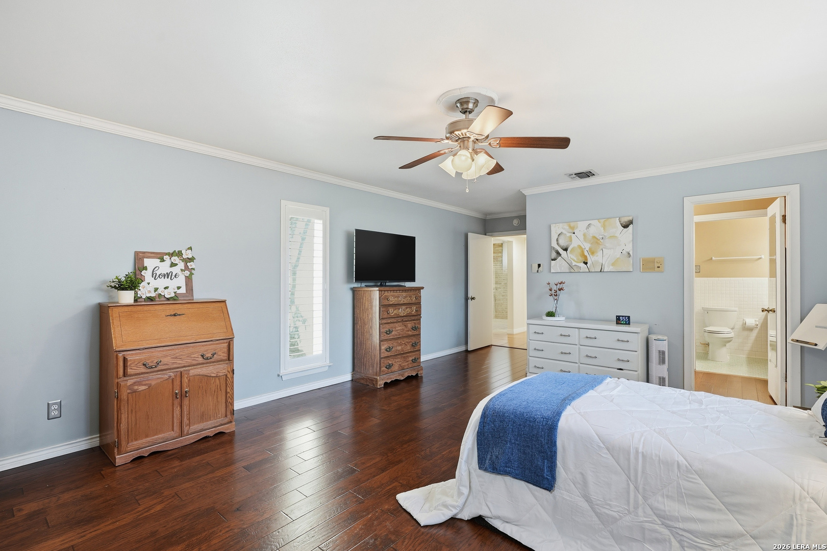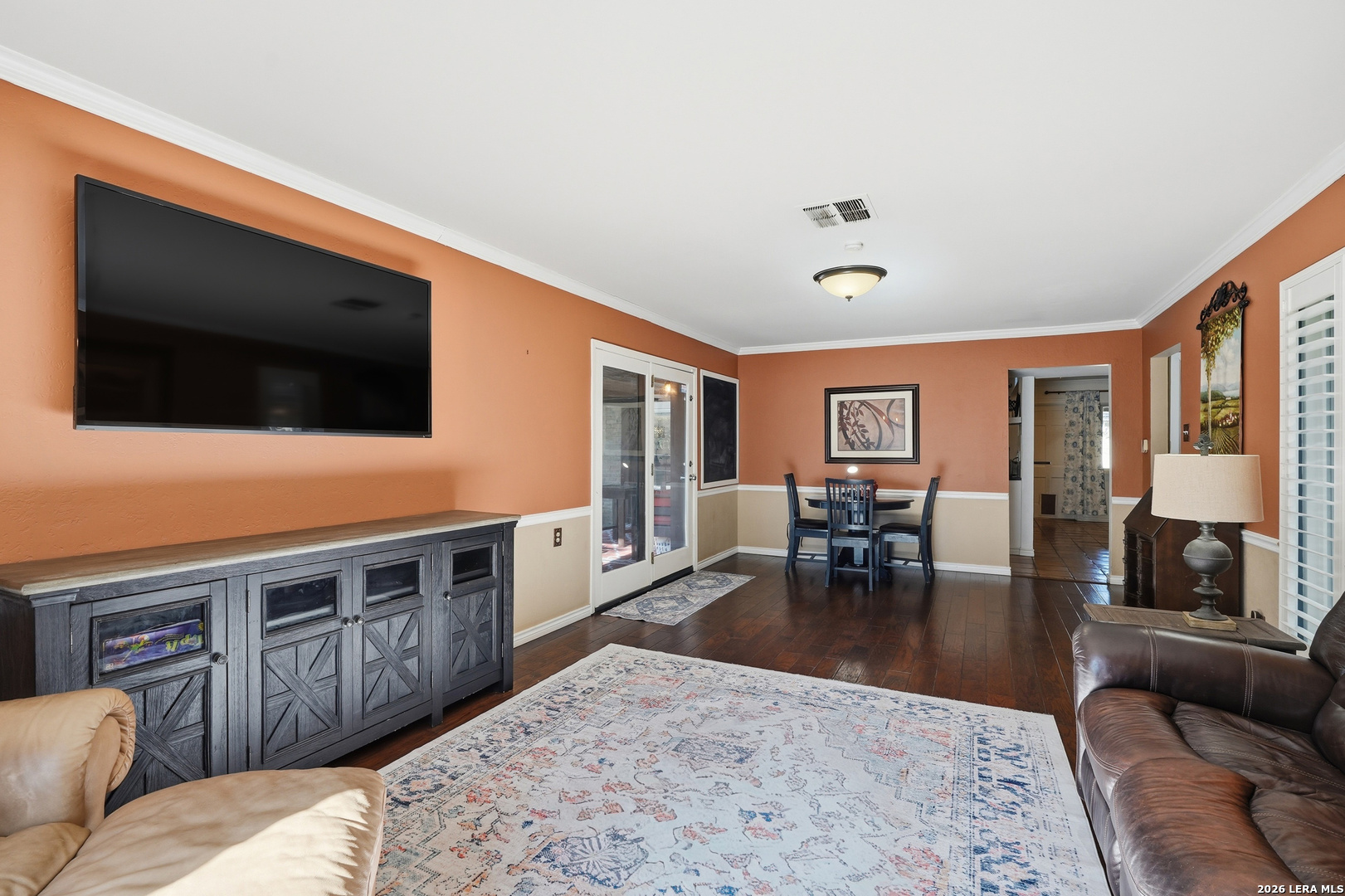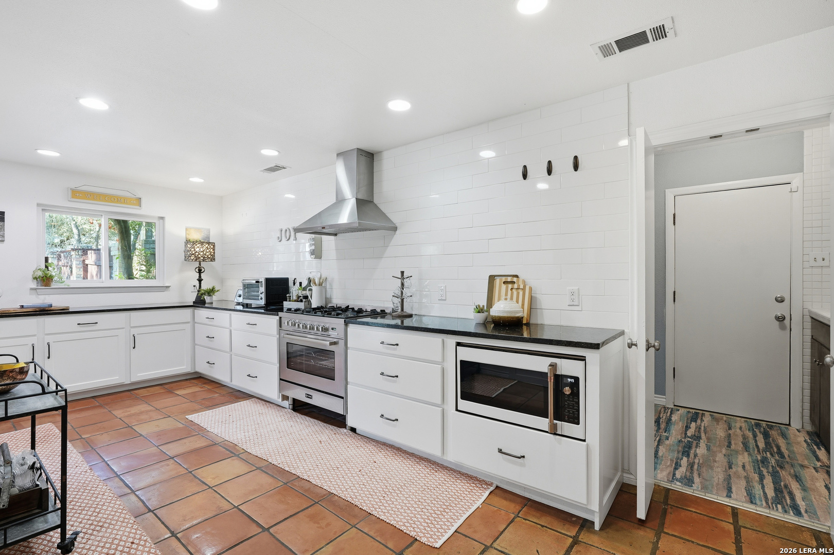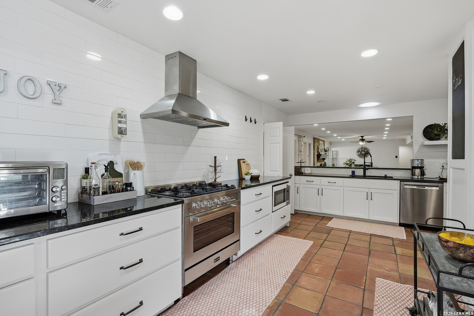 AMAZING OPPORTUNITY to own this Spanish-style retreat with a HACIENDA FLAIR! The grand courtyard entrance is just the beginning... You'll impress your guests with the outdoor living spaces--relaxing DIVING POOL/SPA, multiple seating areas, and the PRIVATE 1100sf PATIO/COURTYARD, complete with antique doors from Mexico! Imagine the parties! Location is UNBEATABLE--so convenient to Med Ctr/USAA/UTSA/Downtown--yet nestled in a quiet, low-traffic neighborhood! Inside you'll find a VIBRANT, ECLECTIC MIX of traditional and modern styles, from the bright family room with REAL HARDWOOD FLOORS to the sleek modern kitchen (completely redone in 2018), to the traditional WOODBURNING FIREPLACE and saltillo tile floors... Large primary bedroom downstairs connects to the office/craftroom/nursery, plus 3 bedrooms and 2 full baths upstairs. BEAUTIFULLY UPDATED KITCHEN includes 38' feet of granite countertops, high-end stainless appliances (refrigerator stays), and TONS OF CABINET SPACE*** 5 burner gas stove and built in microwave/convection oven*** Updates include: New pool pump & filter 2025***New water softener and on-demand water heater in 2024***New garage doors 2025***ALL APPLIANCES can remain, including washer and gas dryer***Utility shed with electric***Huge .4 acre corner lot covered in mature oaks***Full sprinkler system***TONS of storage inside and out***Multiple fruit trees***You'll practically need a map to navigate around the grounds, but YOU'LL LOVE DISCOVERING THE TREASURES FOUND HERE! Homes like this don't come on the market often!!