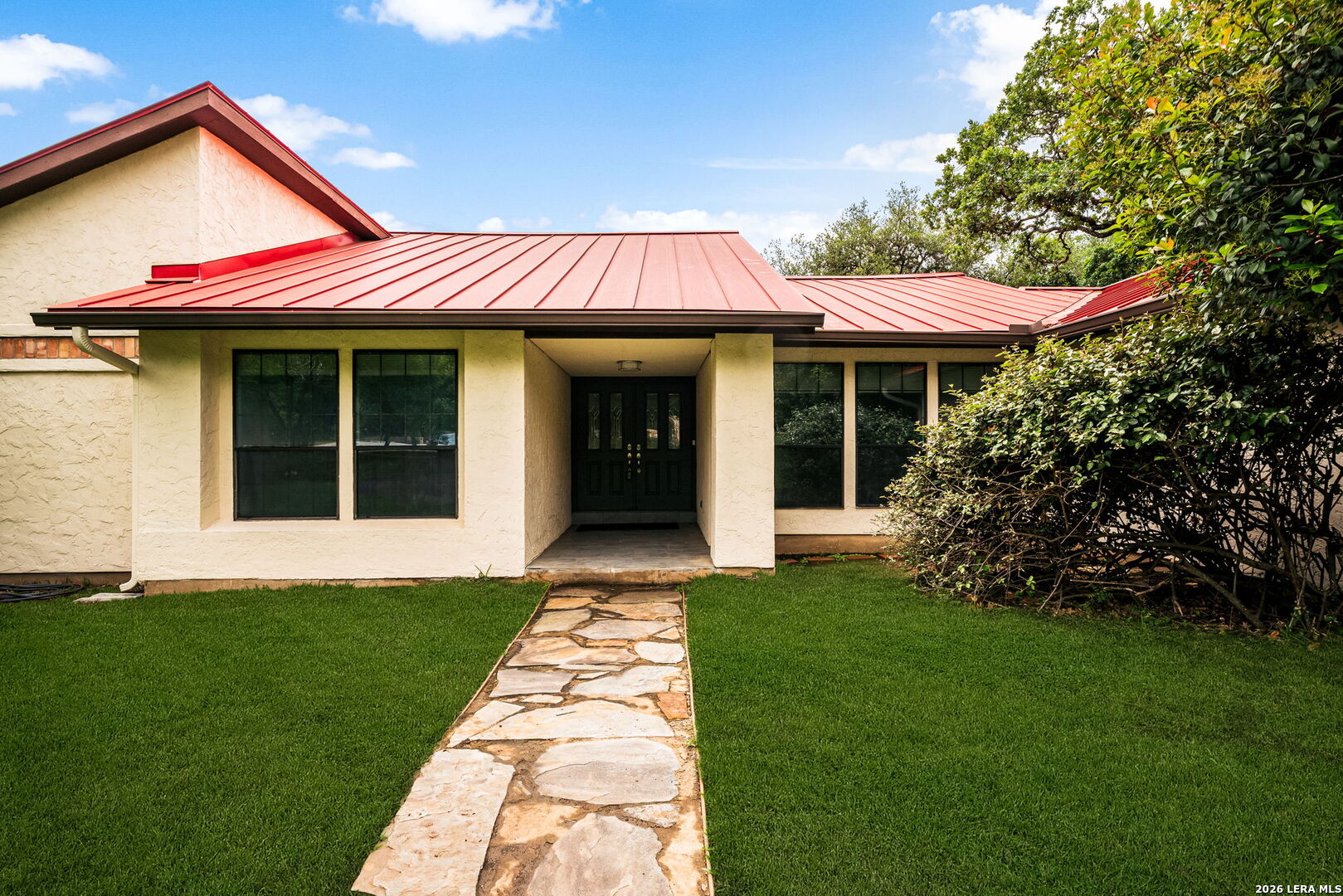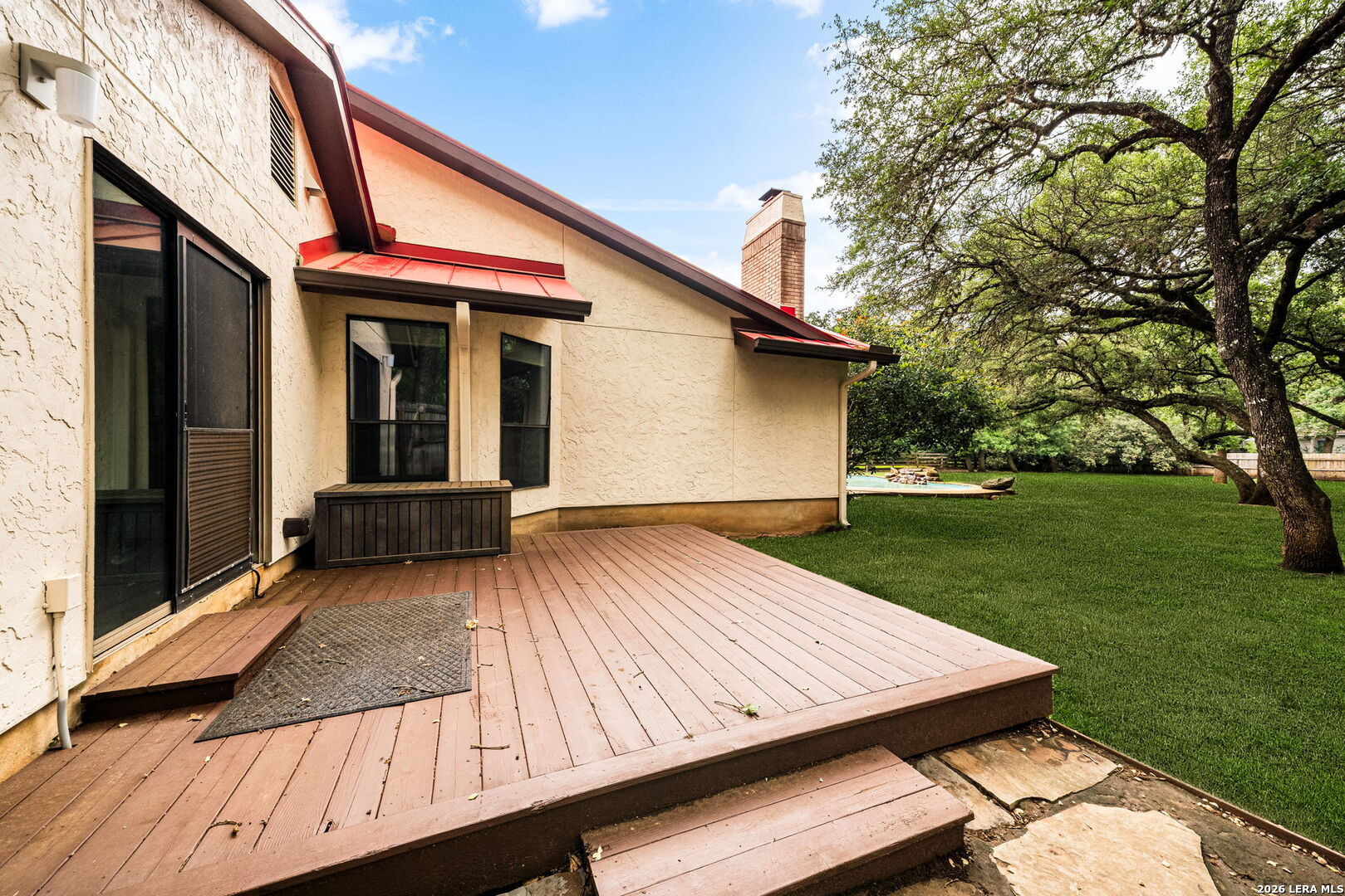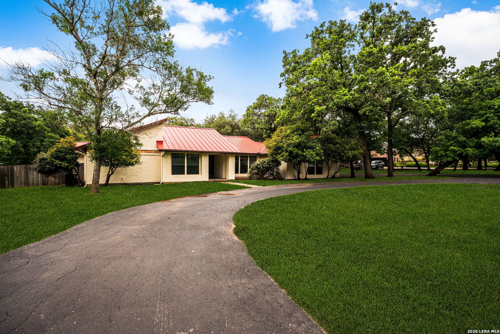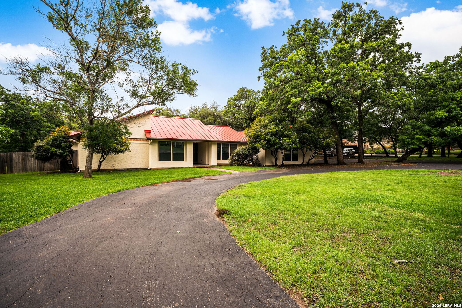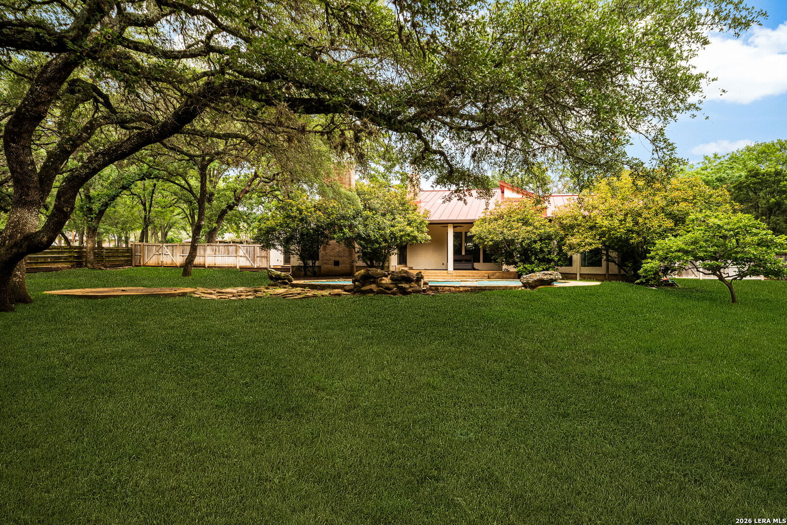 Beautiful single story home on 1 acre in sought after Scenic Oaks. This inviting property features an inground pool surrounded by mature, gorgeous trees, creating a private backyard retreat. Interior offers ceramic tile throughout , a dedicated office, and huge family room with cozy fireplace. Separate living and dining areas provide flexible space for entertaining. The lovely primary suite includes a sitting area and private access to the pool area. High open ceilings, a beautiful metal roof and rambling space make this a great find for anyone looking for privacy, convenience, comfort and outdoor living.