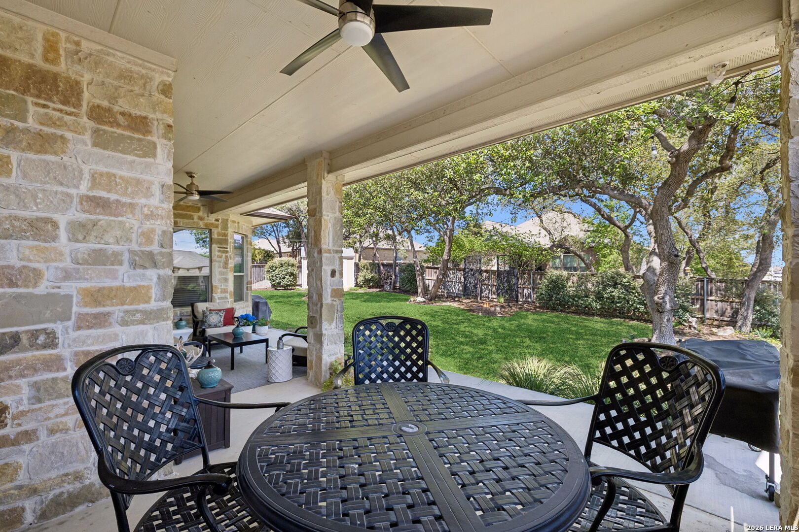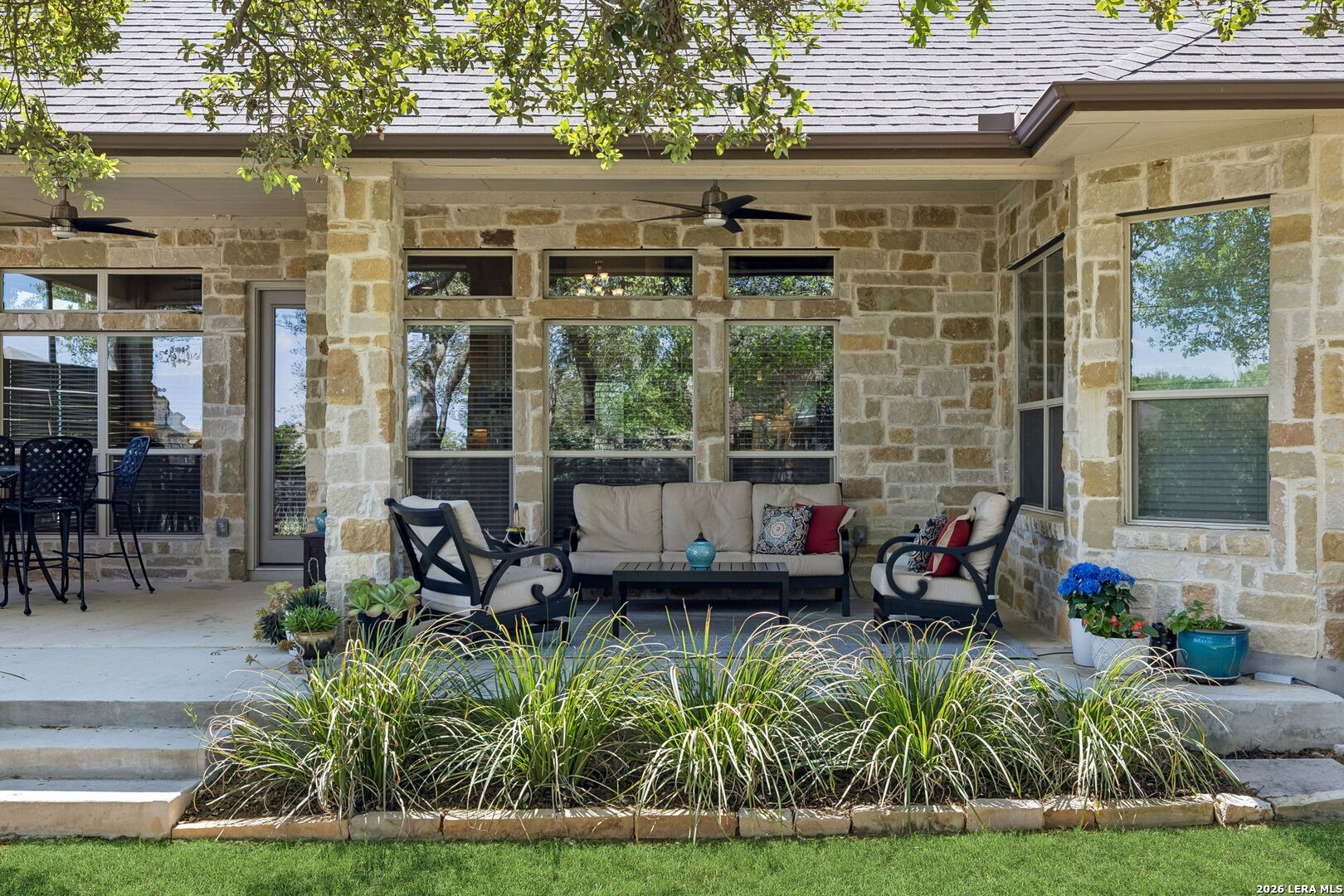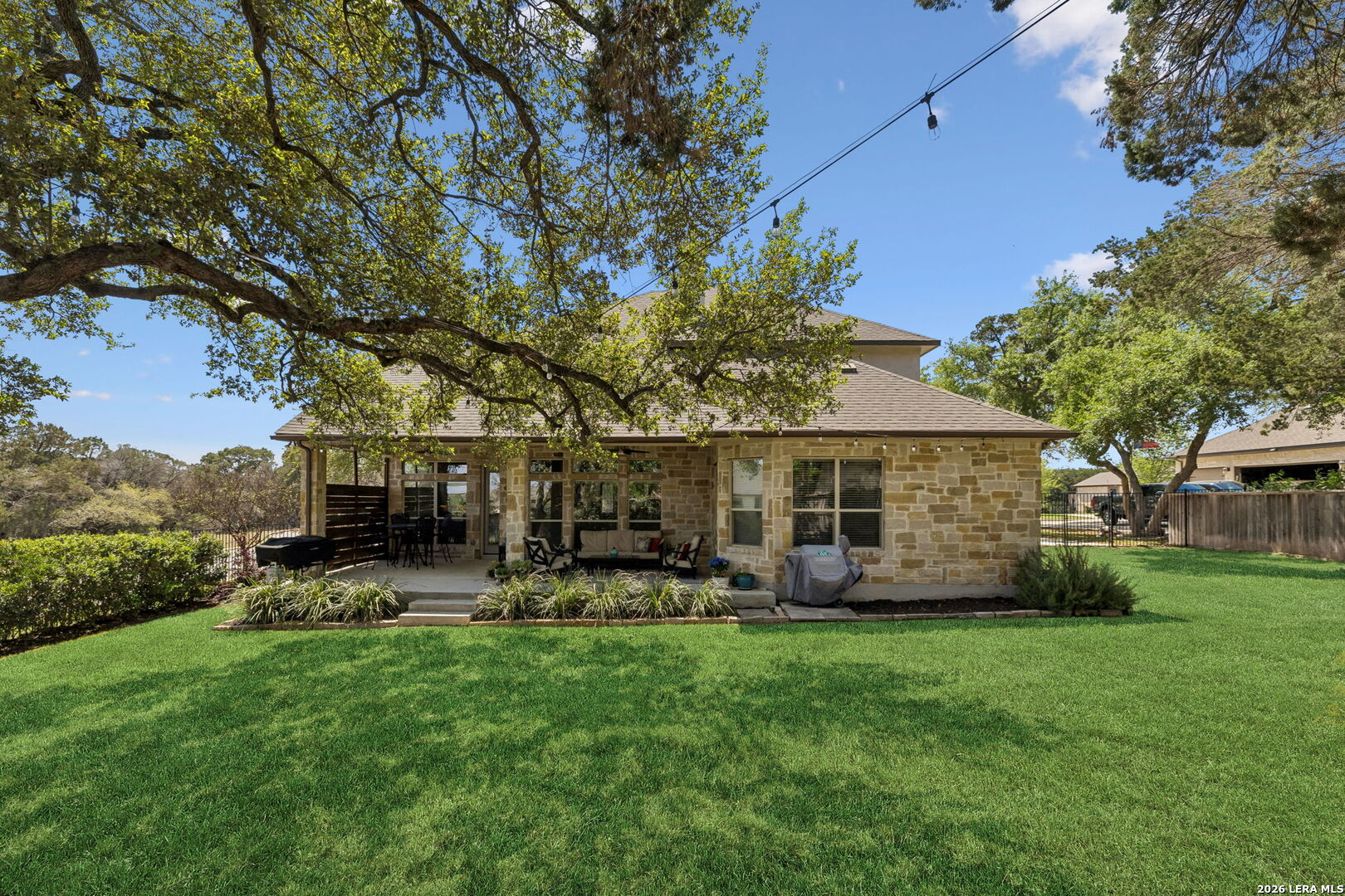 Garage gym setup, community pool and playground amenities, and convenient access to town-this New Braunfels home delivers everyday comfort and flexibility. The open floor plan features soaring ceilings, abundant natural light, and a dramatic floor-to-ceiling stone fireplace anchoring the main living area. The kitchen includes granite countertops, stainless appliances, gas cooktop with pot filler, center island seating, and walk-in pantry. A dedicated office provides workspace flexibility, while the upstairs game room offers additional living space for recreation or relaxation. The primary suite includes a garden tub, separate shower, dual-sink vanity, and walk-in closet. Outdoor features include a covered patio with ceiling fans, private backyard with fire pit, sprinkler system, and full privacy fencing. Additional highlights include a three-car garage and functional layout designed for everyday living.