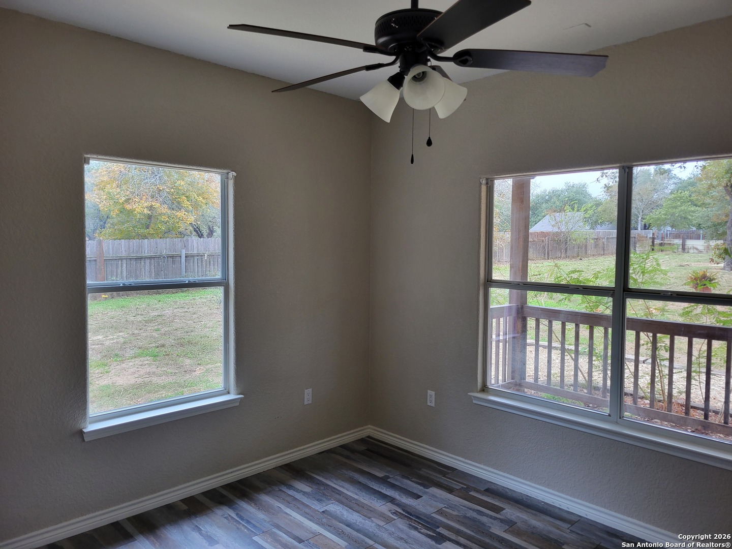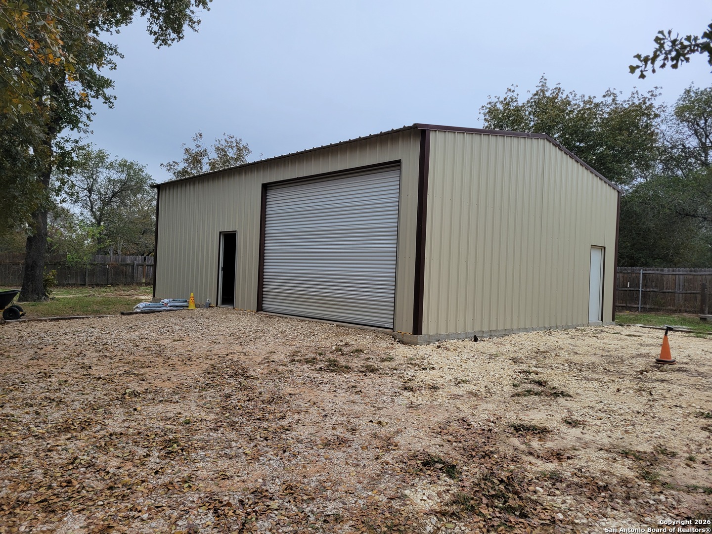 Spacious 4-bedroom, 2.5-bath home on 1.5 acres with new A/C, large insulated shop, and added flexible space in Forest Woods! Situated on a fully fenced 1.5-acre lot in the peaceful Forest Woods subdivision of Natalia, this approximately 2,500 sq ft home offers flexible living, thoughtful upgrades, and exceptional outdoor amenities. The open-concept living area features vaulted ceilings, abundant natural light, and a striking rock fireplace. The kitchen includes custom cabinetry, granite countertops, and a reverse osmosis water filtration system. The split primary suite provides a private retreat with sitting area, walk-in closet, dual vanities, separate shower, and soaking tub. The former attached garage has been professionally converted into a conforming fourth bedroom with closet, along with a dedicated laundry room and half bath. A brand-new central A/C system adds peace of mind and energy efficiency. Outdoors, the property features mature trees, a paved circular driveway, and an automatic gate. An impressive 30x40 insulated shop with electricity, water and preplumbed for a bathroom but not yet connected to septic, offers excellent space for a workshop, business use, or storage. Additionally, a separate small "she shed" style building with electricity and A/C provides flexible space ideal for a home office, studio, or hobby room. Vacant and easy to show, this property offers comfortable country living with outstanding versatility.