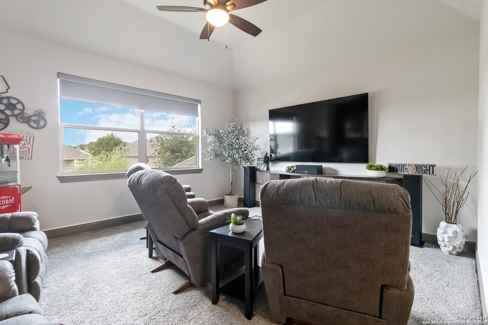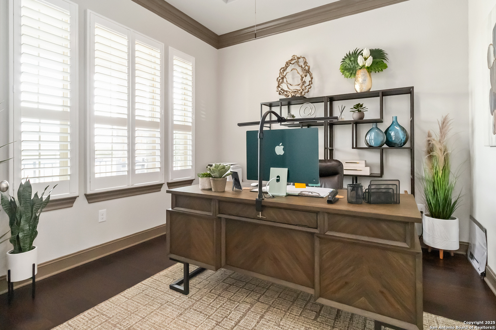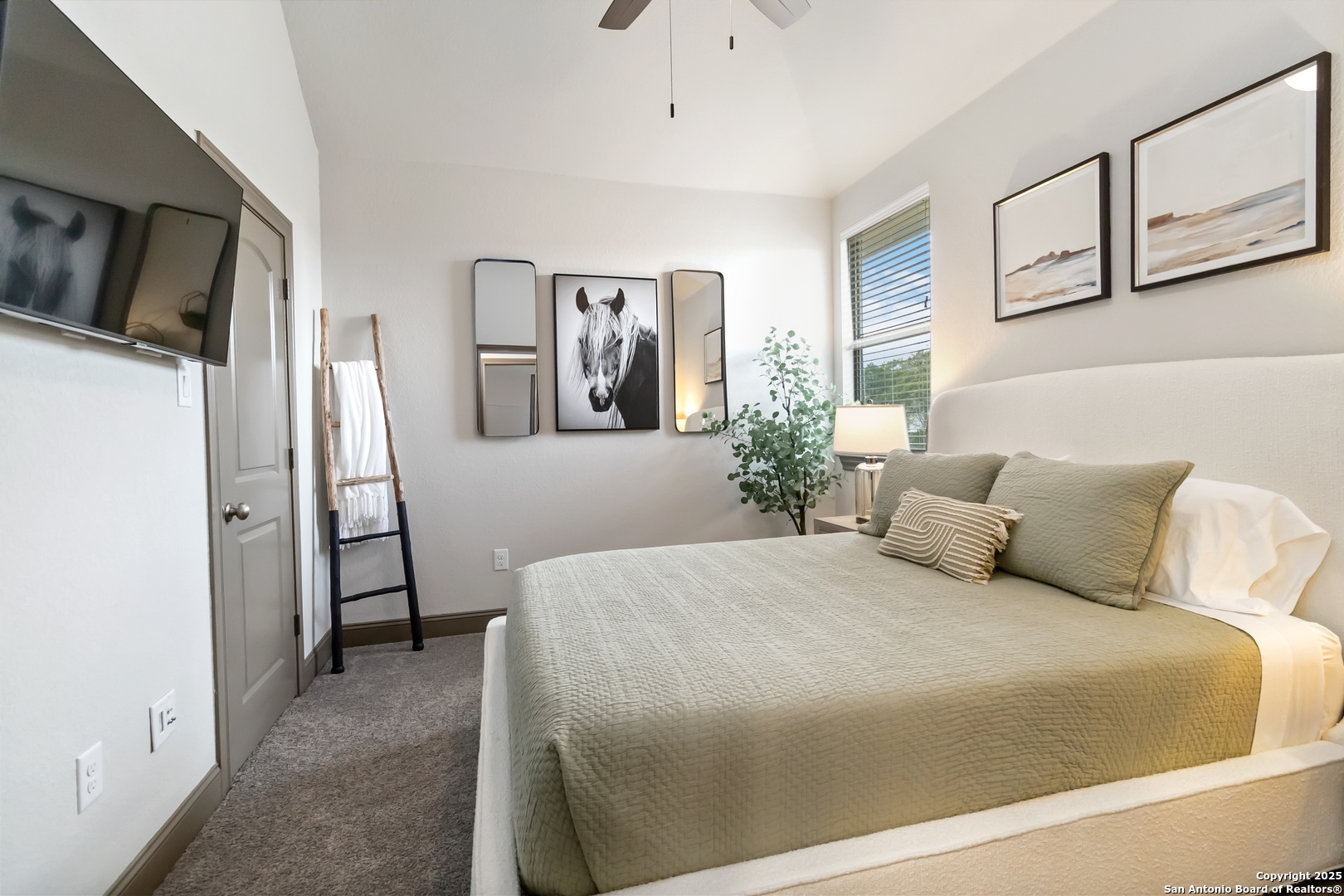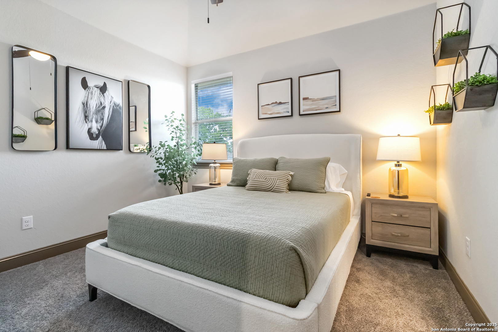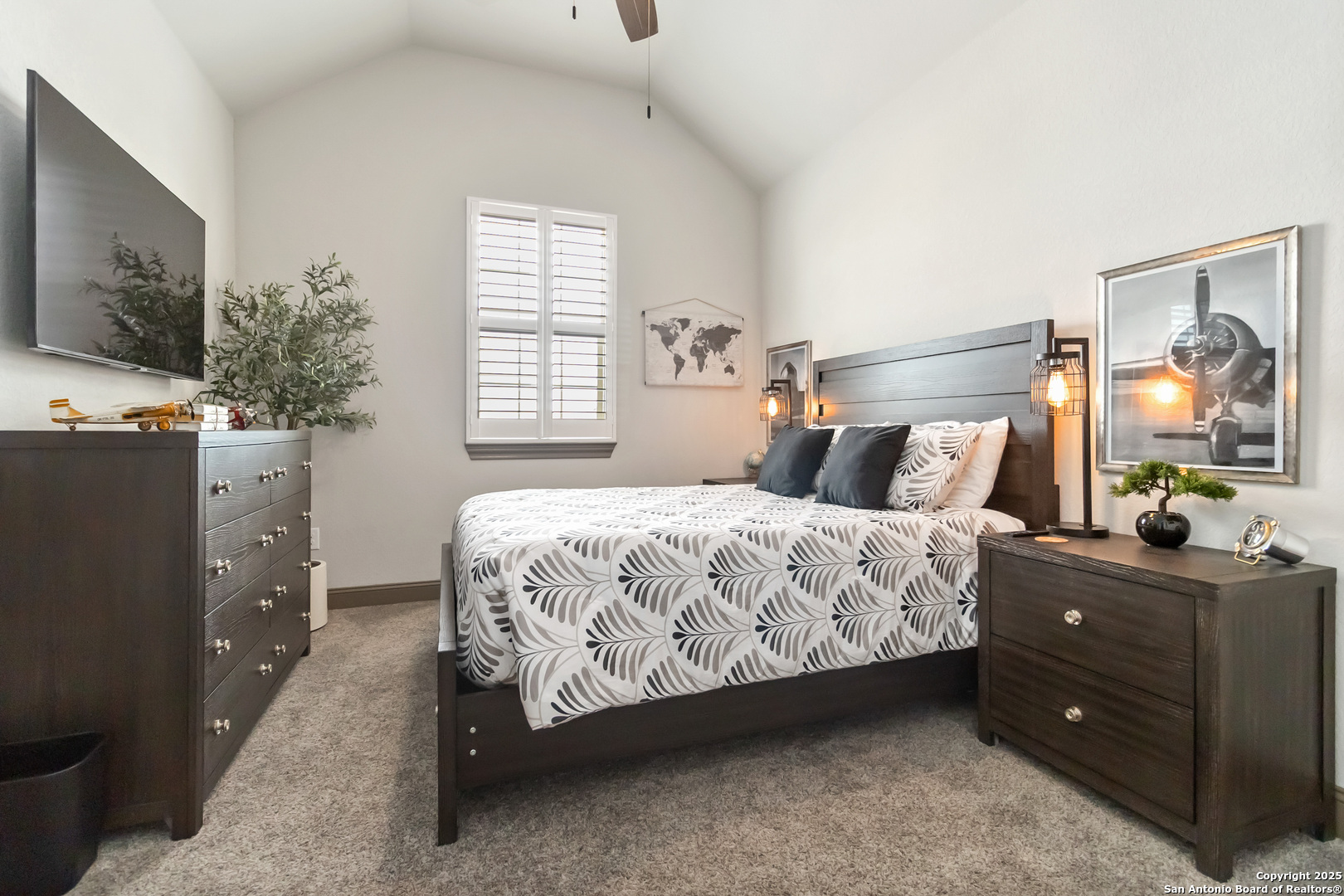 Discover the perfect blend of comfort and Hill Country living in this gently lived in 5-bedroom, 4-bathroom home with 3,542 sq. ft., built in 2021 and set on a 0.42-acre corner lot in the sought-after Manor Creek community. Designed for both everyday living and entertaining, the home features engineered hardwood floors throughout, plantation shutters, and art niches that add style and character. Downstairs master bedroom offers a huge space with a spa like bathroom with split vanities, walk-in shower, deep walk-in closet with custom cabinets. The chef's kitchen is a highlight, offering gas cooking, pot filler, granite countertops, a rough cut granite island, and stainless steel appliances, all complemented by a reverse osmosis water system. Flexible spaces include a downstairs mother-in-law suite w/ walk-in shower, private office and a media room, while the 3-car side entry garage with epoxy floors, custom sink corner and a backyard 10x14 Tuff Shed provide excellent storage options. The driveway has also been extended for flexibility. Outdoors, enjoy beautifully landscaped yards with custom stone planters that create a peaceful setting. Beautiful trees compliment the corner lot with wrought iron fencing, stone complements and Malibu Lighting package that lights up the stone exterior at night. The patio has privacy panels, ceiling fan and water/gas outlets for an outdoor kitchen. Manor Creek offers a relaxing lifestyle with an Olympic-size pool, playground, and walking trail, all within a gated community known for its wide lots and Hill Country feel. With a 1.7 tax rate and easy access to New Braunfels shopping, dining, and recreation, this property combines tranquility with convenience. Wonderful granite counters with rough cut granite island, whole house vacuum, sound systems, iQPanel for the connected house, 2 hot water heaters, built-ins for storage, custom cabinets/counter in laundry room, contemporary updated lighting throughout and Builders warranty. The list of upgrades to this home is long and valued at approximately $100k per seller. Just minutes to schools, shopping and restaurants! Just minutes to downtown New Braunfels and 14 minutes to Gruene Historic area. Great location between San Antonio and Austin!