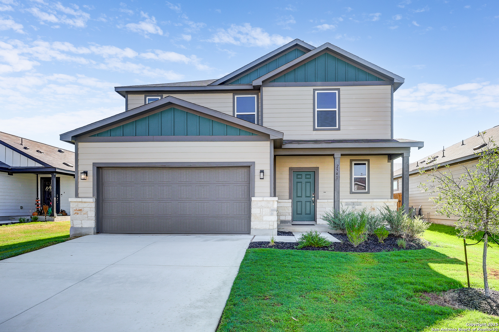 ** The Wilson at Hiddenbrooke offers a spacious two-story retreat, beginning with a welcoming foyer that leads into an expansive open-concept great room. This central area seamlessly integrates distinct dining and living spaces alongside a well-appointed kitchen featuring an island and corner pantry. Accessible from this hub is an optional covered patio, perfect for outdoor enjoyment, complemented by a charming front porch. A convenient half bathroom is also situated on the first floor. Upstairs, three bedrooms provide private living quarters. Two bedrooms share a full bathroom, while the primary suite enjoys its own en-suite bathroom with a dual-sink vanity and a spacious walk-in closet. A dedicated laundry room completes the upper level of this thoughtfully designed home. Additional highlights include 42" grey shaker-style kitchen cabinets with quartz countertops, luxury wood-look vinyl plank flooring in common areas, stainless-steel appliances, separate garden tub and shower in the primary bath, extra recessed can lights throughout, cultured marble countertops with modern rectangular sinks in bathrooms, a landscape package with sprinkler system, a covered patio, a garage door opener with two remotes, and exceptional features such as the Century Home Connect smart home package.