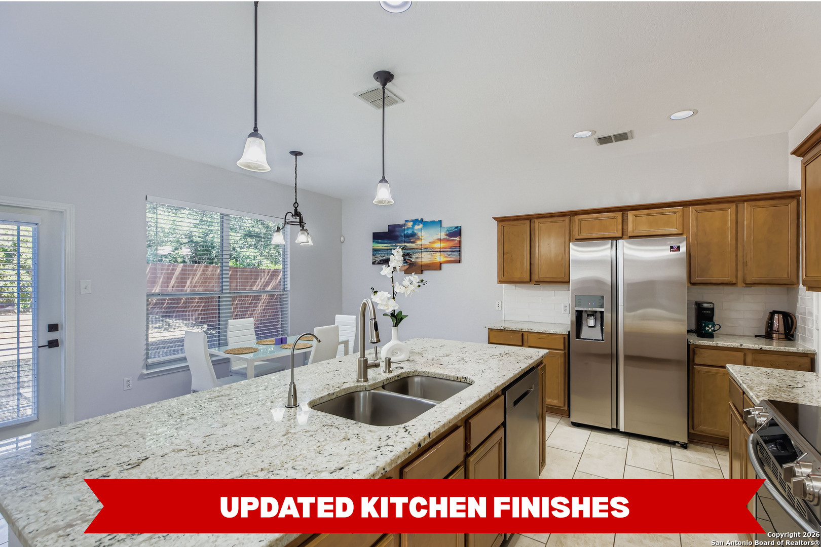 Over $40,000 in recent upgrades make this gated Canyon Springs home truly stand out move-in ready with modern comforts in a prime Stone Oak location. Located in the gated Villas at Canyon Springs, this beautifully maintained 3-bedroom, 2.5-bath home offers 1,639 square feet of thoughtfully designed living space. The open-concept layout creates a seamless flow between the living, dining, and kitchen areas-ideal for both everyday living and entertaining. Select furnishings may convey, offering an immediate move-in-ready option for the next owner. Recent improvements throughout enhance comfort, efficiency, and overall appeal. The kitchen features updated finishes, a stylish backsplash, ample counter space, and a functional layout that opens to the main living area. Notable upgrades include a recently replaced interior HVAC system, Nest thermostat, smart garage door system, epoxy-coated garage flooring, premium plush carpet with upgraded padding, reverse osmosis water system, updated door and bath hardware, enhanced lighting and fixtures throughout, ceiling fans, window blinds, and additional electrical and storage enhancements-creating a truly turnkey experience. Upstairs, the primary suite offers a peaceful retreat, while secondary bedrooms provide flexibility for guests, a home office, or additional living space. The gated community offers resort-style amenities including a pool, jogging trails, playground, and sports courts. Ideally located near Canyon Springs Golf Club with convenient access to Stone Oak shopping, dining, and top-rated Comal ISD schools. Buyer financing incentives may be available. This home has been strategically refreshed and positioned to capture spring market momentum. Schedule your showing today.