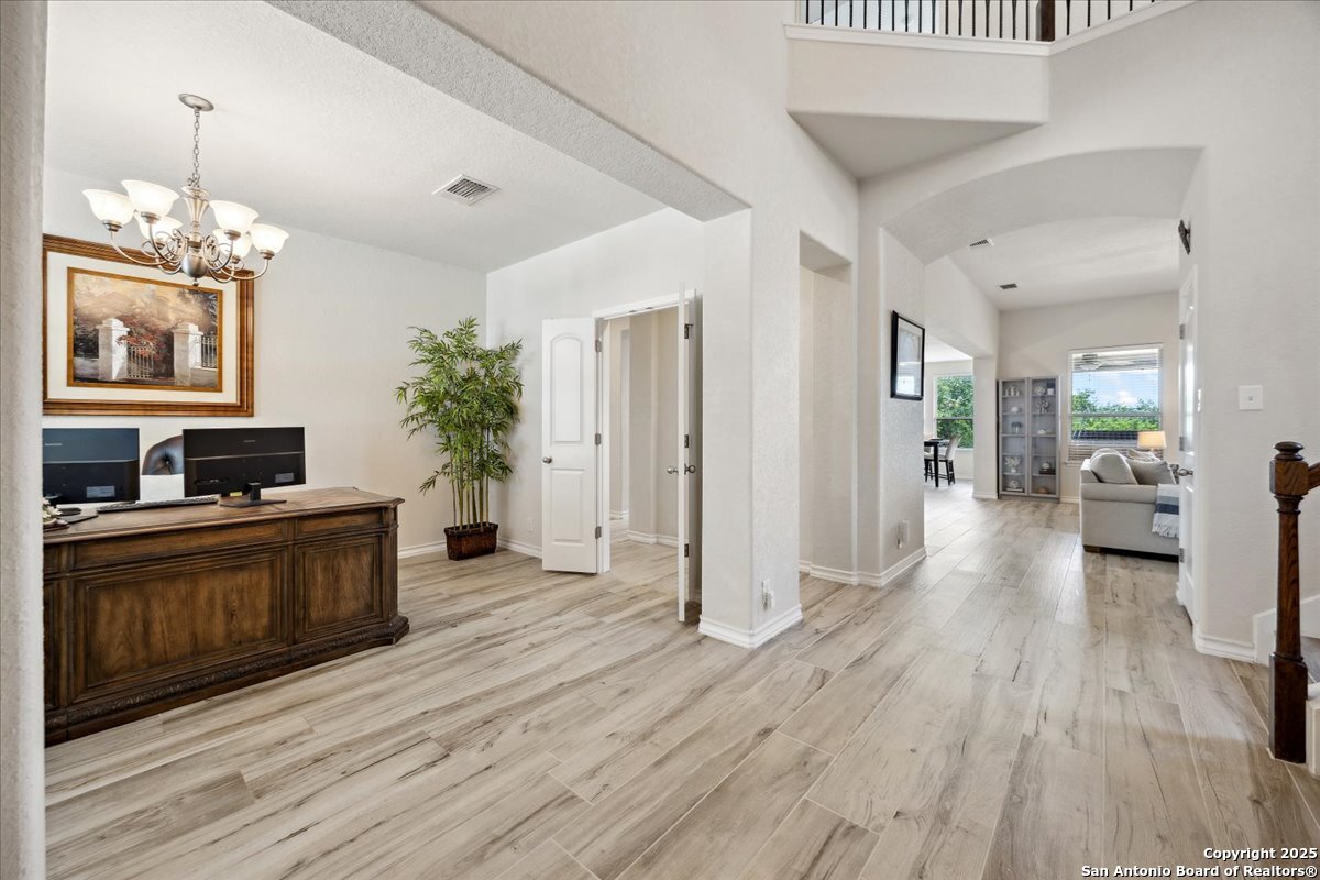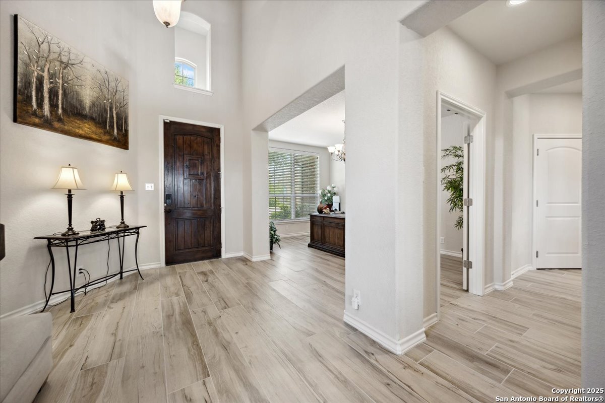 Welcome to this stunning 5-bedroom, 4-bath home nestled on a spacious .26-acre lot in the sought-after Indian Springs subdivision. Built by renowned builder Highland Homes, this residence boasts 3,265 square feet of well-designed living space, offering the perfect blend of style, functionality, and comfort. Step inside to an open-concept floor plan with soaring ceilings and beautiful Italian porcelain wood plank flooring that extends throughout the main living areas-ideal for both everyday living and entert