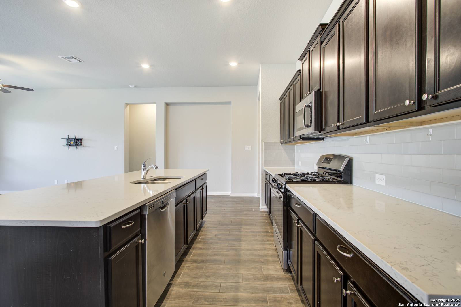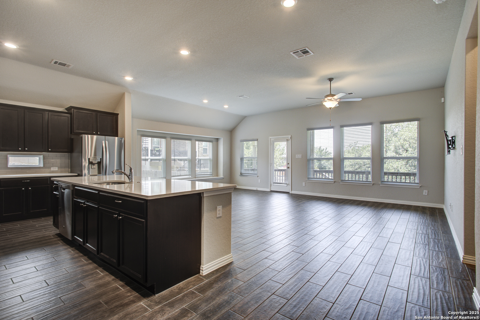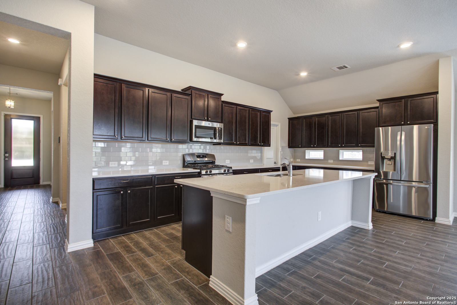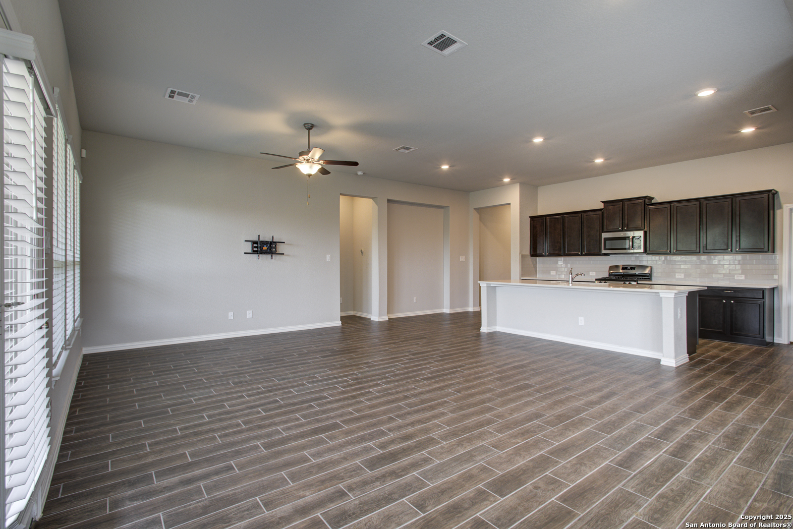 Located in a gated community just minutes from Highway 281, this beautifully maintained single-story home offers convenient access to nearby shopping, dining, and entertainment. Step inside to an open-concept floor plan featuring tile flooring throughout the common areas and cozy carpet in the bedrooms. The spacious living room flows seamlessly into the island kitchen, which boasts granite countertops, gas cooking, ample cabinet storage, and built-in stainless steel appliances-ideal for both everyday living and entertaining. The large master suite is situated on its own side of the home for added privacy and includes a full bath with a double vanity, separate tub and shower, and a generous walk-in closet. Two secondary bedrooms are located on the opposite side of the home, offering space and comfort for guests or family. Enjoy outdoor living with a spacious deck and fenced backyard-perfect for relaxing or hosting gatherings. Just a short walk to the community pool, this home is move-in ready and easy to show! Step inside to an open-concept floor plan featuring tile flooring throughout the common areas and cozy carpet in the bedrooms. The spacious living room flows seamlessly into the island kitchen, which boasts granite countertops, gas cooking, ample cabinet storage, and built-in stainless steel appliances-ideal for both everyday living and entertaining. The large master suite is situated on its own side of the home for added privacy and includes a full bath with a double vanity, separate tub and shower, and a generous walk-in closet. Two secondary bedrooms are located on the opposite side of the home, offering space and comfort for guests or family. Enjoy outdoor living with a spacious deck and fenced backyard-perfect for relaxing or hosting gatherings. Just a short walk to the community pool, this home is move-in ready and easy to show!