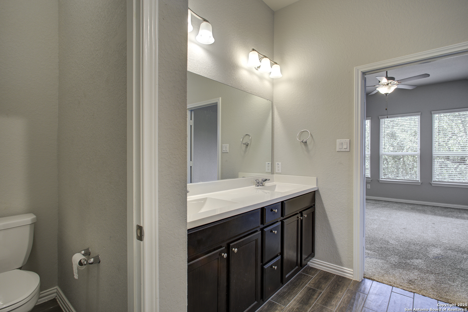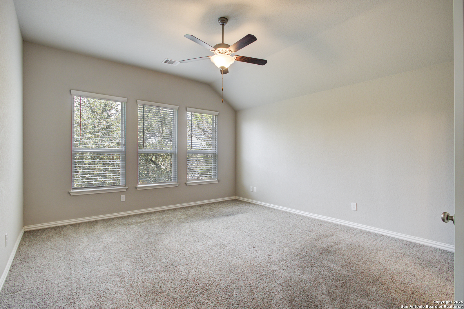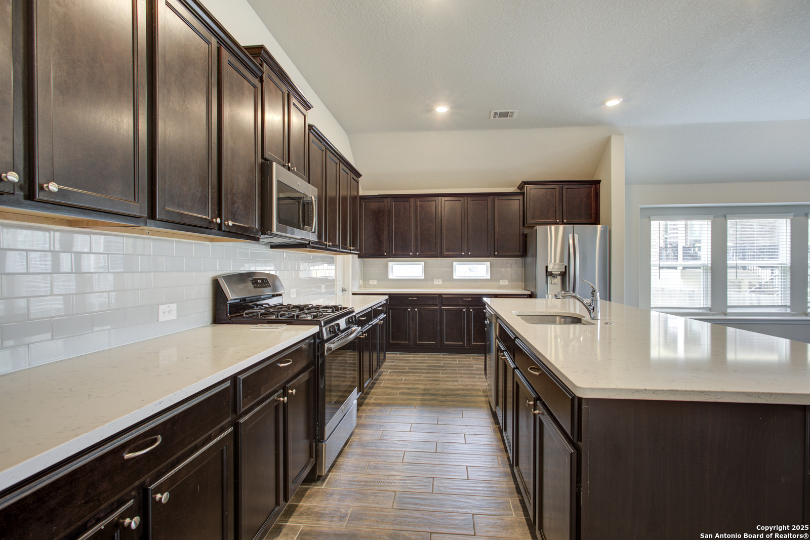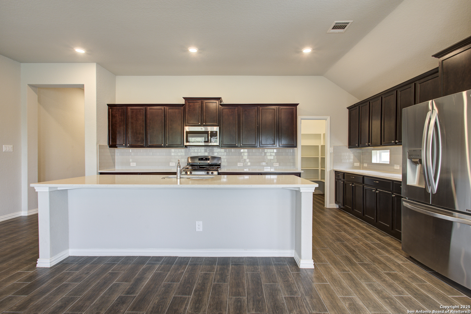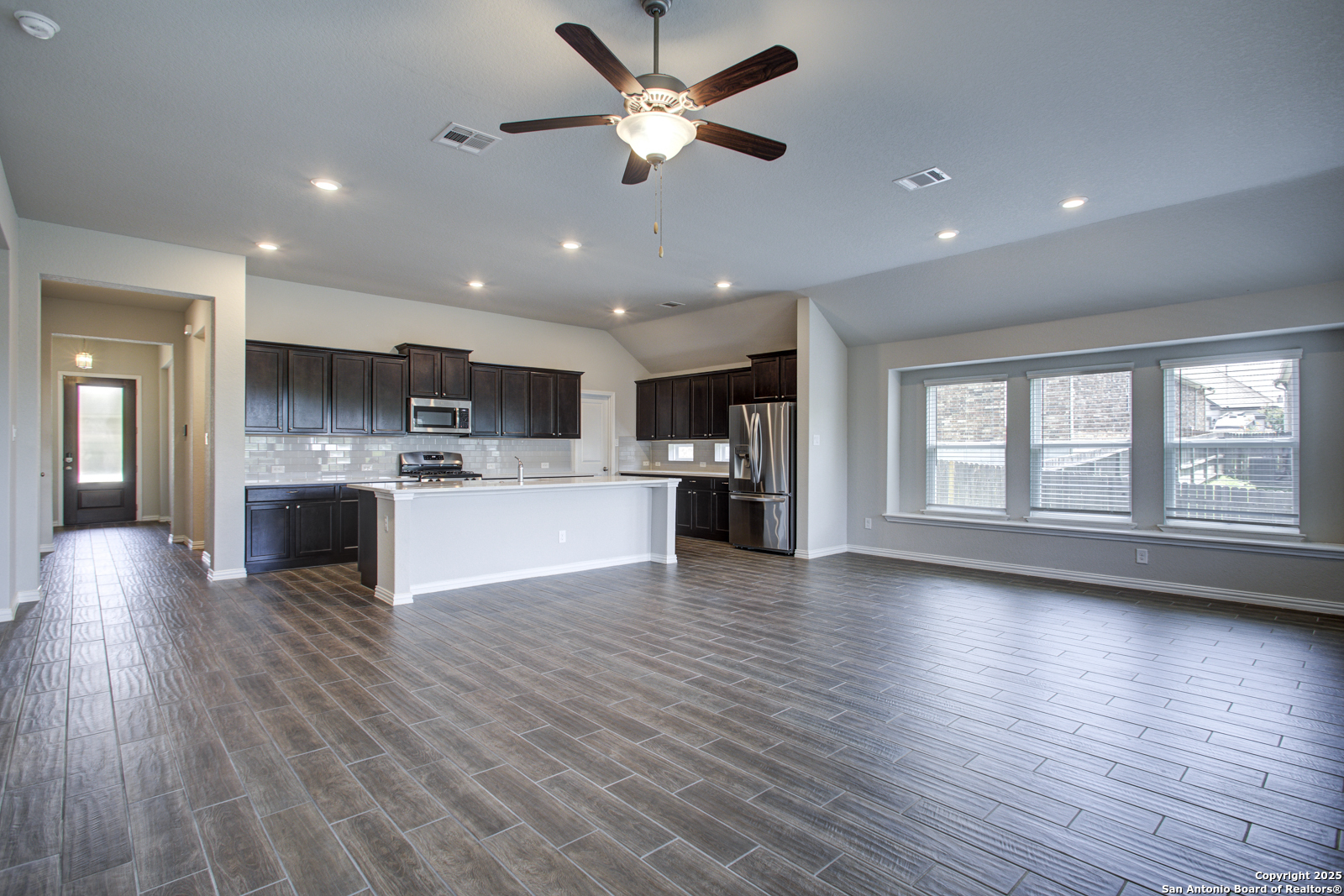 Located in a gated community just minutes from Highway 281, this beautifully maintained single-story home offers convenient access to nearby shopping, dining, and entertainment. Step inside to an open-concept floor plan featuring tile flooring throughout the common areas and cozy carpet in the bedrooms. The spacious living room flows seamlessly into the island kitchen, which boasts granite countertops, gas cooking, ample cabinet storage, and built-in stainless steel appliances-ideal for both everyday living and entertaining. The large master suite is situated on its own side of the home for added privacy and includes a full bath with a double vanity, separate tub and shower, and a generous walk-in closet. Two secondary bedrooms are located on the opposite side of the home, offering space and comfort for guests or family. Enjoy outdoor living with a spacious deck and fenced backyard-perfect for relaxing or hosting gatherings. Just a short walk to the community pool, this home is move-in ready and easy to show! Step inside to an open-concept floor plan featuring tile flooring throughout the common areas and cozy carpet in the bedrooms. The spacious living room flows seamlessly into the island kitchen, which boasts granite countertops, gas cooking, ample cabinet storage, and built-in stainless steel appliances-ideal for both everyday living and entertaining. The large master suite is situated on its own side of the home for added privacy and includes a full bath with a double vanity, separate tub and shower, and a generous walk-in closet. Two secondary bedrooms are located on the opposite side of the home, offering space and comfort for guests or family. Enjoy outdoor living with a spacious deck and fenced backyard-perfect for relaxing or hosting gatherings. Just a short walk to the community pool, this home is move-in ready and easy to show!