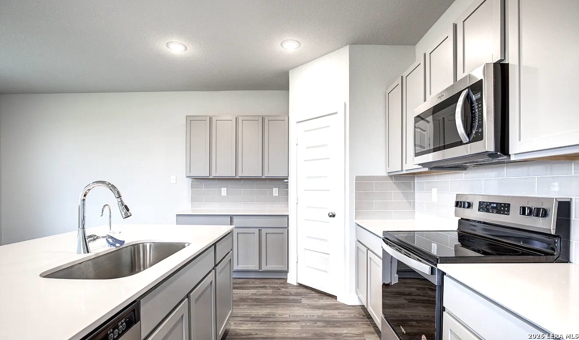 Amazing Cul-de-Sac home in desirable Applewhite Meadows! Newly constructed home completed in 2025... gently lived in. You are greeted with Luxury Wood-like Vinyl Plank Flooring throughout the main level. Large Kitchen Island with 36" Stone Gray Kitchen Cabinets, Stainless Steel appliances, Quartz Countertops and Backsplash. Recessed Lighting throughout the home. Powder Bath downstairs. All Bedrooms up with carpets. Spacious Primary Bedroom with it en-suite bathroom, dual sink vanity, Walk-in Shower Stall, large Walk-in Closet. Cultured Marble Countertops and Modern Rectangular Sinks in Bathrooms, Tile Surround Shower. Enjoy the Outside Covered Patio, 240V Electrical Charging Port in Garage, Sprinkler System, and Smart Home Features. No neighbors to your left.