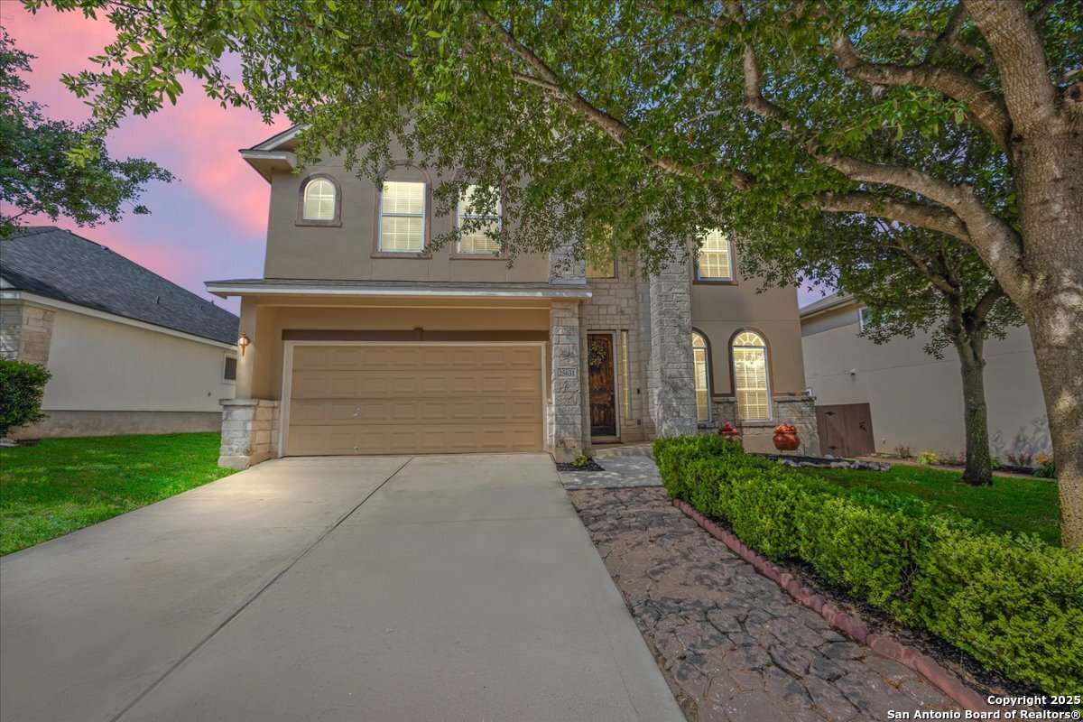 Remarkable 4 Bedroom home offering a Dedicated Study, Game Room and Fully Equipped Media Room in Popular Indian Springs. Step into a stylish kitchen designed for both everyday living and entertaining, featuring sleek granite countertops, stainless steel appliances, and a smooth cooktop. This open concept layout flows seamlessly into the family room, creating a warm and inviting space to gather. The spacious primary suite is located downstairs and includes double vanities, a separate garden tub and shower, and a huge walk-in closet. Enjoy the beautiful tile and recent luxury vinyl plank flooring downstairs! Upstairs, you'll find a state-of-the-art media room, a large game room, and generously sized secondary bedrooms, each with walk-in closets. Enjoy year-round entertaining on the covered patio with a cozy fireplace. Beautiful xeriscape landscaping in the backyard saves you time on maintenance and additional patio space perfect for relaxing! Additional highlights include recently replaced carpet upstairs, recent exterior painting, upgraded stone and stucco exterior, no city taxes, and access to incredible neighborhood amenities-community pool, playground, basketball court, pavilion, and jogging trails. Zoned to the highly acclaimed Comal ISD, with Indian Springs Elementary right in the neighborhood!