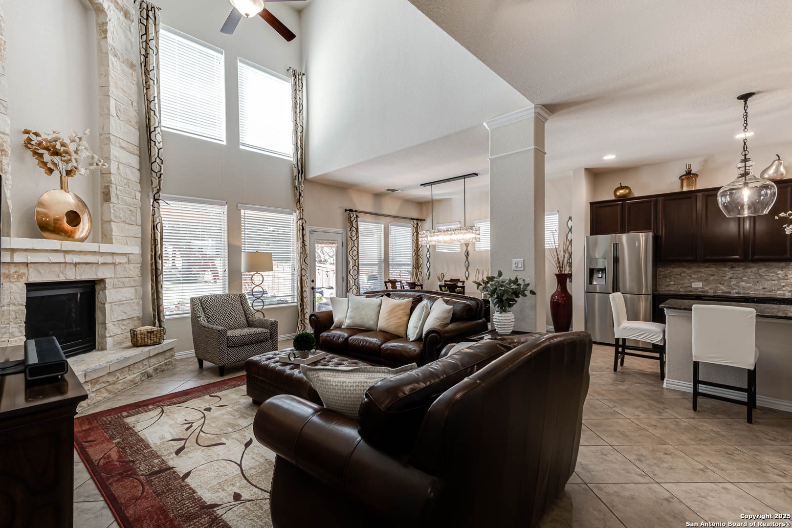 Discover the perfect blend of space, style, and convenience in this stunning 5-bedroom, 3-bathroom home located on a cul-de-sac in the gated community of Heights at Two Creeks. Step into an inviting open floorplan highlighted by 20-inch ceilings that create a bright and airy atmosphere. The home features two living areas, including a main family room and also an upstairs gameroom, offering plenty of room to relax or entertain. The modern kitchen flows seamlessly into the living and dining spaces, making it ideal for hosting gatherings. The generously sized primary suite provides a peaceful retreat, while four additional bedrooms offer flexibility for family, guests, or a home office. Outside, the spacious backyard with an extended patio and pergola is perfect for barbecues, outdoor dining, or simply unwinding under the stars. Nestled in a prime location, you'll enjoy easy access to I-10 and the bustling shopping, dining, and entertainment options at The Rim, La Cantera and San Antonio.