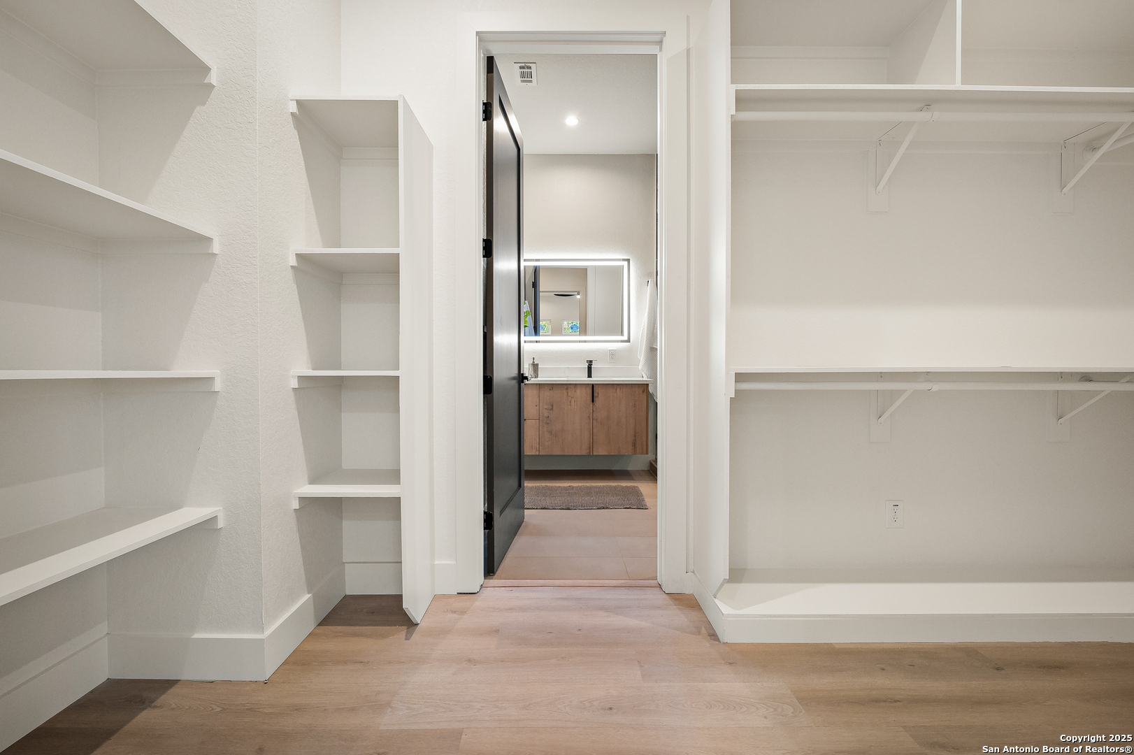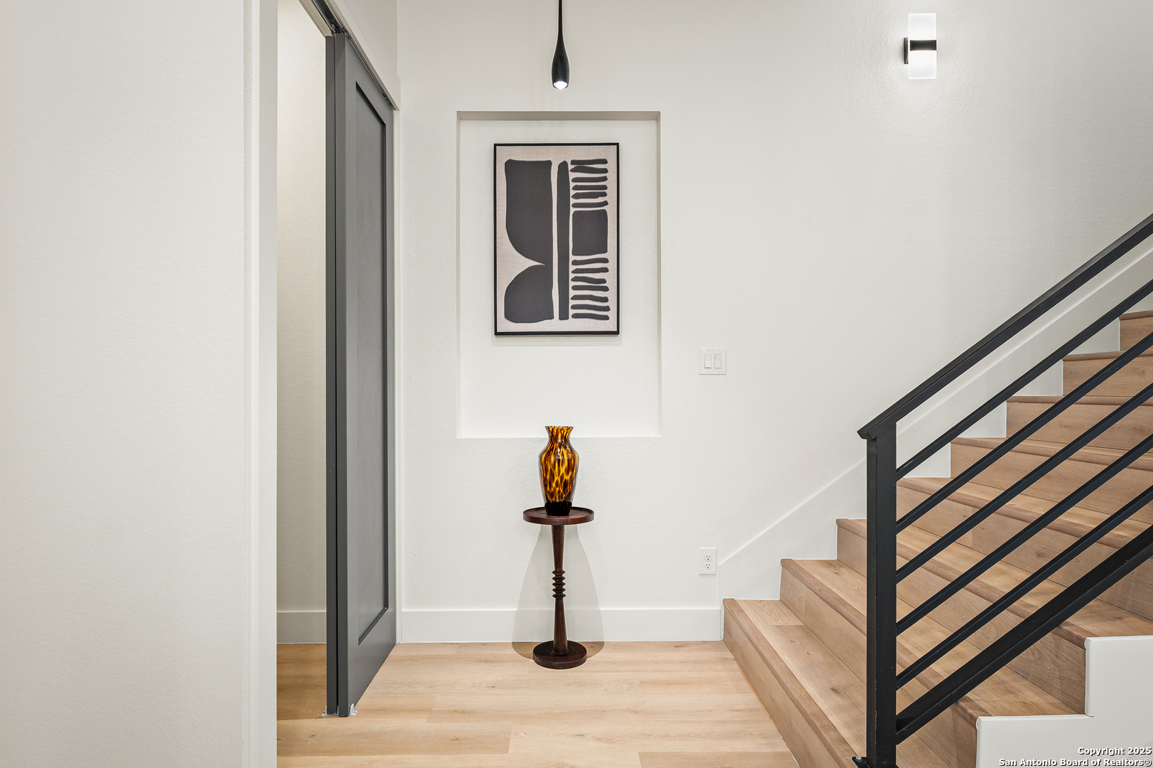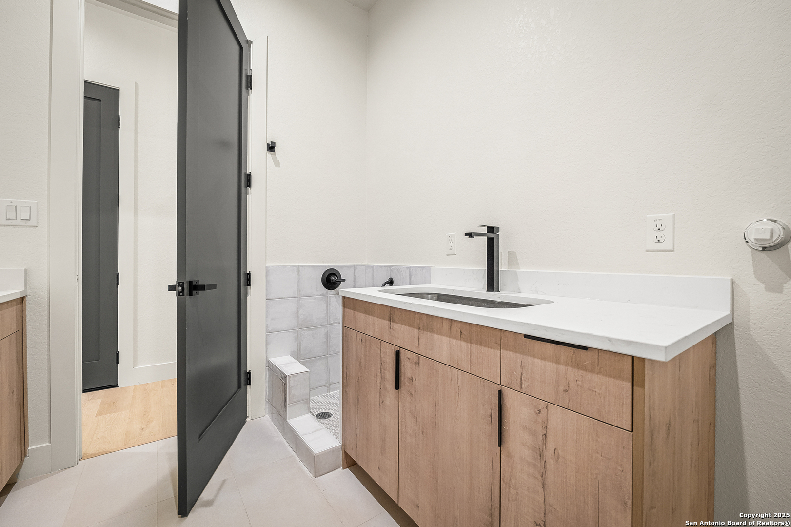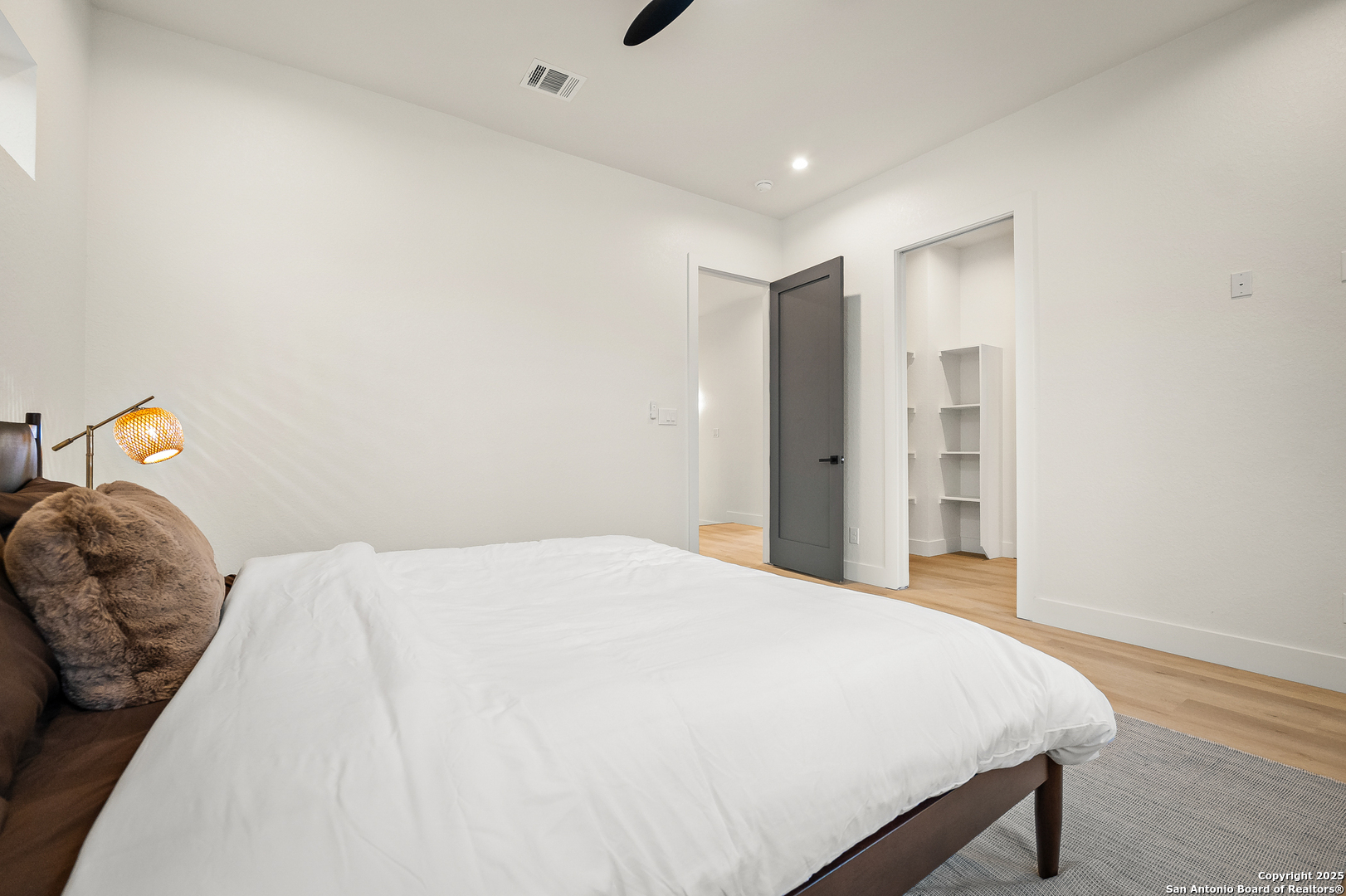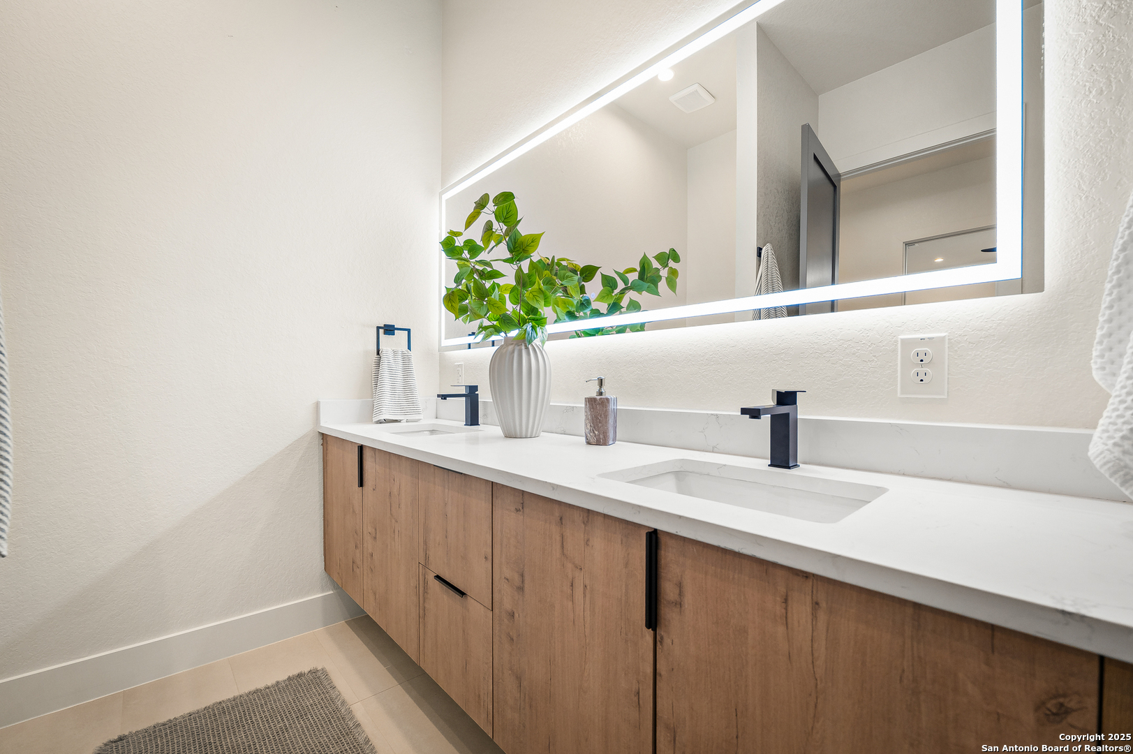 Experience modern minimalist luxury in this brand-new Japandi-inspired home just minutes from Downtown San Antonio. Situated in the vibrant Southtown/Lone Star Arts District, this contemporary new construction blends clean architectural lines with warm natural finishes and thoughtful design throughout. The open-concept layout is filled with natural light from floor-to-ceiling windows and features high ceilings and luxury vinyl flooring. The chef's kitchen showcases quartz countertops, European-style floating cabinetry, and sleek modern finishes, opening seamlessly to the main living area-perfect for entertaining. The primary suite is a private retreat with a spa-style bathroom featuring a soaking tub, rainfall walk-in shower, and a custom walk-in closet. A secondary living area with a built-in wet bar and wine fridge adds flexibility for entertaining, work-from-home, or relaxing. Outdoor living is a standout, with covered patio spaces and elevated views that capture the Tower of the Americas and downtown skyline. The spacious yard offers room for a future pool, garden, or casita. This home is equipped with modern conveniences, including a tankless water heater, smart garage with EV-ready outlet, and a high-security VDom Deux modern front door. Move-in ready and thoughtfully designed, this is a rare opportunity to own a luxury new construction home near downtown dining, culture, and entertainment.